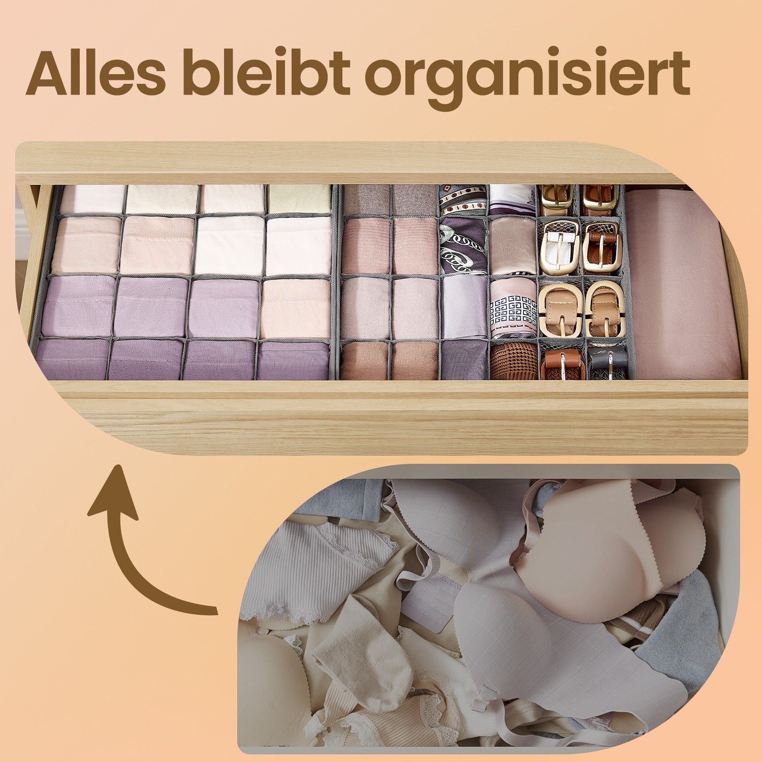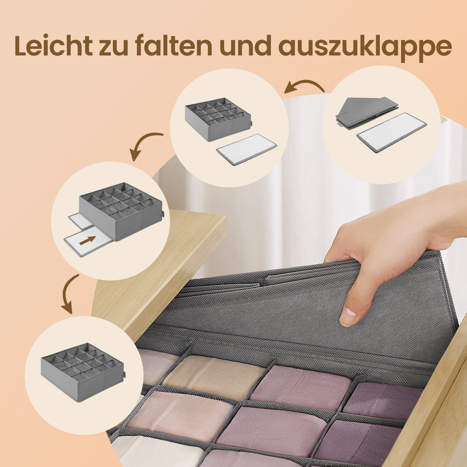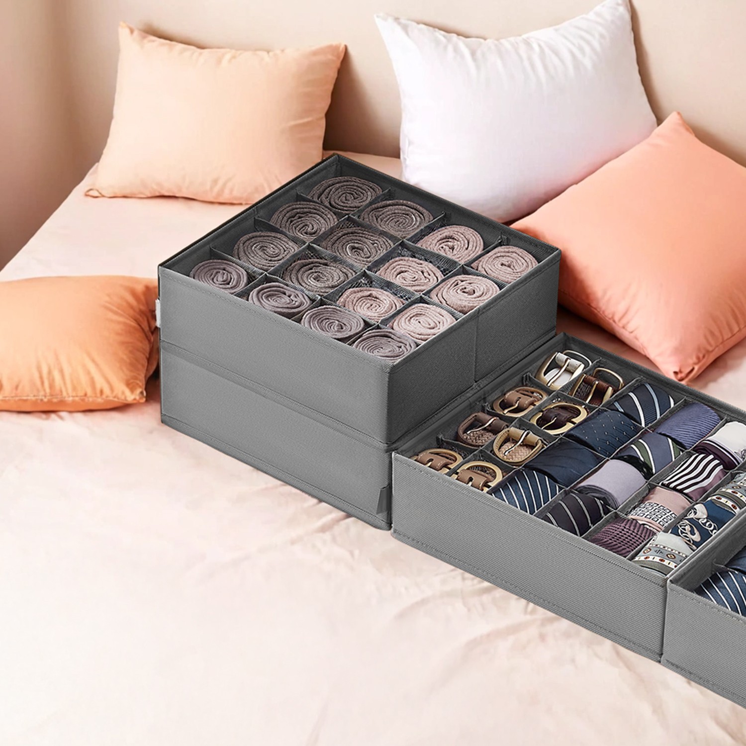 SONGMICS alusvaateorganisaattori 6 kpl:n sarja, 120 lokeroa, kyyhkynharmaa