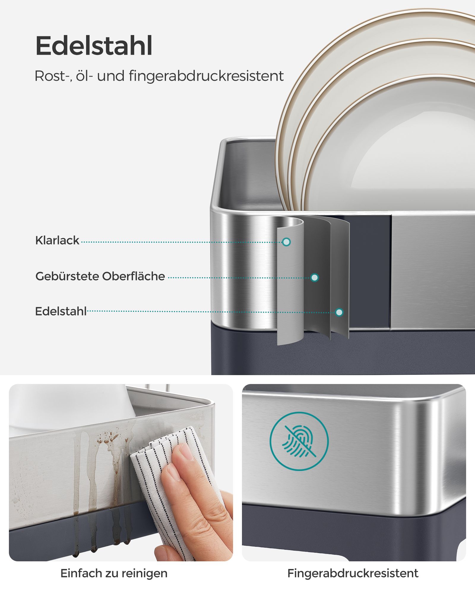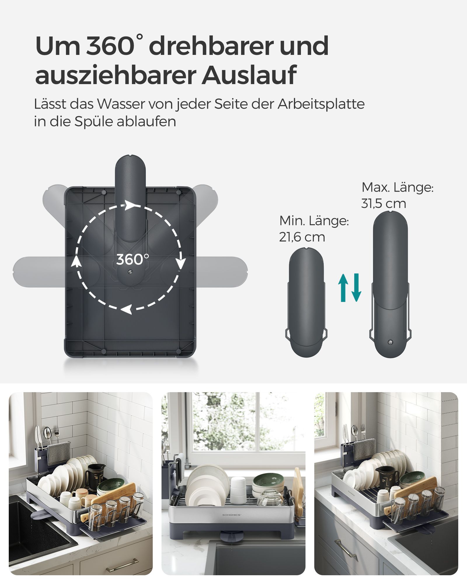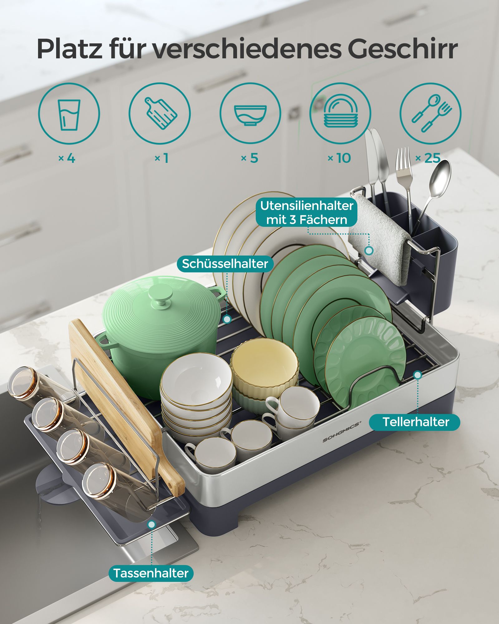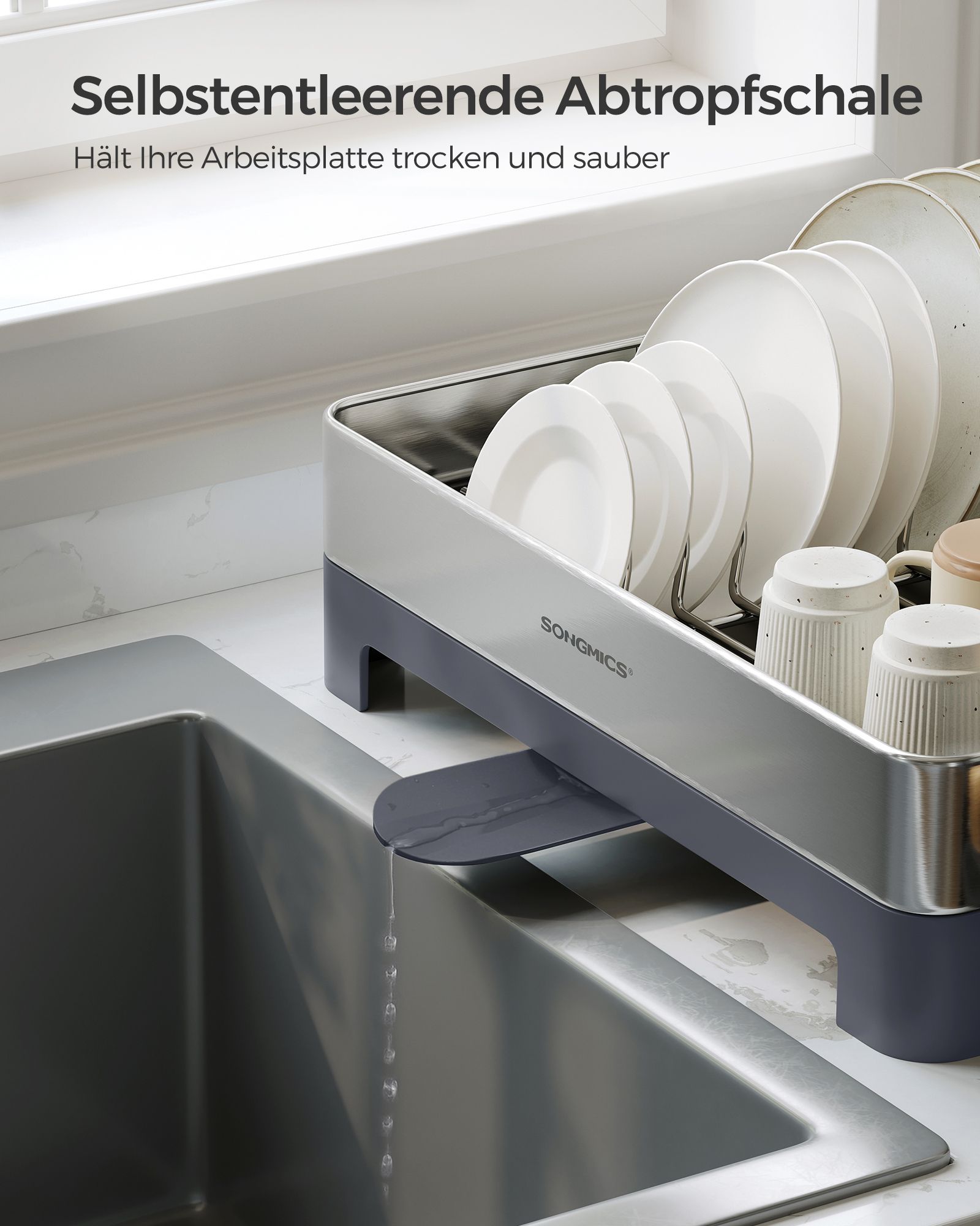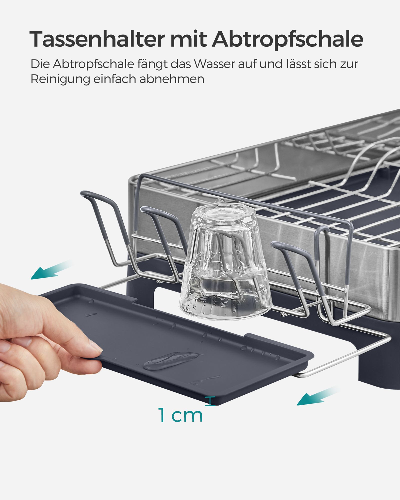 SONGMICS astiankuivaushylly, ruostumattomasta teräksestä valmistettu astiankuivaushylly, käännettävä valutusaukko, valutusastia, kupinpidin, sormenjälkiä hylkivä, keittiöön, 31,7 x 57,2 cm