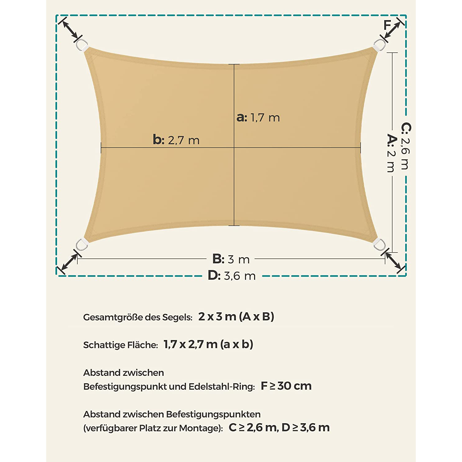 Koko: 2 x 3 m (P x L)