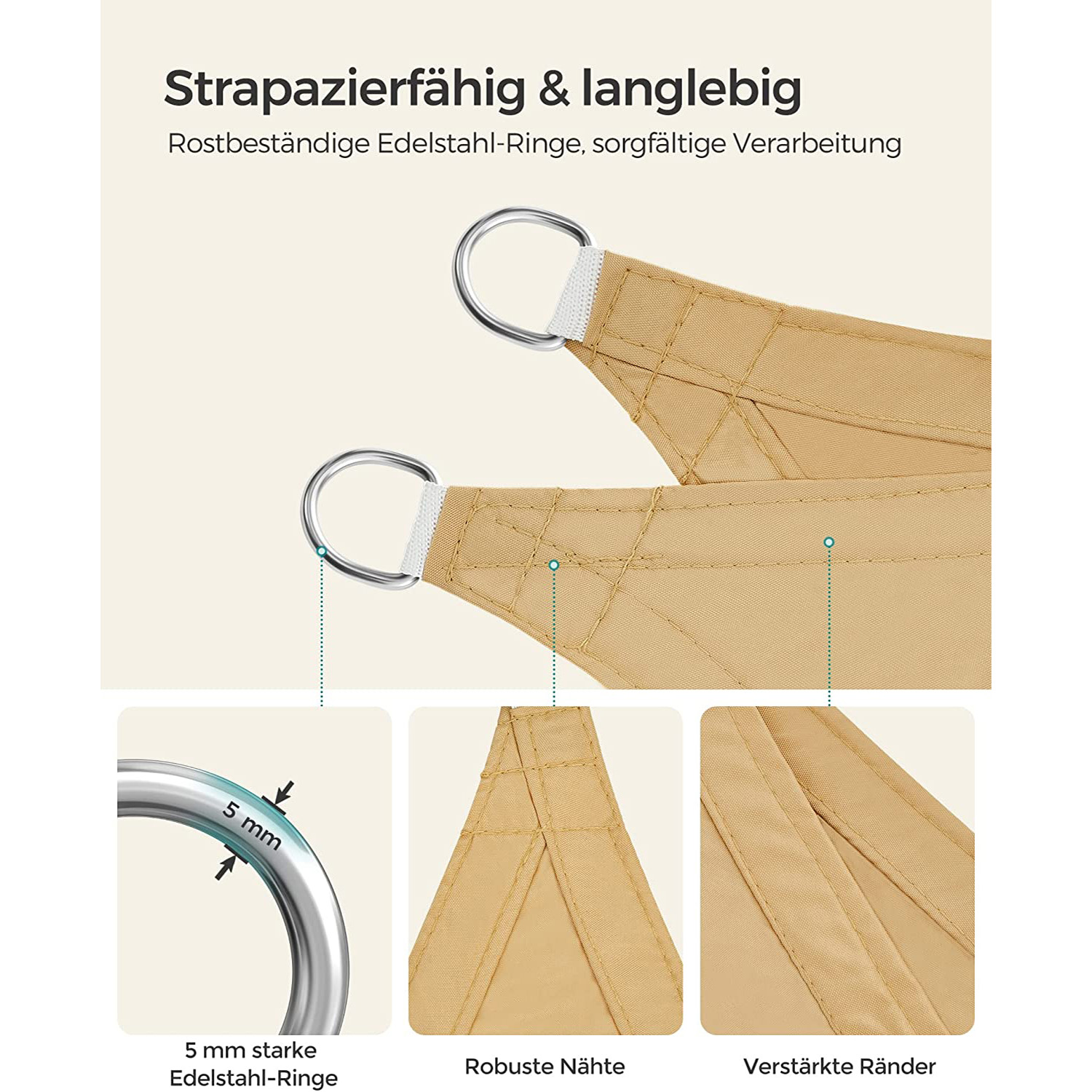 Materiaali: 160 g/m² polyesterikangas PU-pinnoitteella, ruostumattomasta teräksestä valmistettu rengas