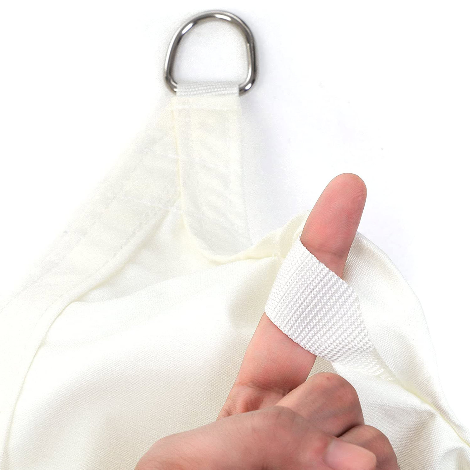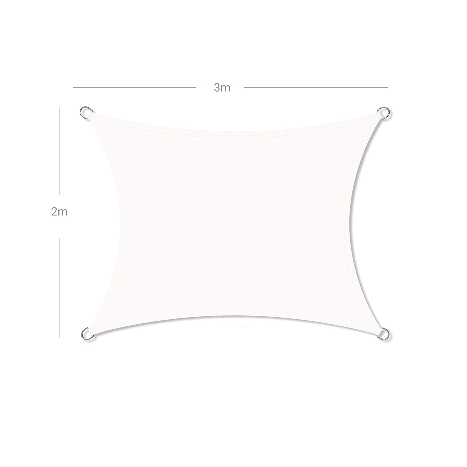 Aurinkopurjeen kiinnittäminen Asennukseen ei tarvita työkaluja! Aseta aurinkopurje levitettynä paikkaan, jossa tarvitset aurinkosuojaa. Etsi sitten 4 kiinnityskohtaa, joihin haluat kiinnittää mukana toimitetut köydet. Ne ovat 2 m pitkiä, joten etsi puita, paaluja tai muita vakaita esineitä tällä säteellä. Kiinnitä köydet kiinnityskohtiin sekä aurinkosuojan tukeviin silmukoihin ja ruostumattomasta teräksestä valmistettuihin renkaisiin, jotta kangas voidaan kiristää tiukalle ja vähintään 25 asteen kulmaan. Näin sadevesi valuu pois täydellisesti. Mihin paikkoihin tämä aurinkosuoja sopii? Onko käytettävissä 4 kiinnityskohtaa ja riittävästi tilaa 2 x 3 m:n kokoiselle suojalle? Sitten tämä on täydellinen paikka uudelle aurinkosuojallesi, olipa se sitten leirintäalueella, puutarhassasi tai uima-altaasi yllä. Tuotetiedot: – Väri: valkoinen – Materiaali: polyesteri (160 g/m²) – Koko: 2 x 3 m – Paino: 1,2 kg Toimitus sisältää: – 1 x aurinkopurje ja laukku – 4 x kiinnitysköysi SONGMICS-ohjeet:- Kallista kangasta 25 astetta, jotta sadevesi valuu pois sujuvasti. – Säilytä aurinkopurje suojaisessa paikassa myrskyn aikana tai talvella. – Puhdista purje miedolla puhdistusaineella tai vedellä. Älä missään tapauksessa käytä kovaa harjaa tai kemiallisia nesteitä. – Varo ripustamasta purjetta väärin päin.