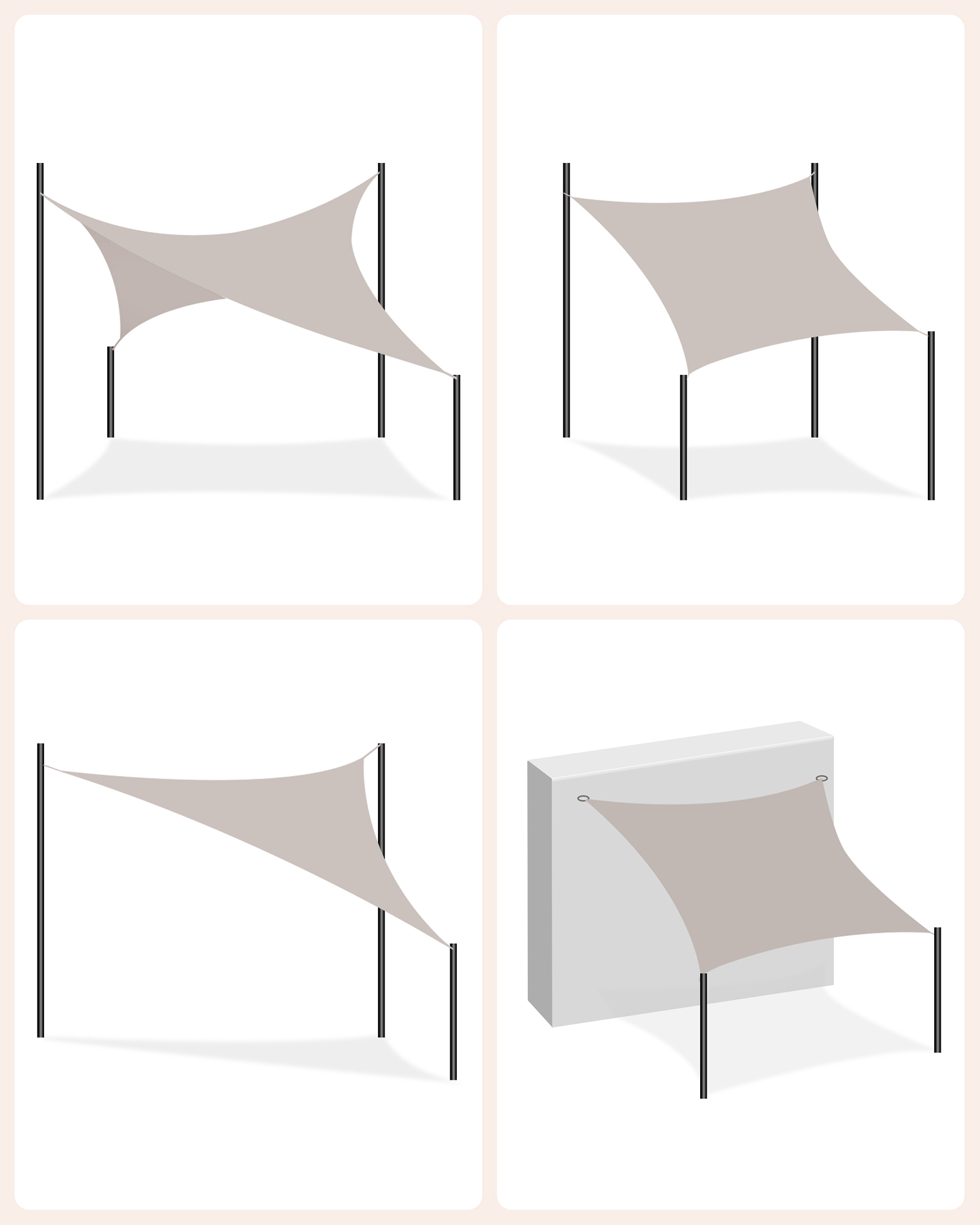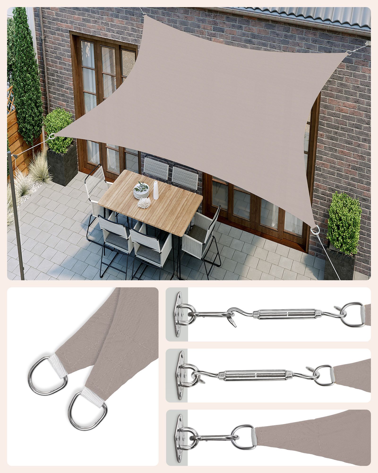 SONGMICS aurinkopurje 3 x 5 m, vedenpitävä (vähintään 1000 mm), UV-suoja, aurinkosuoja, valmistettu kestävästä polyesteristä, 93 % auringon säteilyä, säänkestävä, puutarha, parveke, terassi, retkeily, vaaleanharmaa GSH35QY