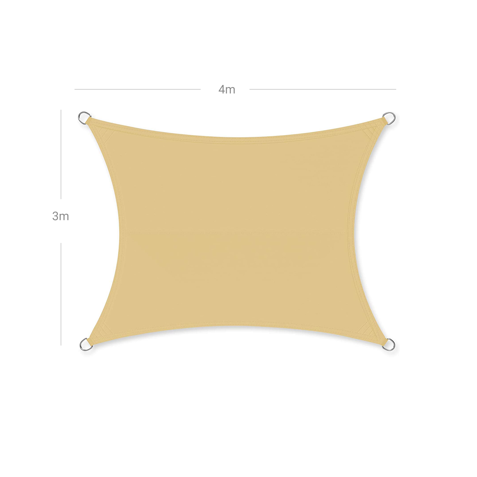 Aurinkosuojan kiinnittäminen Asennukseen ei tarvita työkaluja! Aseta aurinkosuoja levitettynä paikkaan, jossa tarvitset aurinkosuojaa. Etsi sitten 4 kiinnityskohtaa, joihin haluat kiinnittää mukana toimitetut köydet. Ne ovat 2 m pitkiä, joten etsi puita, paaluja tai muita vakaita esineitä tällä säteellä. Kiinnitä köydet kiinnityskohtiin sekä aurinkosuojan tukeviin silmukoihin ja ruostumattomasta teräksestä valmistettuihin renkaisiin, jotta kangas voidaan kiristää tiukalle ja vähintään 25 asteen kulmaan. Näin sadevesi valuu pois täydellisesti. Mihin paikkoihin tämä aurinkosuoja sopii? Onko käytettävissä 4 kiinnityskohtaa ja riittävästi tilaa 3 x 4 m:n kokoiselle suojalle? Sitten tämä on täydellinen paikka uudelle aurinkosuojallesi, olipa se sitten leirintäalueella, puutarhassasi tai uima-altaasi yllä. Tuotetiedot: – Väri: hiekka – Materiaali: polyesteri (160 g/m²) – Koko: 3 x 4 m – Paino: 2,3 kg Toimitus sisältää: – 1 x aurinkopurje laukulla – 4 x kiinnitysköysi SONGICS-ohjeet:- Kallista kangasta 25 astetta, jotta sadevesi valuu pois sujuvasti. – Säilytä aurinkopurje suojaisessa paikassa myrskyn aikana tai talvella. – Puhdista purje miedolla puhdistusaineella tai vedellä. Älä missään tapauksessa käytä kovaa harjaa tai kemiallisia nesteitä. – Varo ripustamasta purjetta väärin päin.