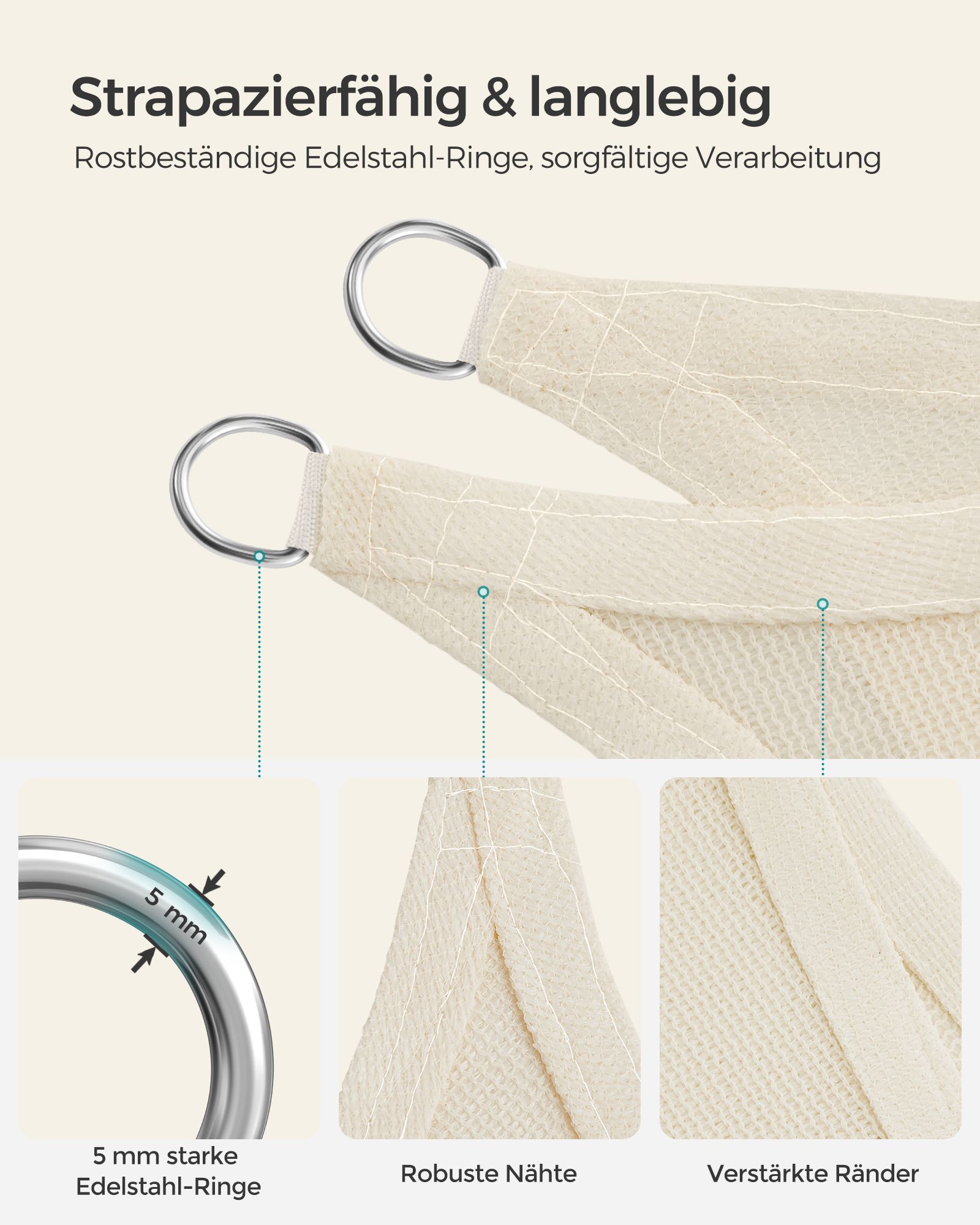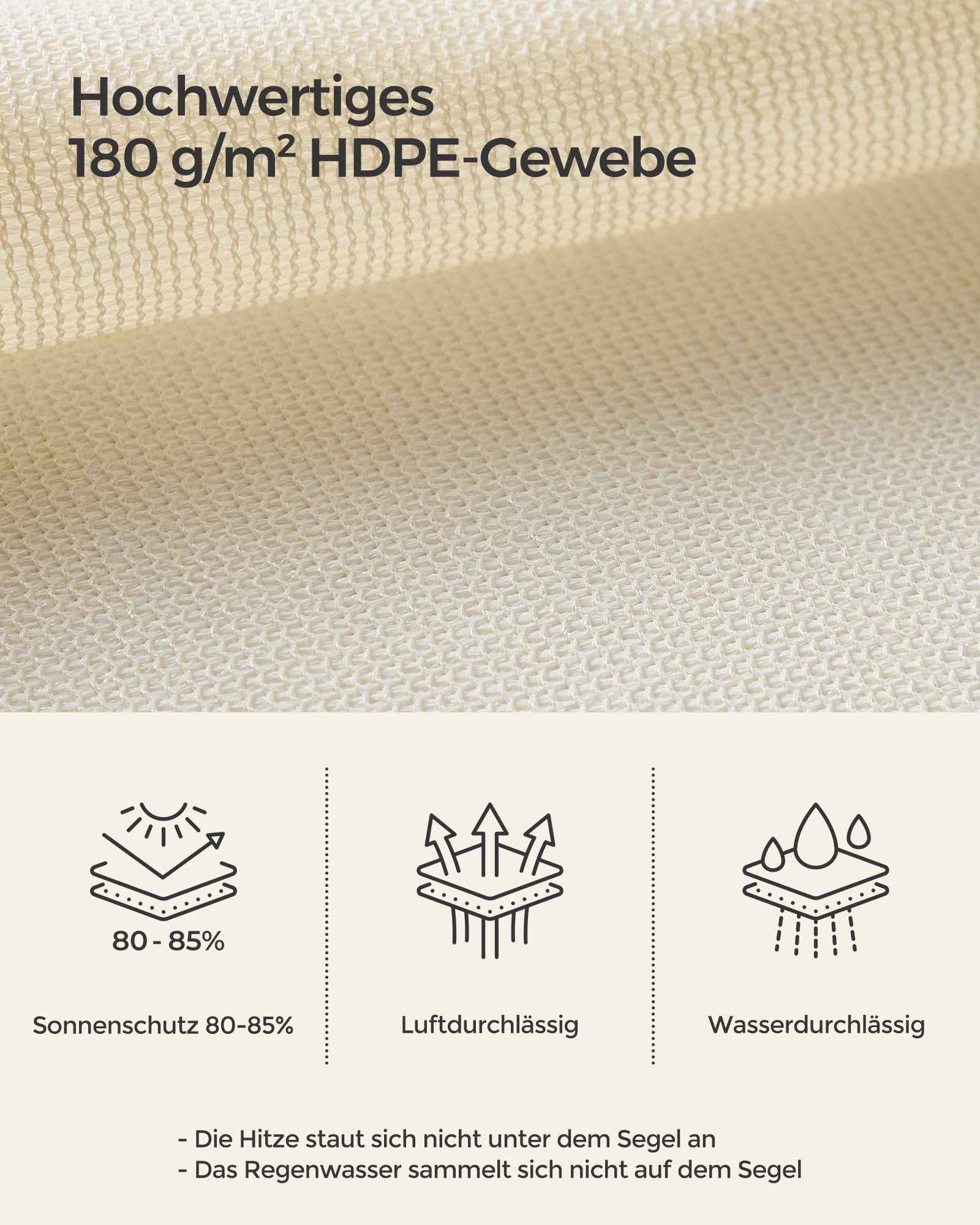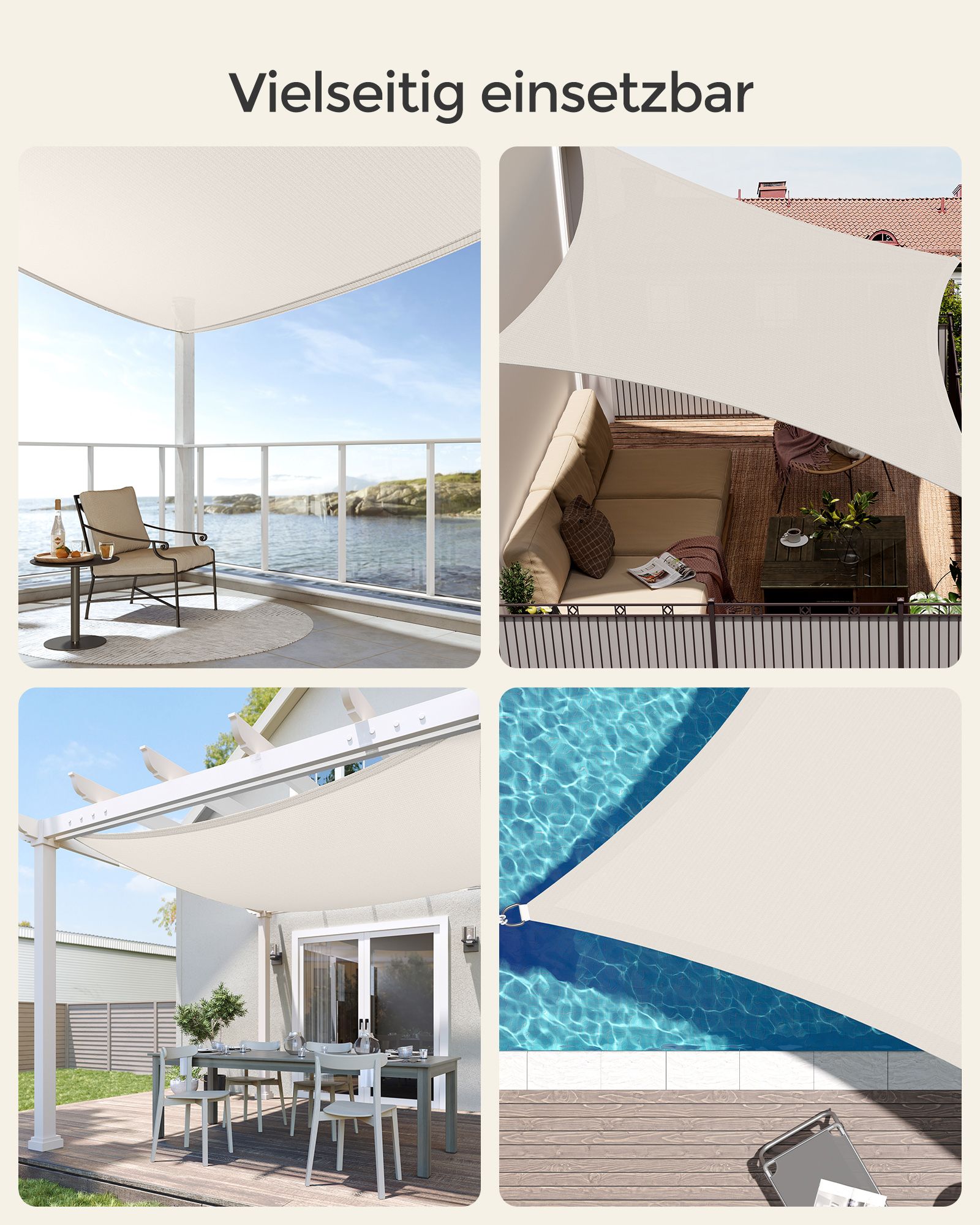 SONGMICS 3 x 4 m aurinkopurje HDPE:stä, aurinkosuoja, UV-suoja, ilmava, puutarhaan, parvekkeelle, terassille, hengittävä, vettä läpäisevä, beige-valkoinen GSS34IVV1