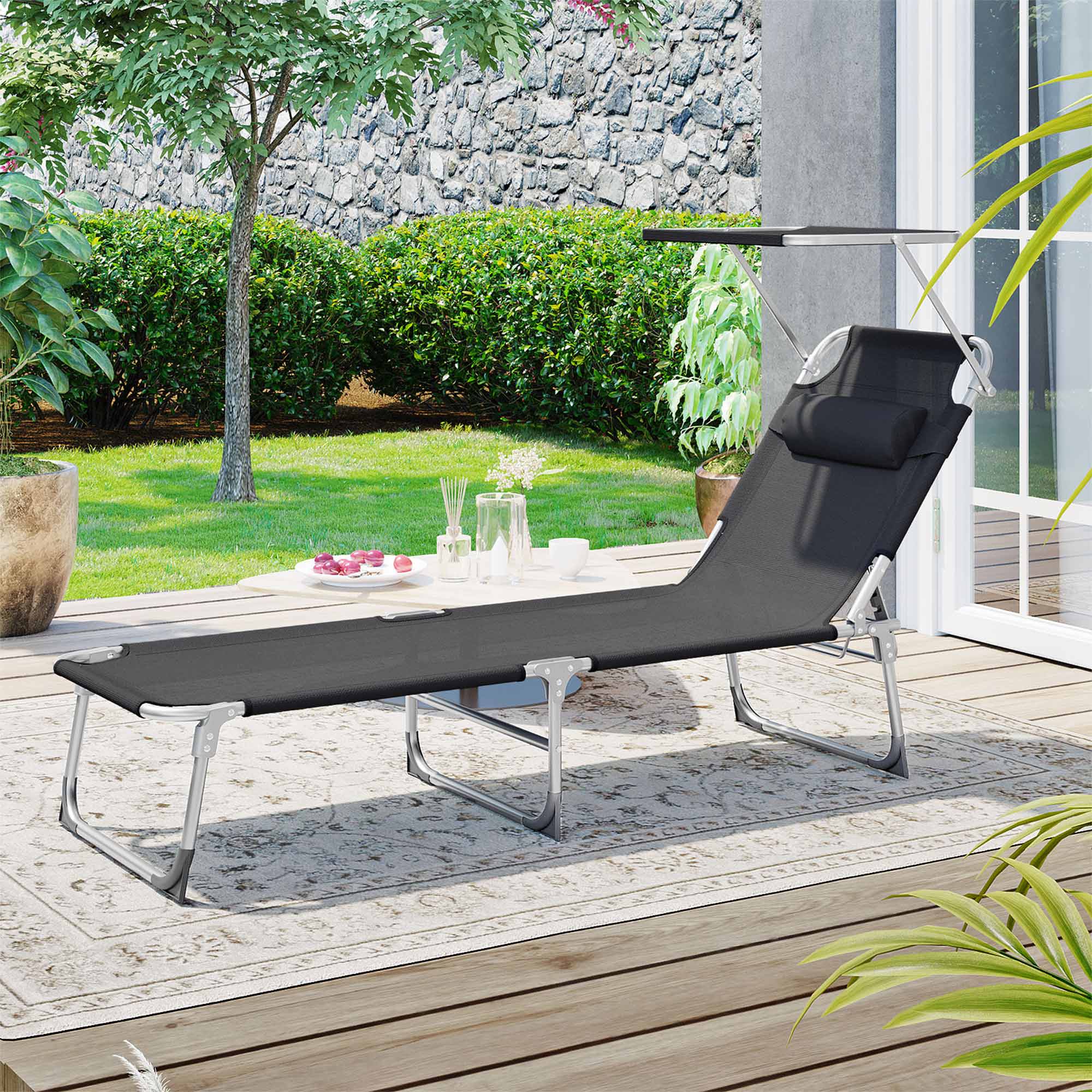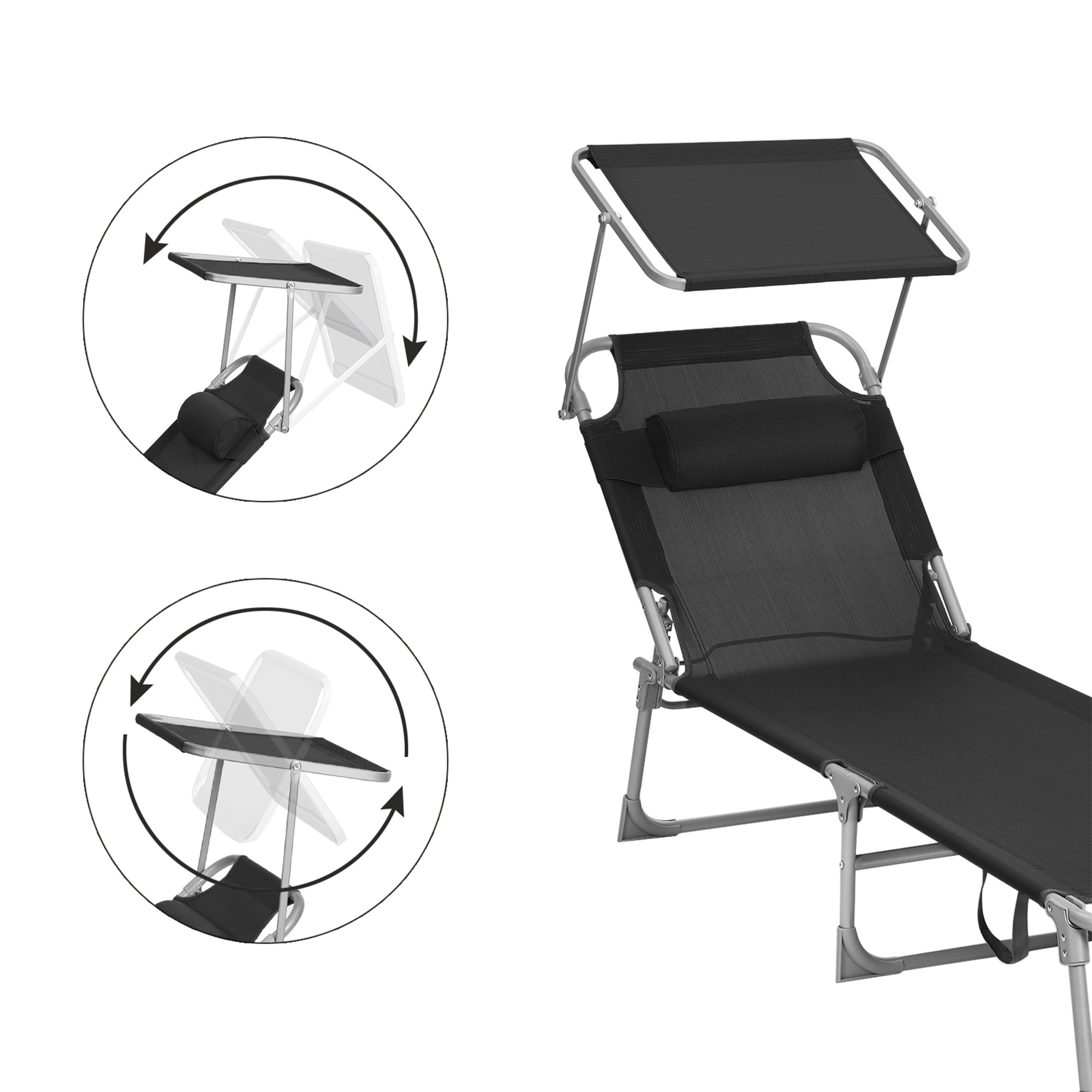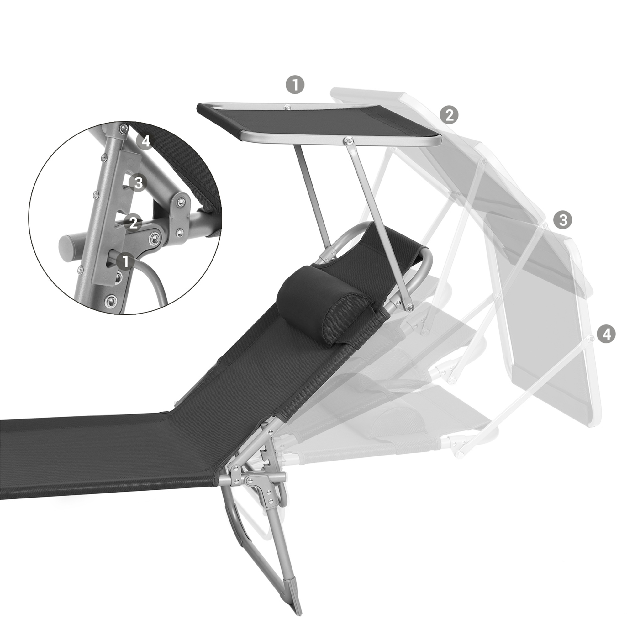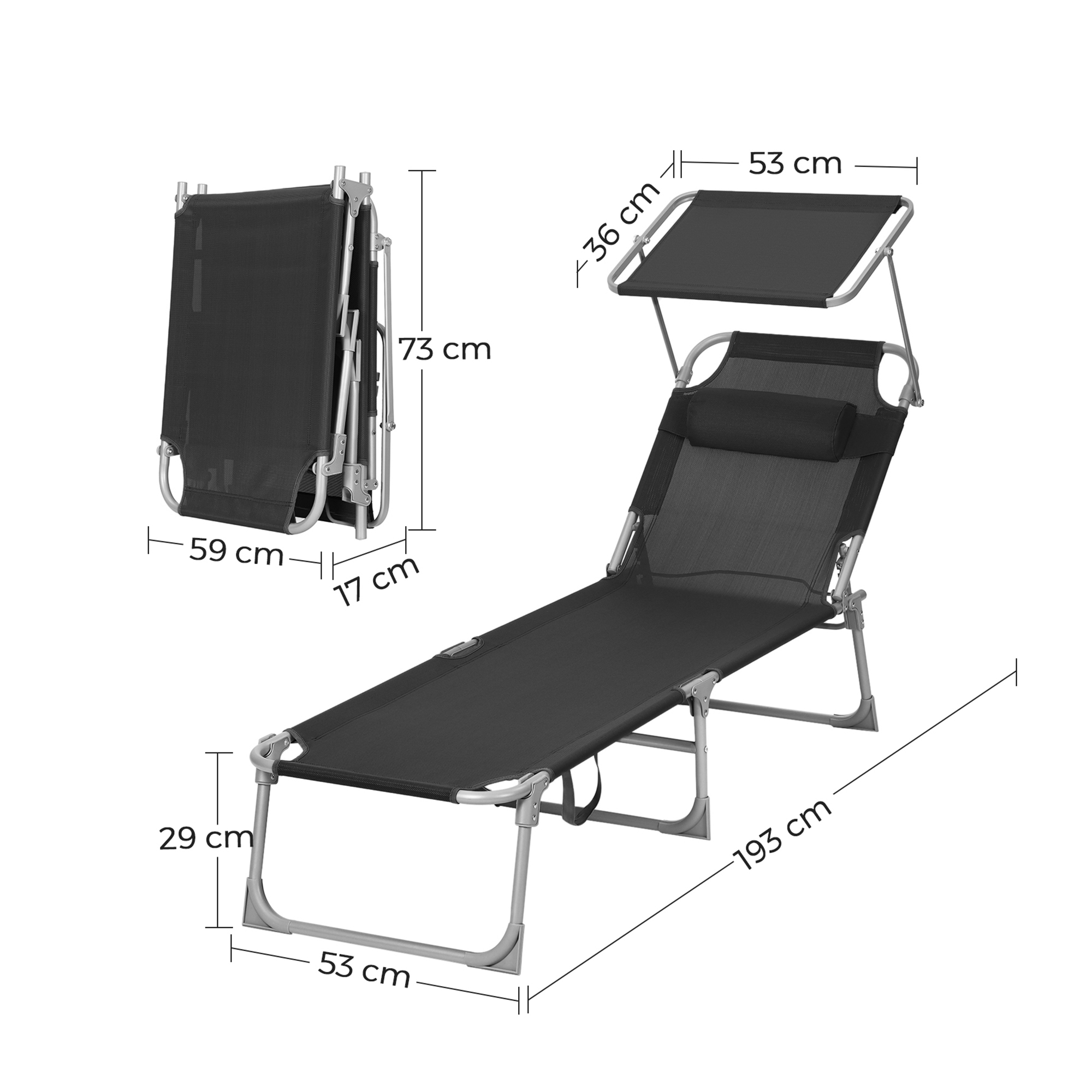 SONGMICS aurinkotuoli pääntuella ja aurinkokatoksella, musta