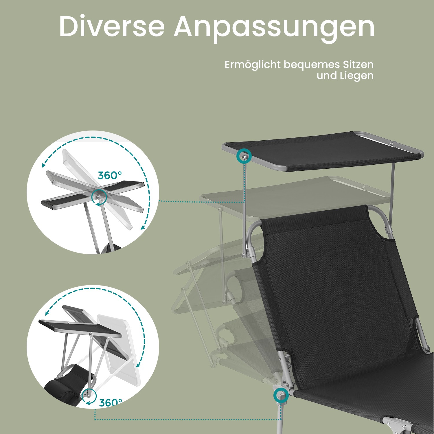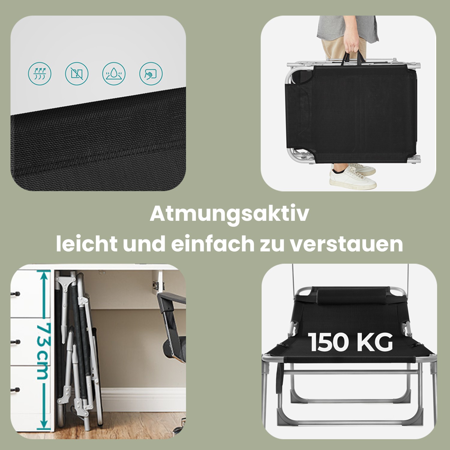 Tuotetiedot: Väri: musta Materiaali: metalli, synteettinen kuitukangas Koko: 53 x 193 x 29,5 cm (P x L x K) Paino: 6,8 kg Maks. staattinen kantavuus: 150 kg Toimitus sisältää: 1 x aurinkotuoli SONGMICS Huomautukset: Aurinkotuolin suurin kantavuus on 150 kg. Älä ylitä tätä enimmäispainoa. Avaa aurinkotuoli kokonaan ennen käyttöä. Älä jätä tuotetta pitkäksi aikaa ulos; älä altista aurinkotuolia sateelle tai voimakkaalle auringonpaisteelle.