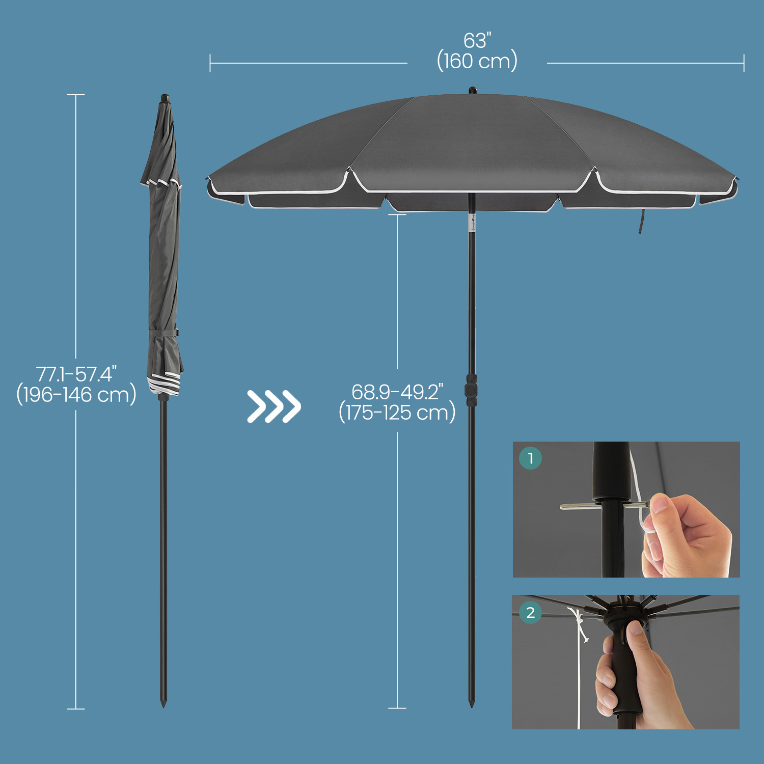 Unohtumatonta kesää varten: lämmin aurinko, sininen taivas, raikas ilma – nyt tarvitset vain kauniin aurinkovarjon täydentämään upeaa lomaasi. Hemmottele siis itseäsi tällä SONGMICS-aurinkovarjolla! PA-pinnoitetun varjokangasta ansiosta se tarjoaa erinomaisen UV-suojan jopa UPF 50+ -tasolle asti, joten sinun ei tarvitse huolehtia siitä, että kirkas auringonvalo vahingoittaa silmiäsi ja punoittaa ihoasi. Tyylikkään värinsä ansiosta tämä varjo tulee olemaan katseenvangitsija rannalla! Seuralainen moniksi vuosiksi! Kestävät lasikuituripustukset, korkealaatuinen sinkkiseosmekanismi, käytännöllinen turvalukko, joka estää sateenvarjon äkillisen sulkeutumisen, mitä muuta? Mukana toimitetaan kuljetuskassi, joten voit säilyttää sateenvarjon tilaa säästäen ja ottaa sen mukaan minne tahansa. Uskollinen matkakumppani sinulle! Tuotetiedot: Väri: Harmaa Materiaali: Sateenvarjon varsi jauhemaalattua terästä, 160 g/m² polyesterikangas PA-pinnoitteella, lasikuituripustukset Kaarevuuden pituus: 1,8 m Vaakasuora halkaisija: 1,6 m Paino: 1,5 kg Toimitus sisältää: 1 x aurinkovarjo 1 x kuljetuslaukku 1 x turvalukko SONGMICSin huomautukset:Sateenvarjotelinettä ei toimiteta mukana. Älä avaa sateenvarjoa väkisin, vaan avaa se varovasti ja hitaasti. Sulje sateenvarjo yöllä, kovalla tuulella tai sateisella säällä vahingoittumisen estämiseksi.Suojaa sateenvarjo suojapeitteellä (ei sisälly toimitukseen), jotta se kestää pidempään. Sulje sateenvarjo hitaasti, jotta sormesi eivät jää puristuksiin.