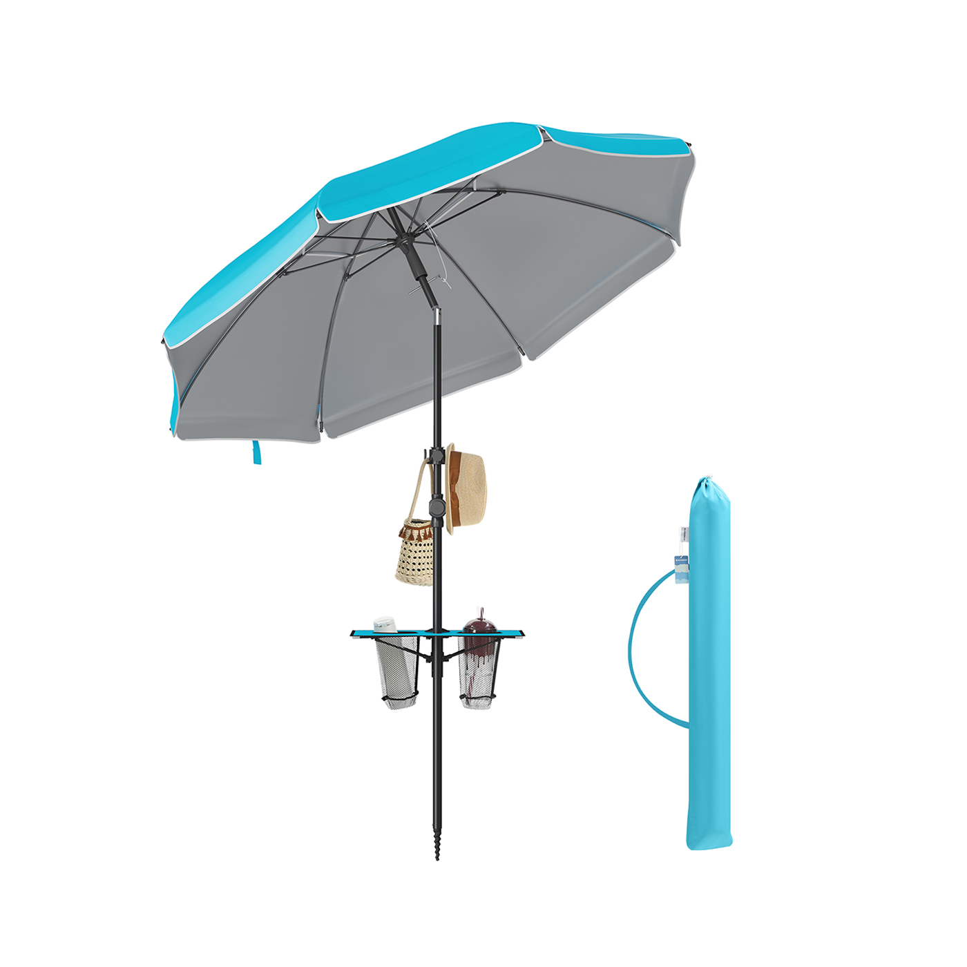 SONGMICS aurinkovarjo 160 cm, rantavarjo, aurinkosuoja UPF 50+, taivutettavissa 30° molemmin puolin, korkeussäädettävä, säilytystila, koukku, rannalle, puutarhaan, ilman jalustaa, sininen GPU0080Q01