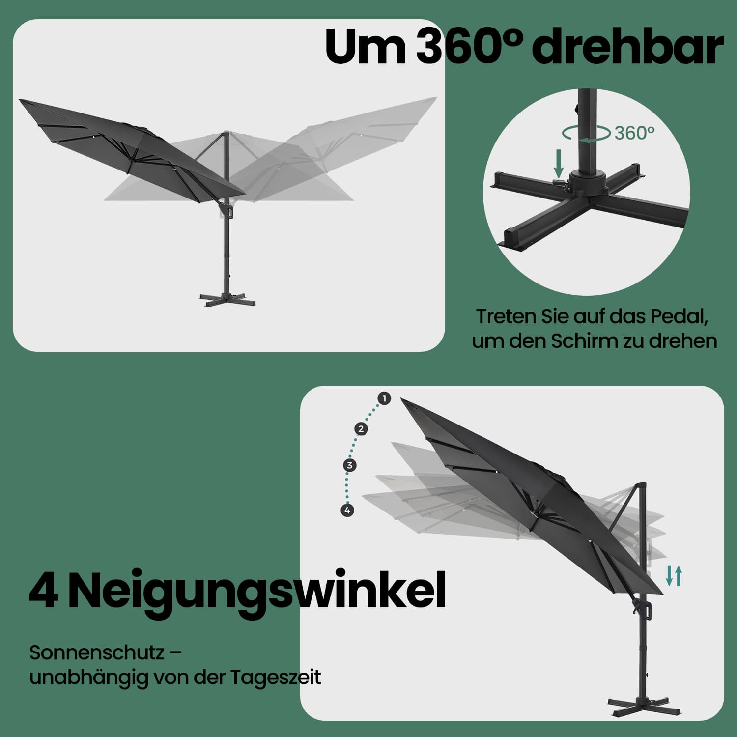 360° kääntyvä: Käännä aurinkovarjoa jalkapolkimella.