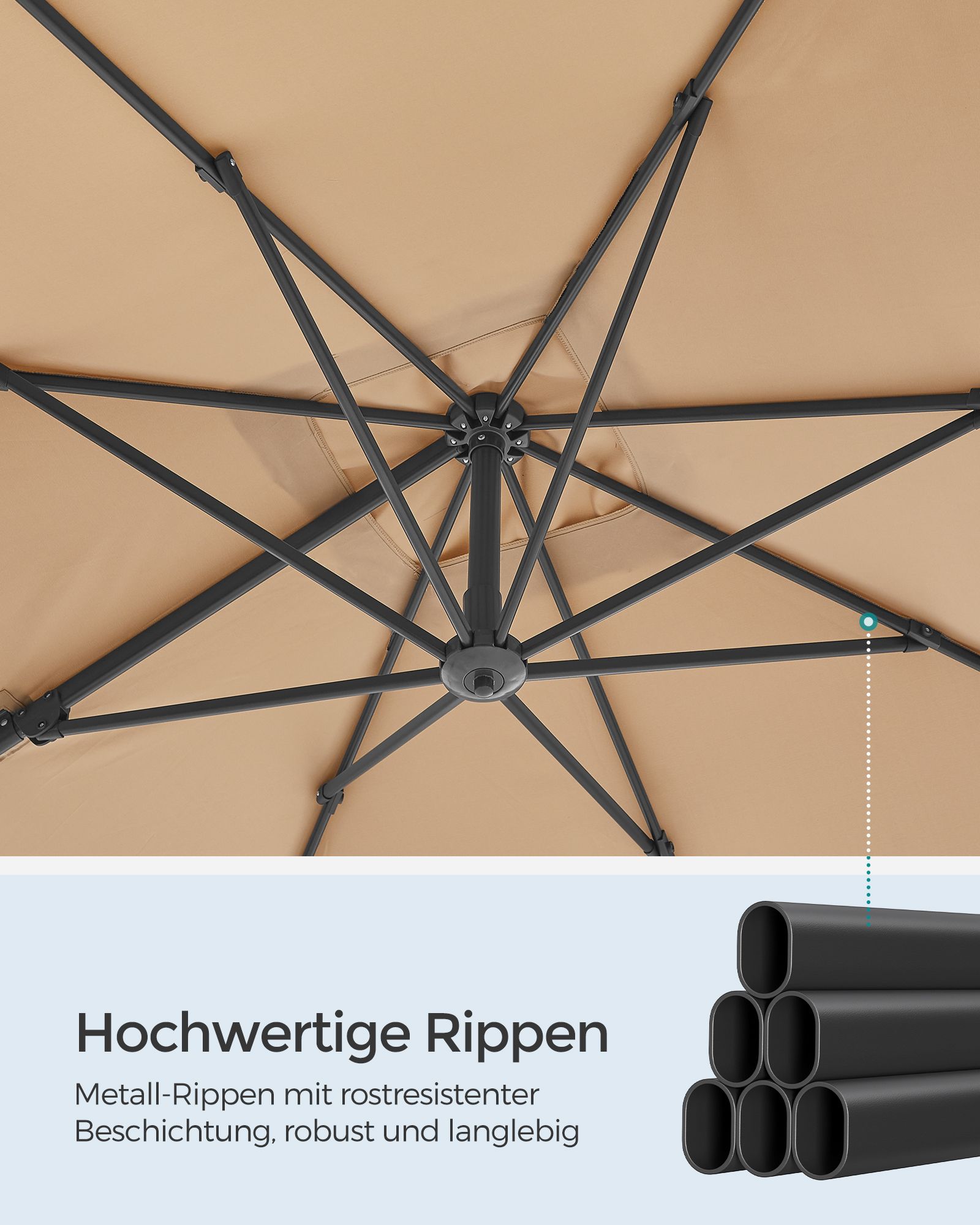 Kirjoita ensimmäinen arvio tuotteelle “SONGMICS aurinkovarjo kamelinruskea, vipuvivulla ja ristijalalla”