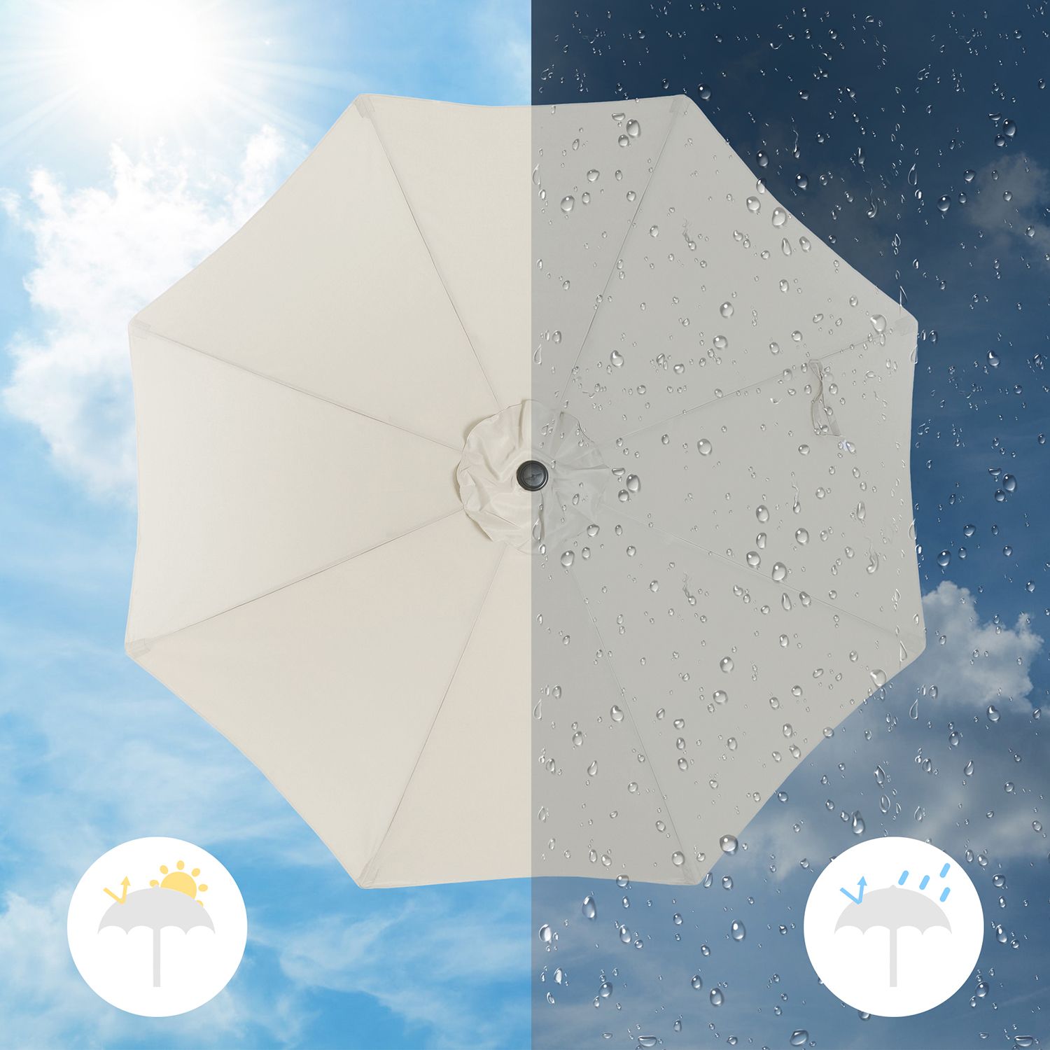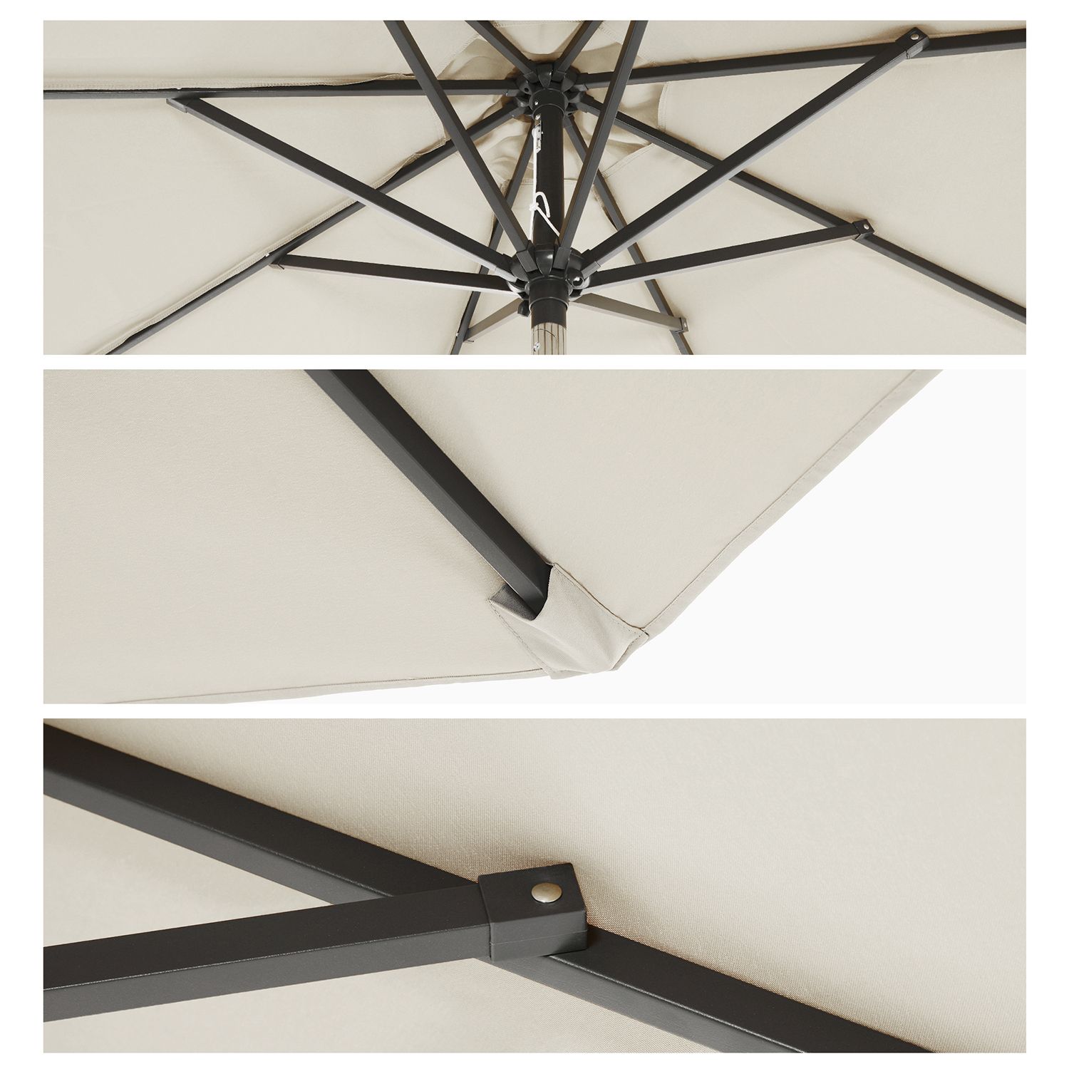 Nauti kauniista säästä varjossa! Ulkona vietettävä kausi on alkanut, ja on aika valloittaa puutarha, terassi tai ranta! Mutta varo! Muista hankkia sopiva aurinkosuoja! Kun vihdoin valloitat ulkotilasi takaisin pitkän, kylmän talven jälkeen ja kutsut ystäväsi grillijuhliin, on tullut täydellinen hetki ottaa käyttöön uusi SONGMICS-aurinkovarjosi! Kesän välttämätön varuste Tämä aurinkovarjo voidaan taivuttaa vasemmalle ja oikealle. Näin voit säätää sen päivänajan ja valon tulokulman mukaan. Varjon halkaisija on 270 cm ja korkeus 240 cm. Aurinkovarjon alle mahtuu siis 4–6 henkilöä. Aurinkovarjon masto on ruostumatonta terästä. Kestävä ja pitkäikäinen suojakangas UV-suojakangas (UPF 50+) on valmistettu 100 % polyesteristä, se on vettä hylkivä ja värinkestävä. Lisäksi siinä on muutamia tuuletusaukkoja. Näin puutarhaparapyyhe kestää paremmin tuulta. Suojakangas on irrotettava ja se voidaan pestä käsin. Tuotetiedot:- Väri: beige – Materiaali: metallinen varjostimen varsi ja varjostimen rivat, 180 g/㎡ polyesterikangas – Korkeus: 240 cm – Varjostimen halkaisija: 270 cm – Varjostimen varren halkaisija: 38 mm – Paino: 6 kg Toimitus sisältää: – 1 x aurinkovarjo – 1 x ohjeet (DE, EN, FR, ES, IT) SONGMICS Huomautukset:- Varjostimen jalustaa ei toimiteta mukana. – Sulje varjostin yöllä ja kovalla tuulella. – Tätä varjostinta ei suositella käytettäväksi sateisella säällä.