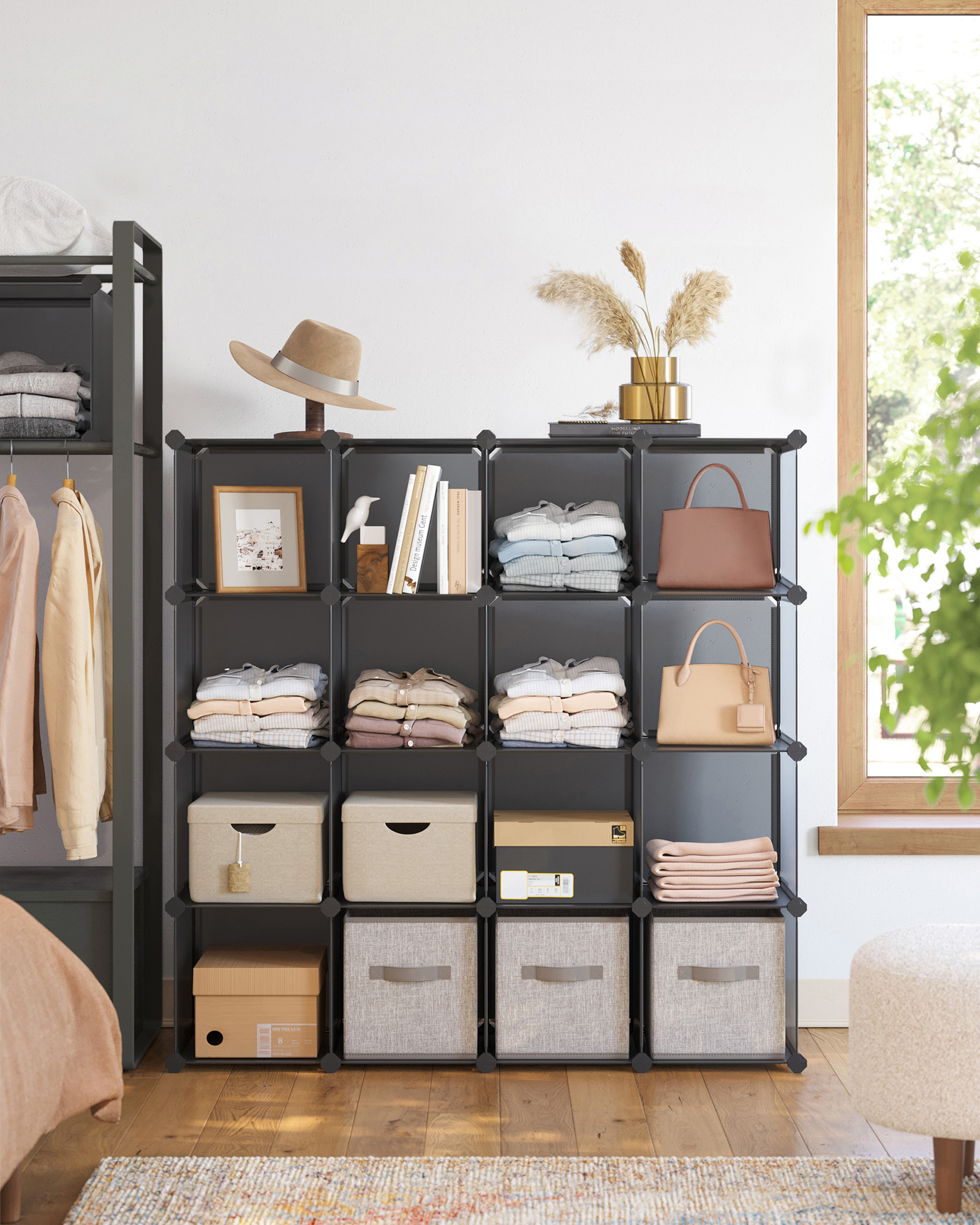SONGMICS kenkähylly, hyllyjärjestelmä, pistokehylly, 15 kuution sarja, DIY-hylly, pinottava, PP-muovia, vaatekaappina, makuuhuoneeseen, toimistoon
