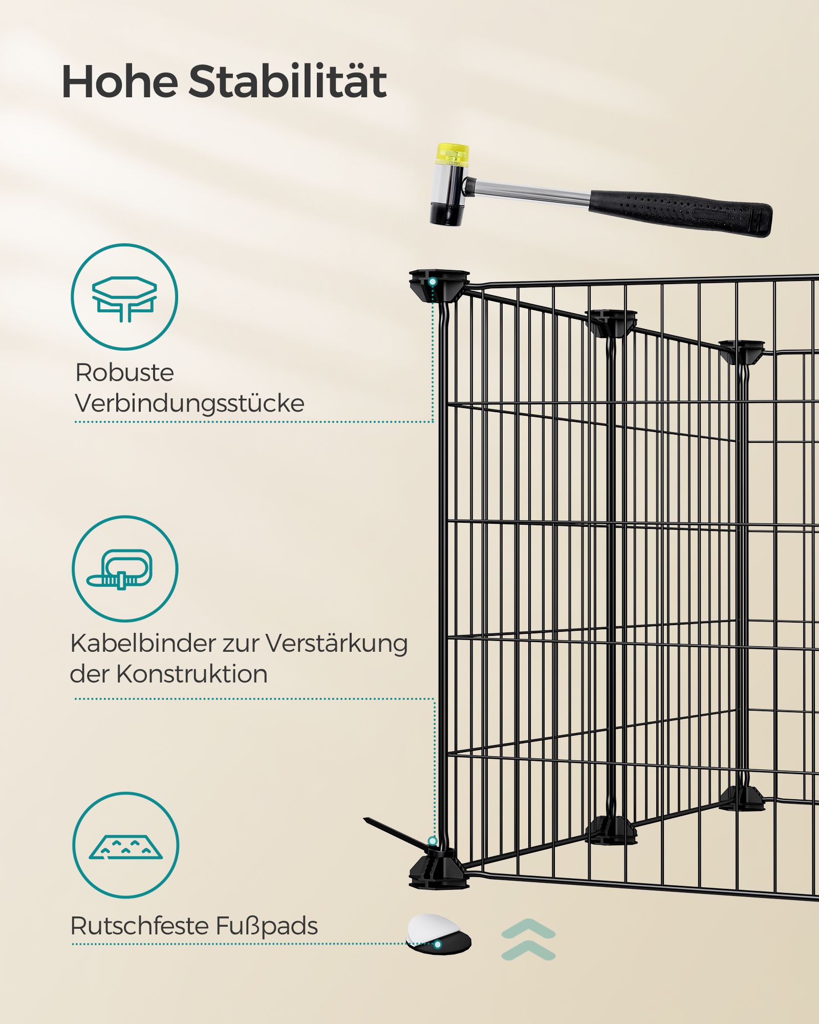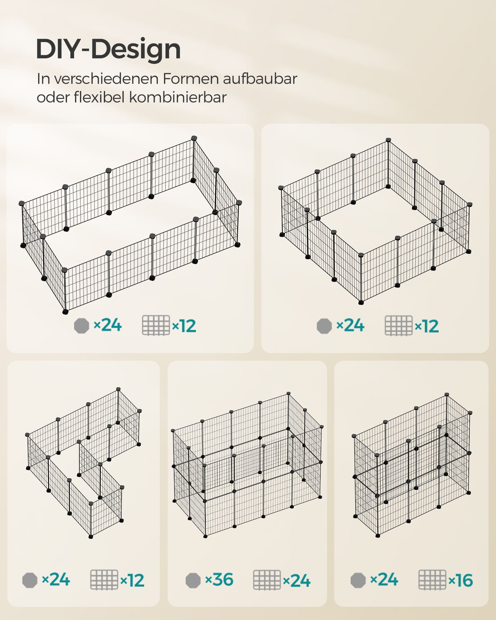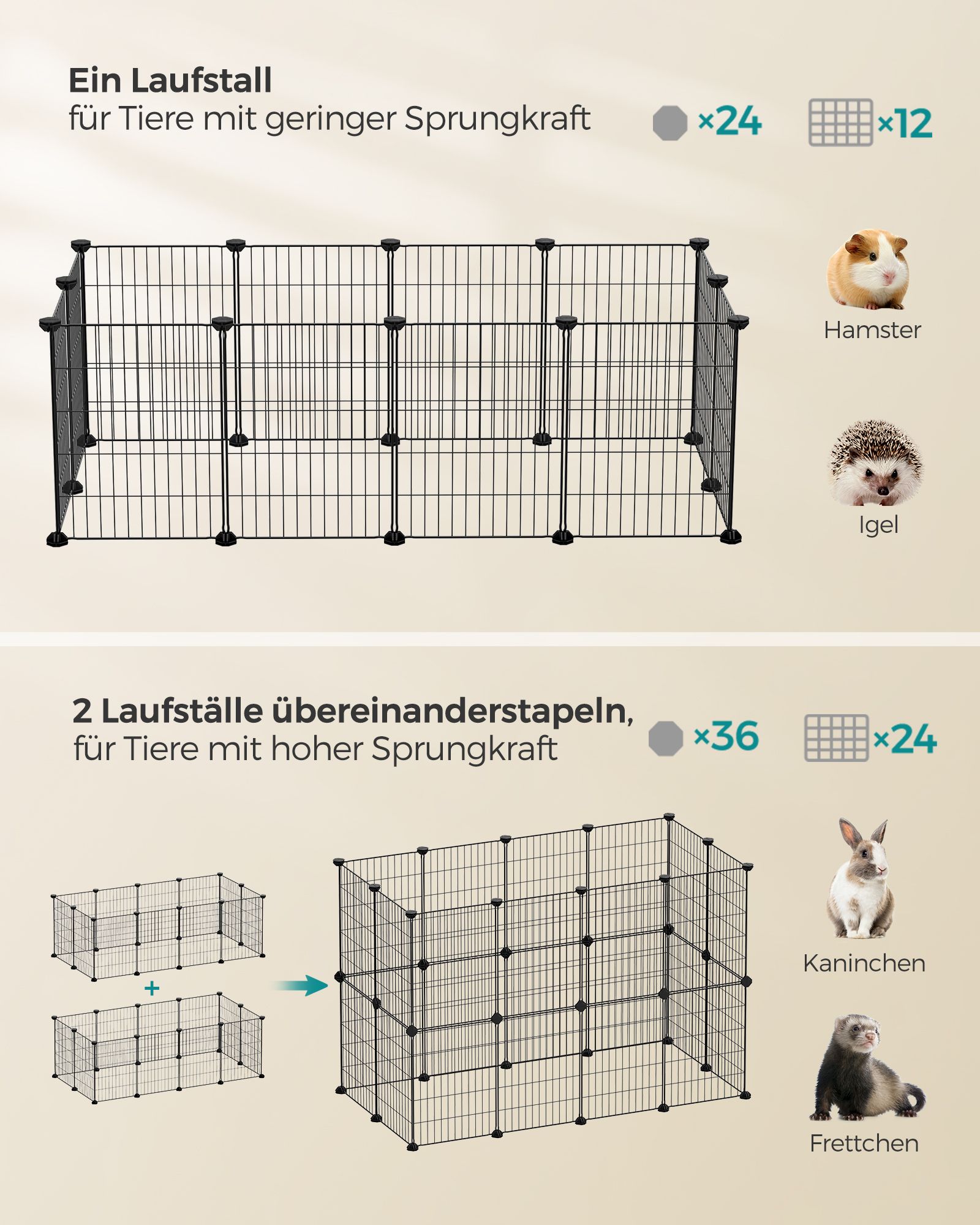 SONGMICS Pieneläinten aitaus, marsujen häkki, sisäkäyttöön tarkoitettu aitaus, DIY, mukana kumivasara, 143 x 73 x 46 cm, musta LPI01H