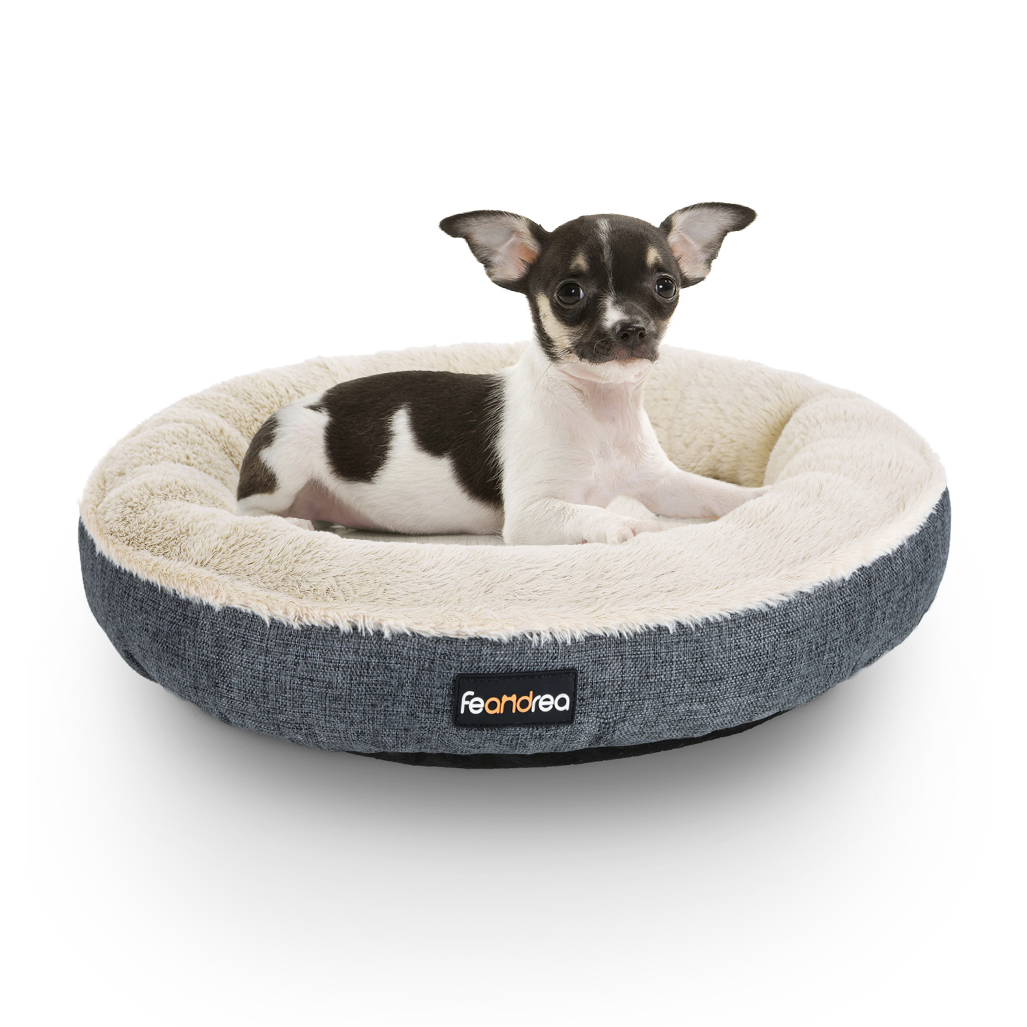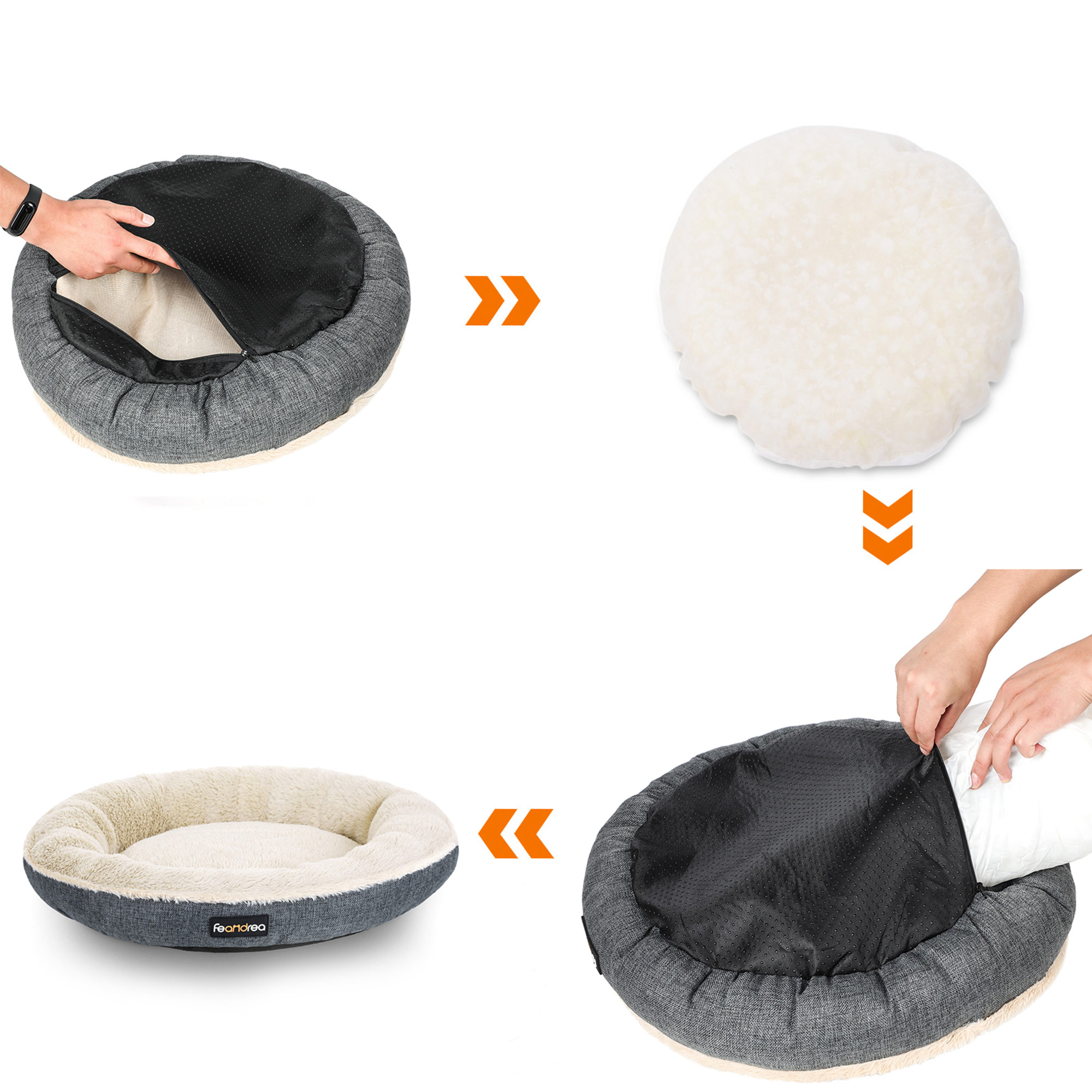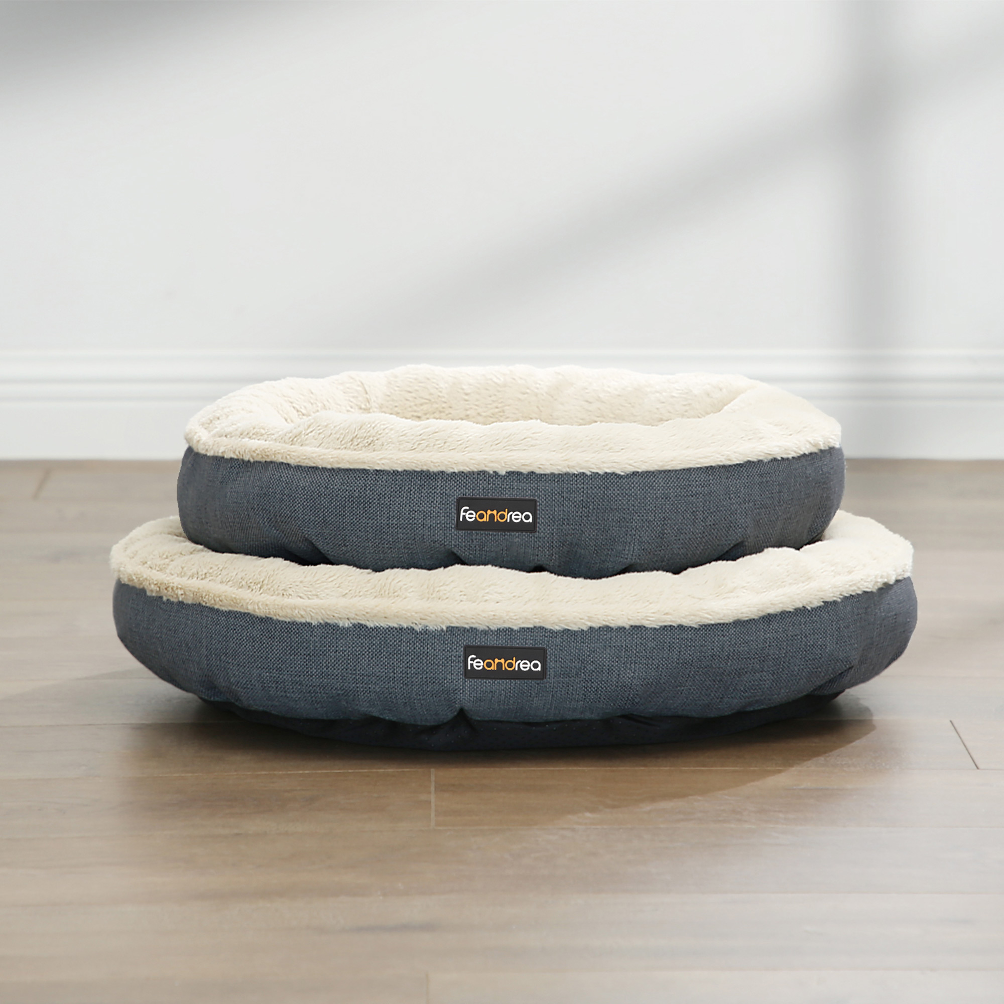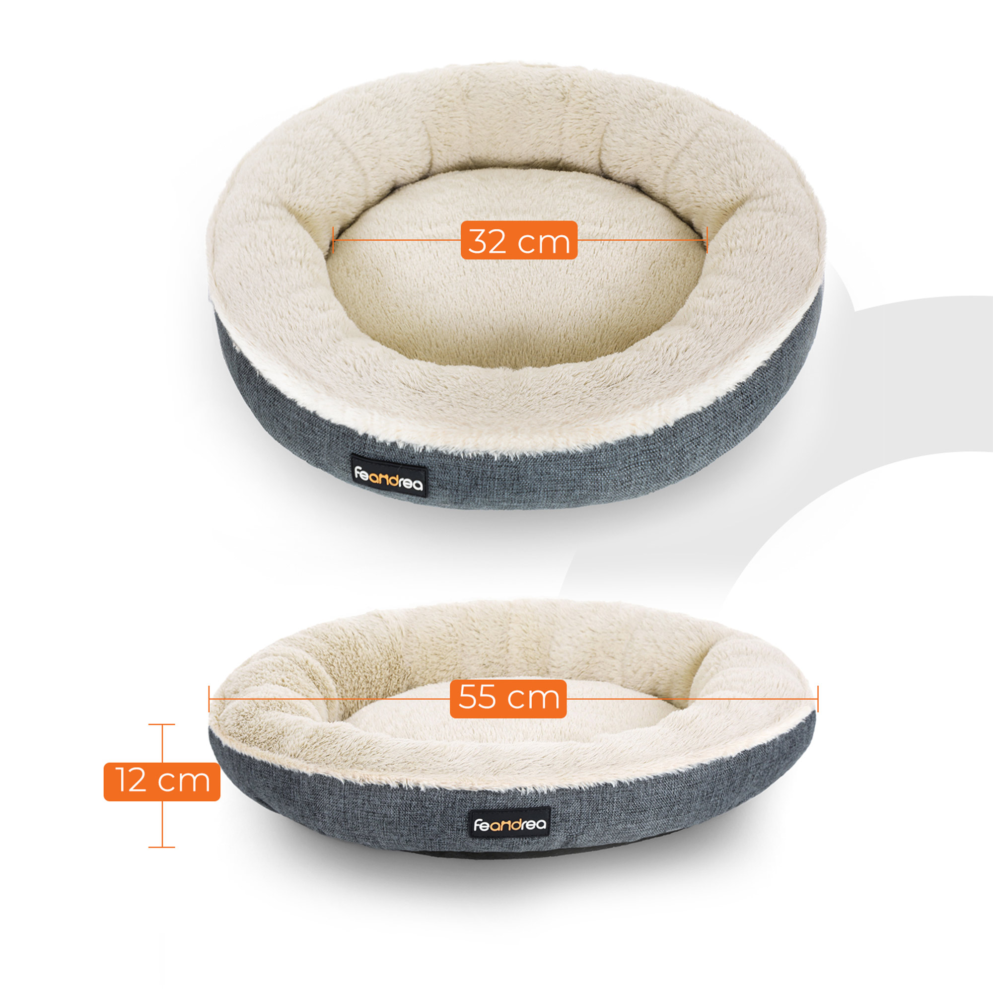 Hush, hush, koriin!Tämä pyöreä koiranpeti tarjoaa nelijalkaisellesi kodikkaan paikan, jossa se voi levätä ja nukkua. Ø 55 cm:n kokoinen kori sopii erityisesti pienille koiraroduille, kuten chihuahuoille, maltalaisille tai kääpiöpinsereille. Mutta myös kissat, kuten snowshoet, eurooppalaiset lyhytkarvaiset tai australianmistit, viihtyvät tällä makuualustalla. Onko koirasi mukana kaikkialla? Seuraako nelijalkainen ystäväsi sinua kaikkialle? Hemmottele uskollista ystävääsi myös matkoilla, toimistossa tai ystäviesi luona tällä pehmeällä koiranpetillä. Se on erityisen kevyt, kompakti ja tarvittaessa myös taitettava ja säilytettävä laukussa. Näin lemmikkisi nauttii korkeimmasta mukavuudesta kaikkialla eikä sen tarvitse aina totutella vieraaseen nukkumapaikkaan. Tuotetiedot: – Väri: tummanharmaa – Materiaali: keinolinja, pehmolelu, PP-täyte (polypropeeni), pehmuste uusista, käyttämättömistä muistivaahtomuovihiutaleista – Koko: 55 x 12 cm (Ø x H) – Paino: 0,6 kg Toimitus sisältää: – 1 x donitsin muotoinen koiranpeti FEANDREA Huomautukset:- Ommellut tuotteet voivat poiketa 2-3 cm ilmoittamistamme mitoista. Varmista ennen ostamista, että tuotteen koko sopii lemmikillesi. – Tämä tuote toimitetaan tyhjiöpakkauksessa. Ravista sitä avaamisen jälkeen, jotta se saavuttaa täyden koon. – Ei sovellu konepesuun.