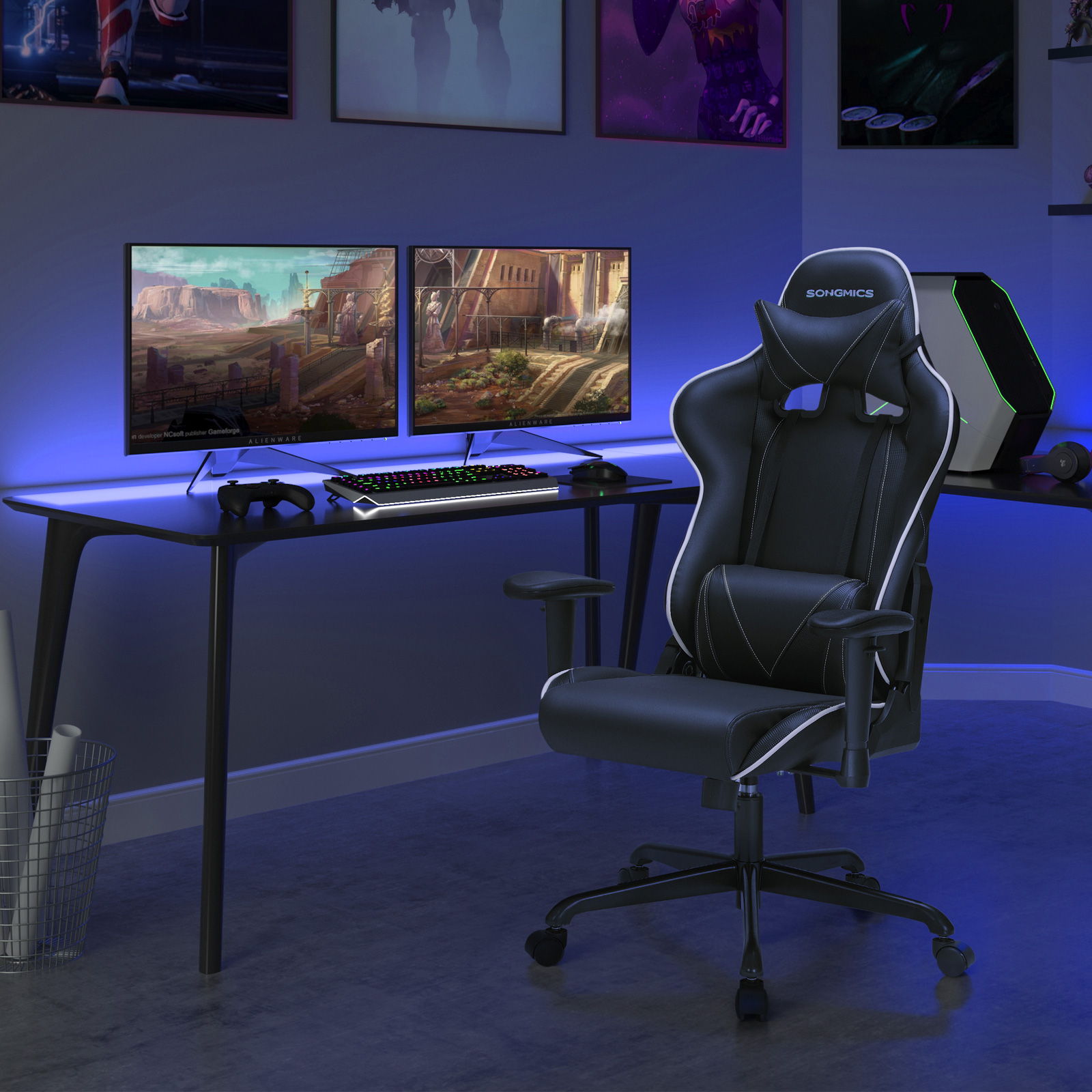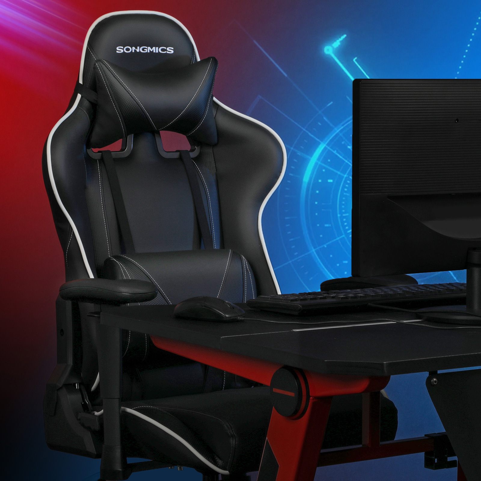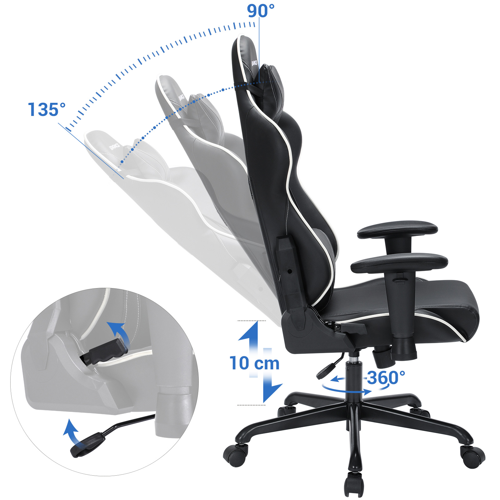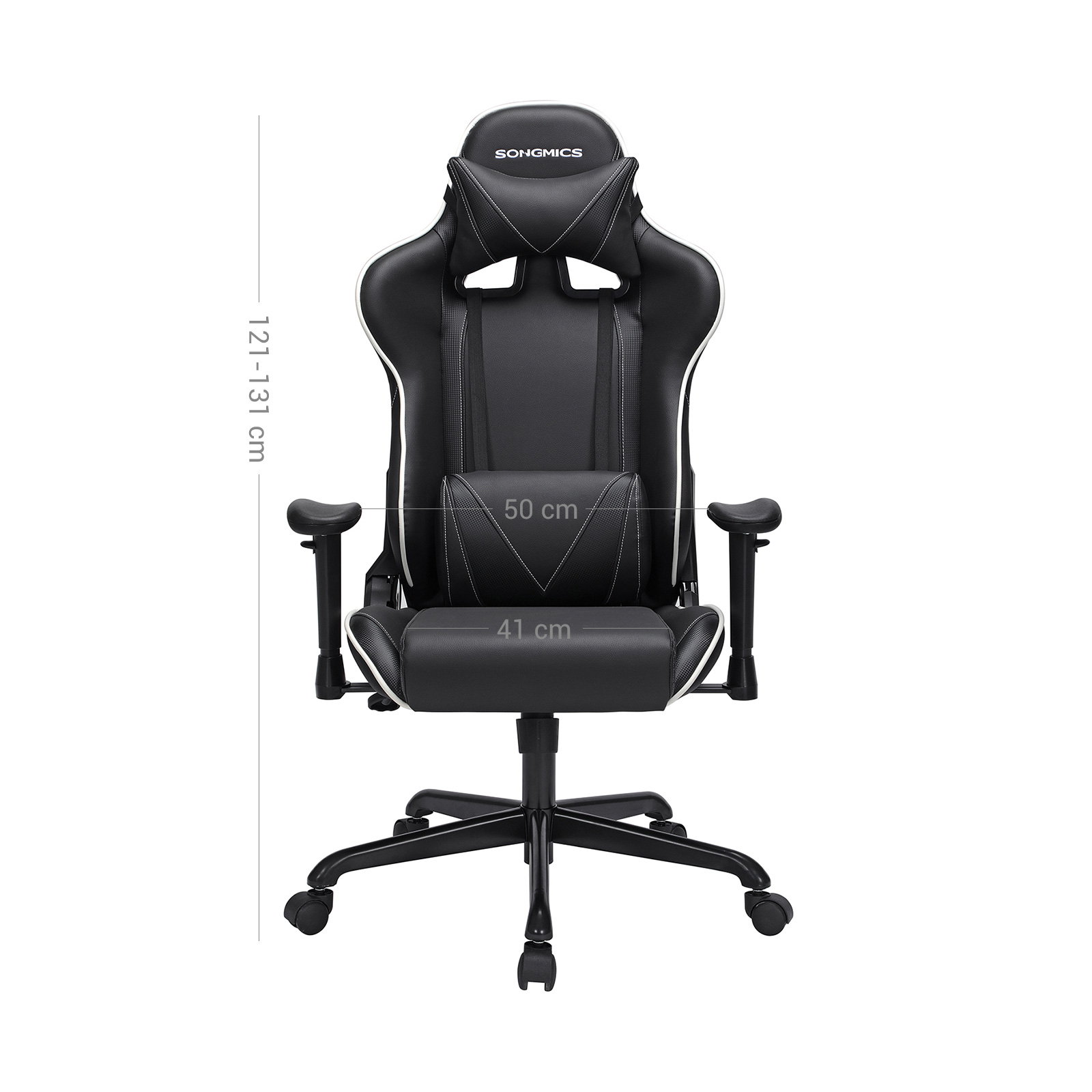 Aivan kuin olisit osa videopeliäsi: tämä kilpa-tuoli on luotu todellisille pelaajille! Jos rakastat nopeutta, tyyliä ja tietokonepelejä, tulet kokemaan upeita hetkiä tällä tuolilla. Sen ergonominen muotoilu takaa korkean istumamukavuuden, jopa pitkien pelisessioiden jälkeen. Keinutoiminto mahdollistaa kevyen keinumisen edestakaisin, mikä vähentää väsymystä. Istuinkorkeutta ja selkänojan kallistuskulmaa voidaan säätää joustavasti, joten voit mukauttaa tuolin täydellisesti omiin tarpeisiisi. Automaattinen palautus sylinteri on myös läpäissyt TÜV Rheinlandin turvallisuustestin standardin DIN 4550, luokka 4 mukaisesti (sertifikaatti myönnetty: toimittaja).Kun istut tällä työtuolilla, tunnet olevasi kuin istuisit tehokkaan urheiluauton ratissa – niin paljon voimaa! Tuotetiedot: Väri: musta Materiaali: teräs, PVC, vaahtomuovi Mitat: Kokonaiskorkeus: 121–131 cm Kokonaisleveys: 69 cm Kokonaisleveys: 70,5 cm Rullan halkaisija: 50 mm Rullan akselin halkaisija: 11 mm Tähtijalan halkaisija: 70 cm Istuimen korkeus: 46–56 cm Istuimen leveys: 41 cm Käsinojien korkeus: 17–24 cm Selkänojan leveys: 55 cm Selkänojan korkeus: 80 cm Paino: 19,5 kg Maks. staattinen kantavuus: 120 kg SONGMICS-ohjeet: Pitkä istuminen voi vaikuttaa kielteisesti terveyteesi. Pidä siksi säännöllisesti taukoja ja venyttele puolen tunnin välein. Älä istu pelkästään tuolin etureunalla, koska tuoli voi kaatua eteenpäin.