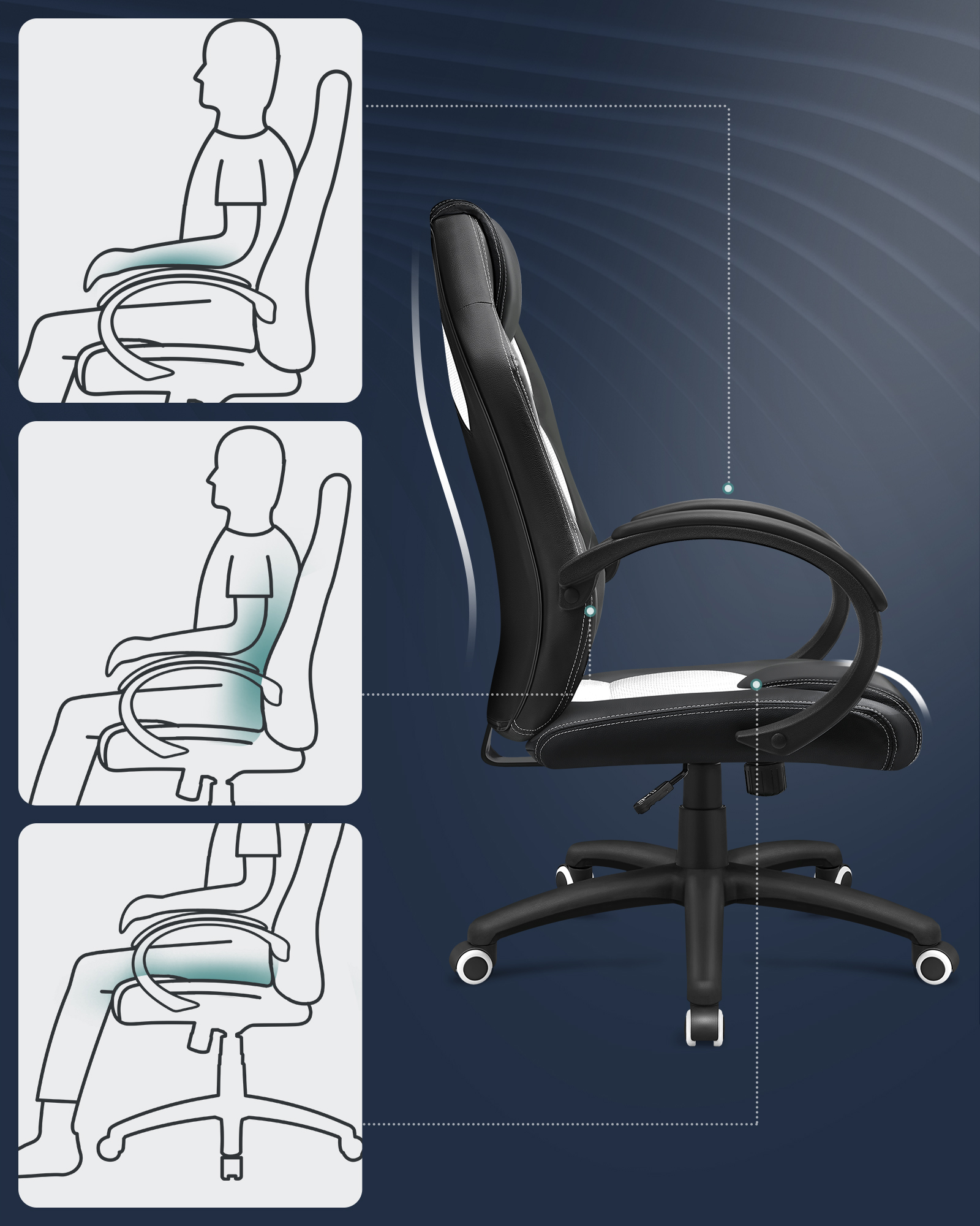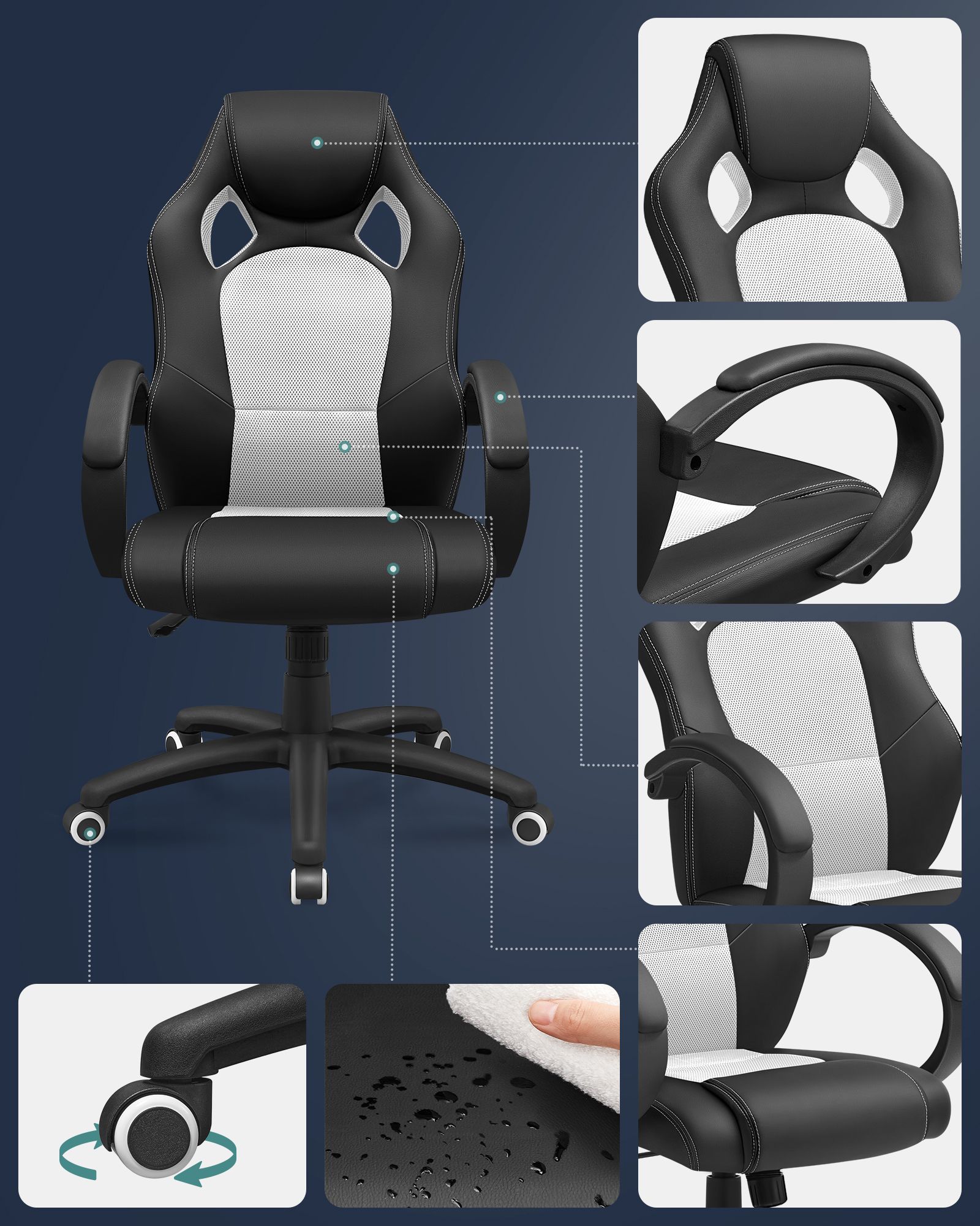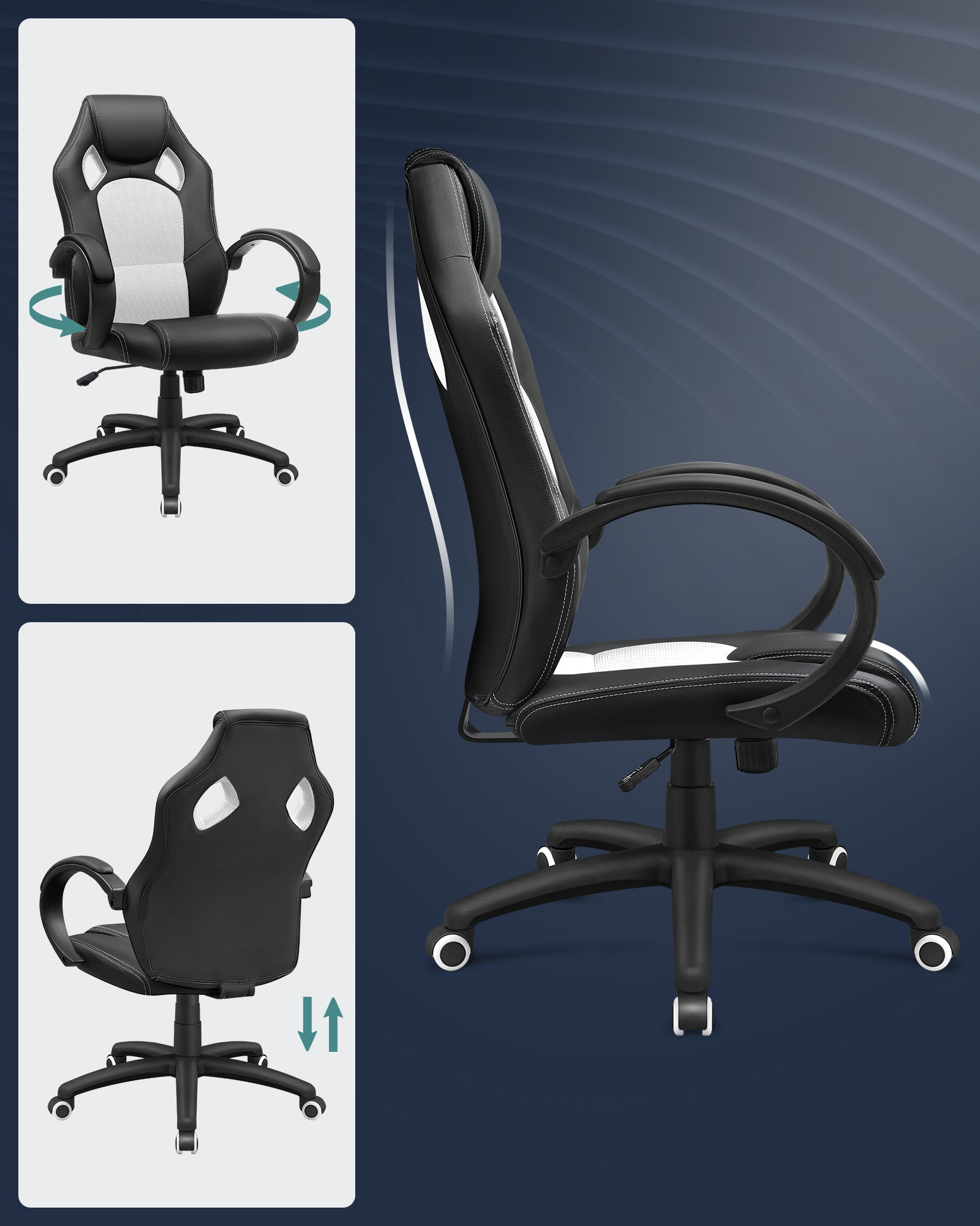 SONGMICS Racing-työtuoli Pelituoli Puheenjohtajan tuoli Kääntyvä tuoli PU musta-sininen OBG56L, 76.56632