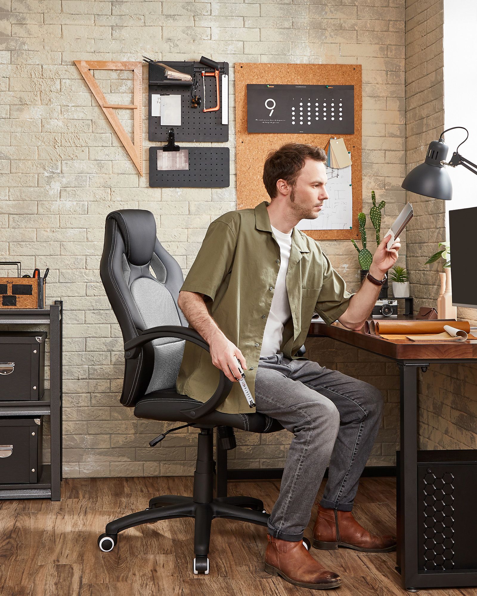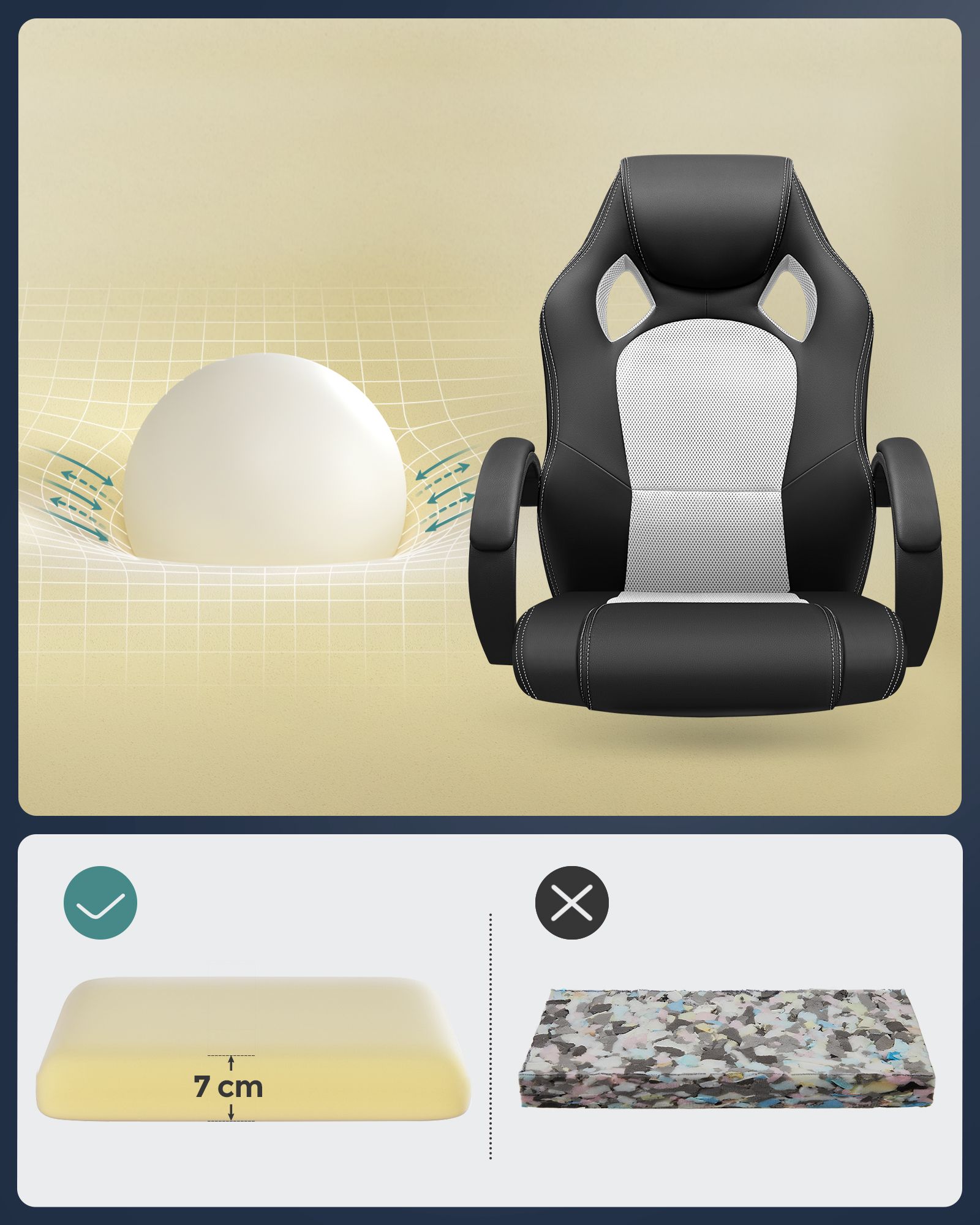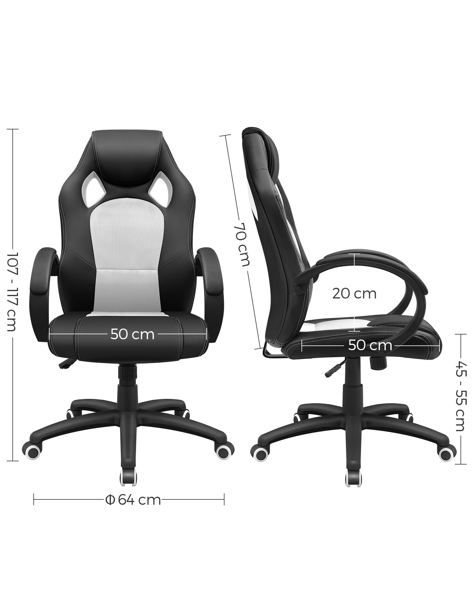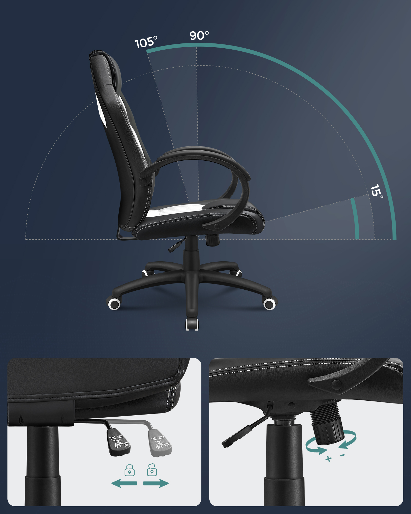 SONGMICS Racing-työtuoli Pelituoli Puheenjohtajan tuoli Kääntyvä tuoli PU musta-sininen OBG56L, 76.56632
