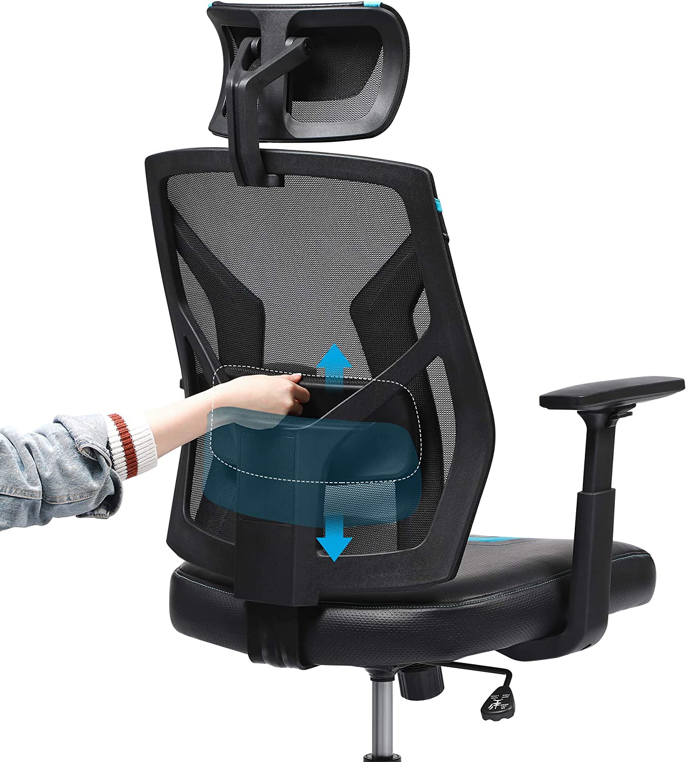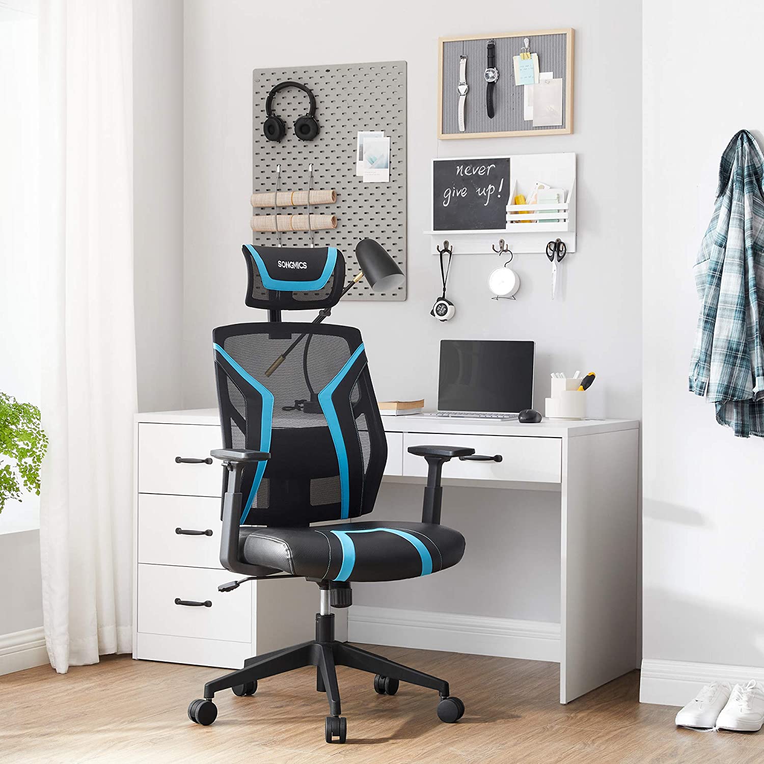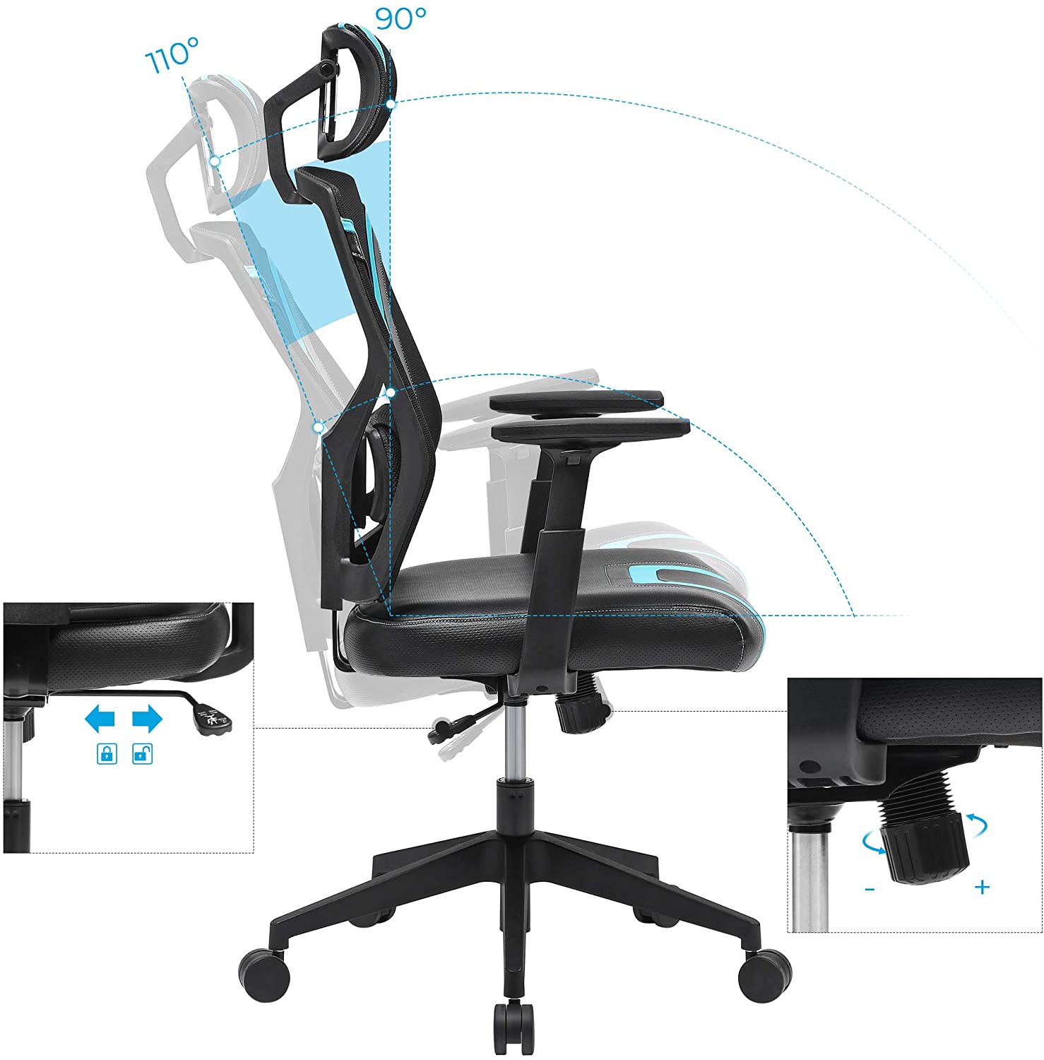 SONGMICS Ergonominen pyörivä tuoli, musta-sininen