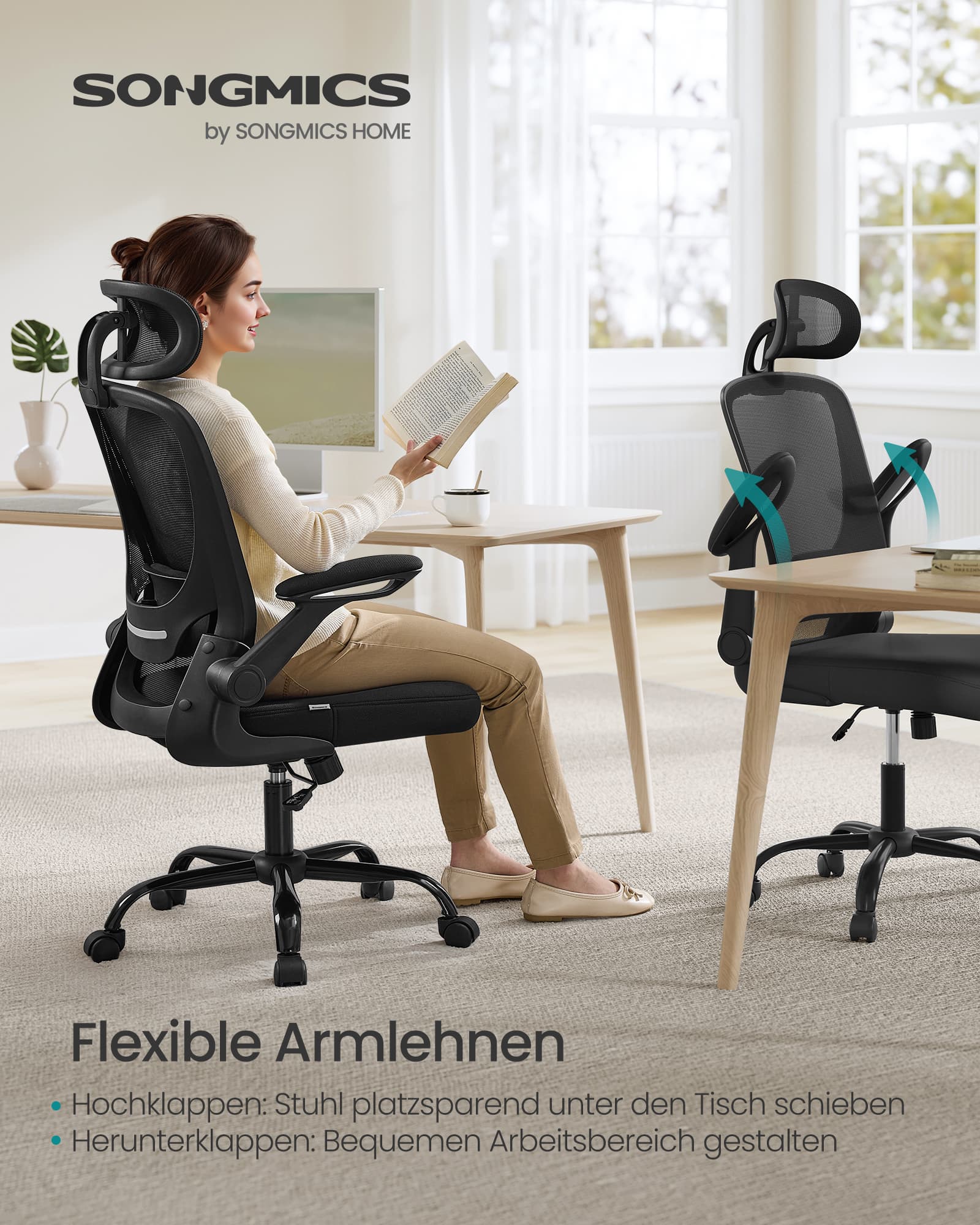 SONGMICS ergonominen toimistotuoli, mesh-verhoilu, musta