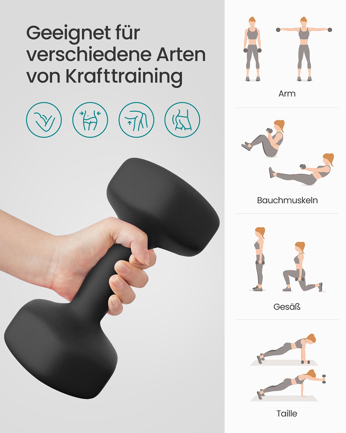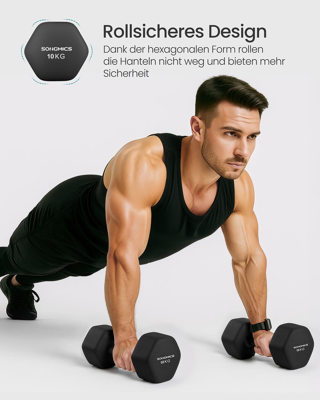 SONGMICS käsipainot, 2 kpl, käsipainosetti, käsipainot, kuusikulmainen, neopreenipinnoite, voimaharjoittelu, treeni, kuntoilu, kotikäyttöön