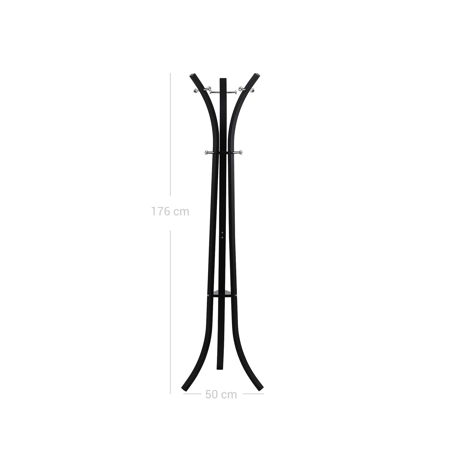 Etsitkö vaateripustinta, jolla on monipuoliset ominaisuudet? Sen on oltava helppo koota, tilaa säästävä ja vakaa? Tämä Songmics-vaateripustin täyttää kaikki nämä vaatimukset! Vakaa metallirunko on maalattu valkoiseksi ja varustettu 9 koukulla, jotka tarjoavat riittävästi tilaa takkeillesi, päällystakeillesi ja laukuillesi. Keskimmäisille pienille hyllyille voi myös asettaa sateenvarjot.Teline on täysin vakaa myös ”täyteen kuormattuna”. Songmics-vaatetelineestä on iloa vuosiksi. Tuotetiedot: Mitat: 50 x 176 x 50 cm (L x K x S) Materiaali: jauhemaalatut teräsputket + ABS-muovi Nettopaino: 5,5 kg Bruttopaino: 5,9 kg Pakkauksen mitat: 103 x 31,5 x 7 cm Toimitus sisältää: 1 x vaatehylly 1 x ohjeet (saksa, englanti, ranska, italia, espanja)
