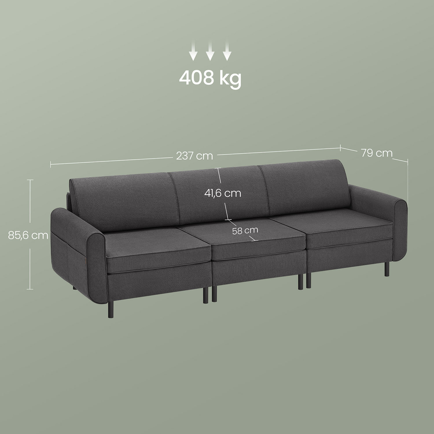 – Koko (suora): 79 x 237 x 85,6 cm (S x L x K)