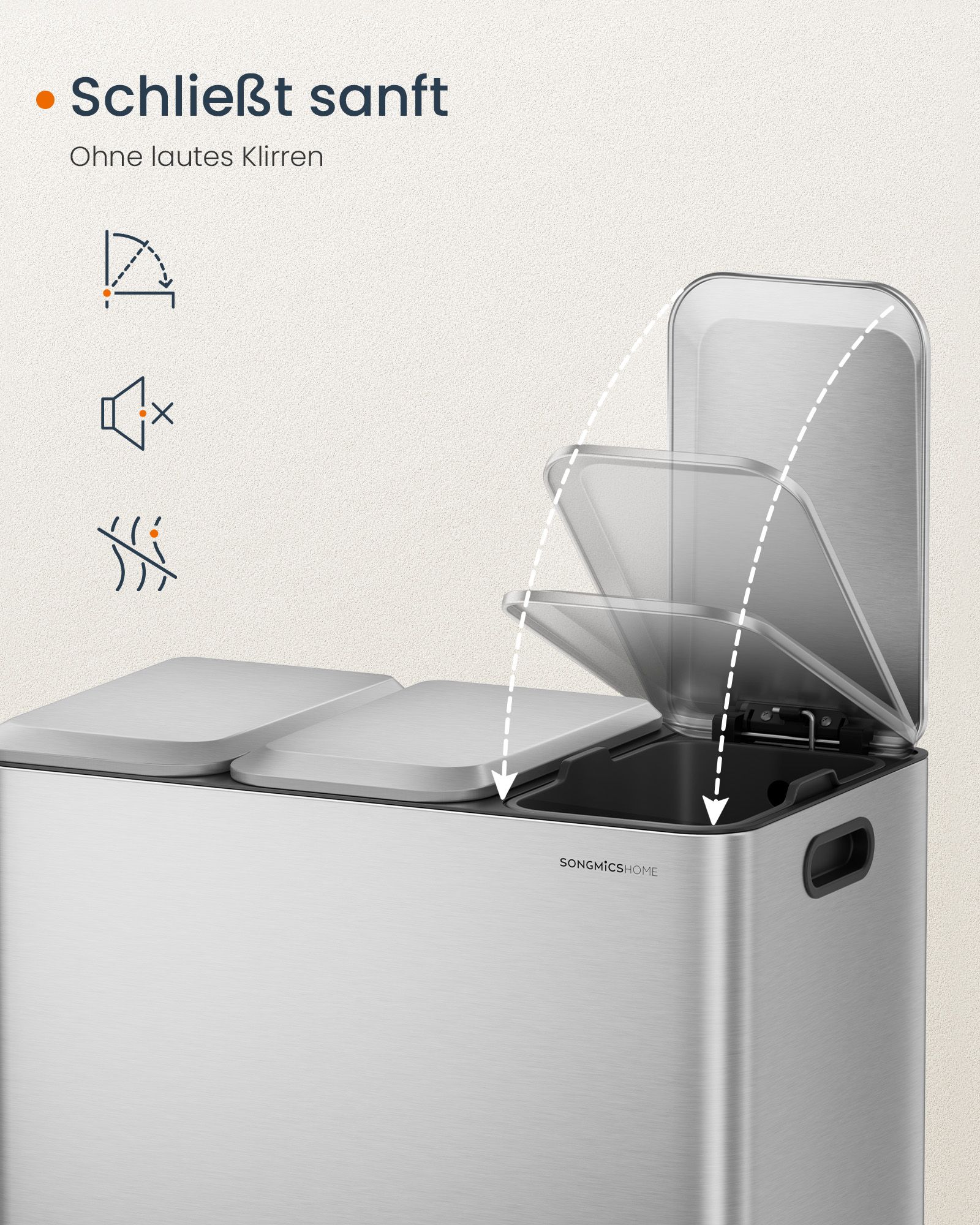 SONGMICS HOME Keittiön roskakori, 3 x 15 l lokeroa, roskakori värikoodatuilla polkimilla, jätteiden lajittelujärjestelmä, kansilla ja sisäastioilla, teräs, musta LTB740B02V1