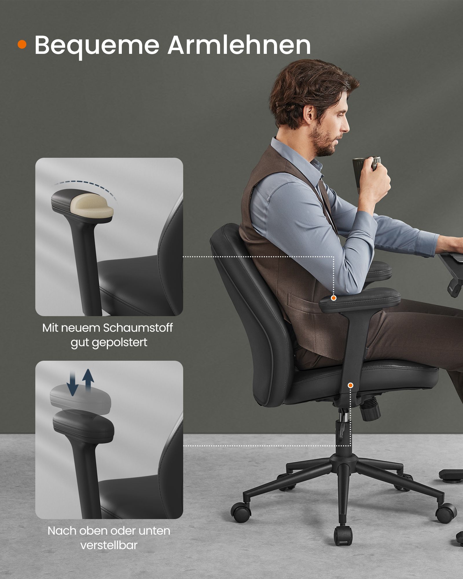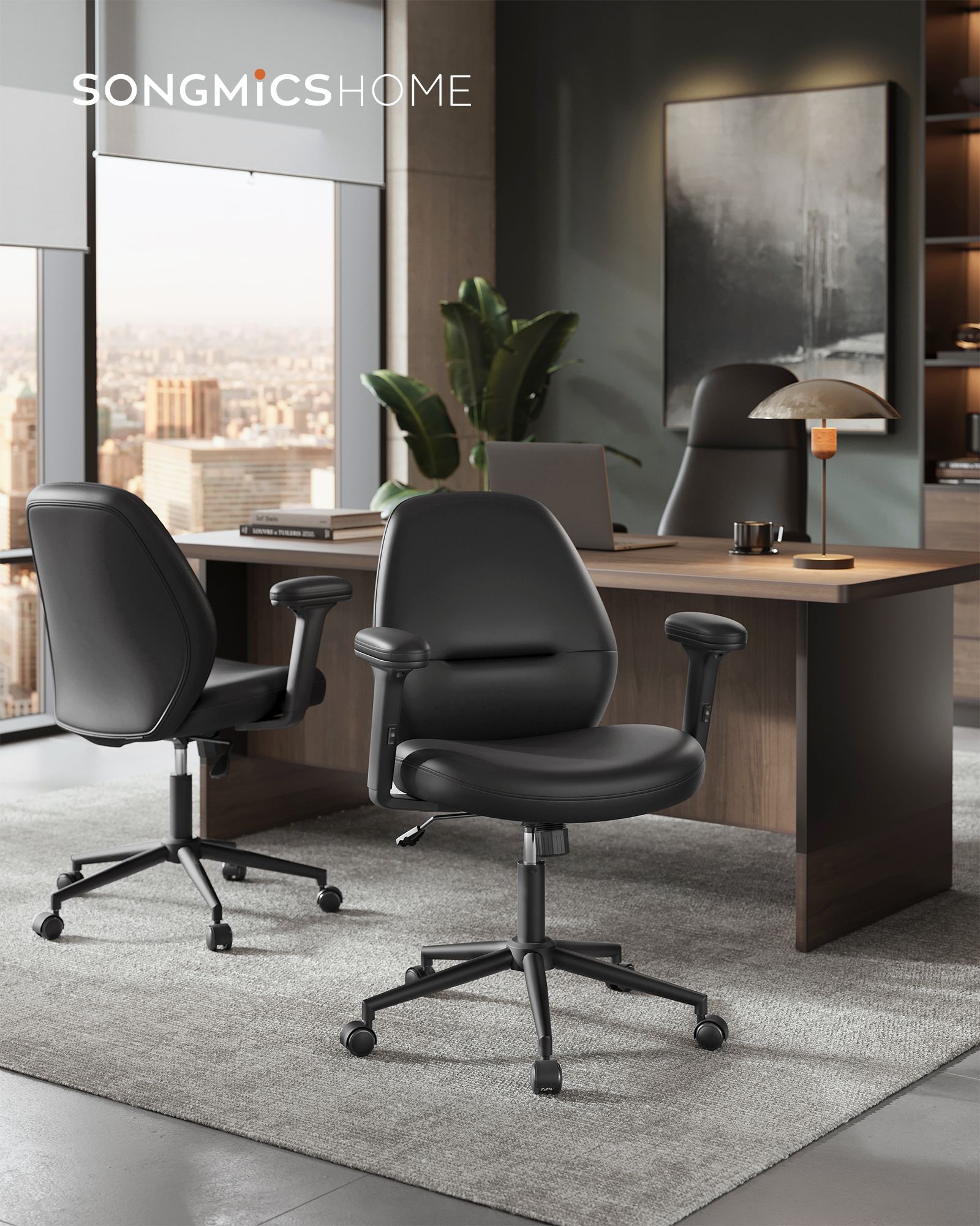 SONGMICS HOME työtuoli, pyörivä tuoli, toimistotuoli säädettävillä käsinojilla, korkeussäädettävä, moderni, selkänoja, käsinojat, leveä istuin, puuvilla-pellavaseos, pastellinpunainen OBG035R01