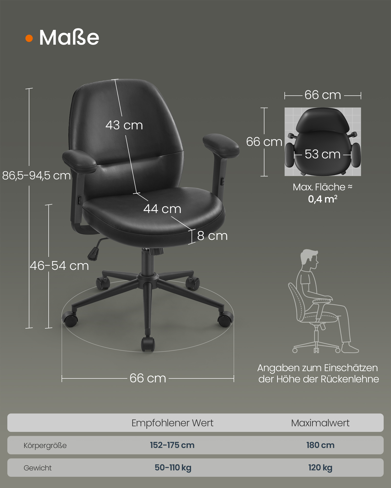 Istuimen koko: 44 x 53 cm (S x L)