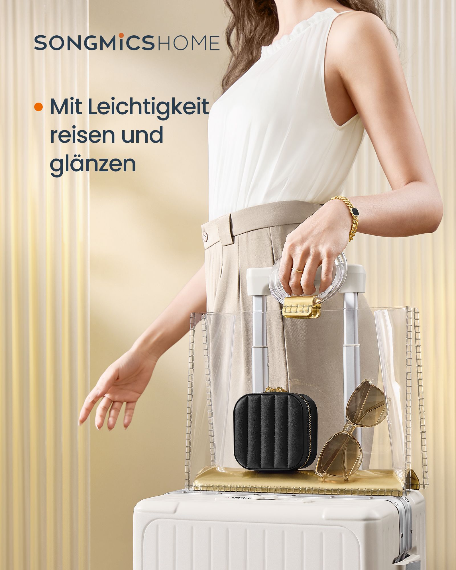 SONGMICS HOME ANAH -kokoelma – korurasia matka, pieni korurasia, korujen säilytys peilillä, 10,5 x 10,5 x 6 cm, PU ompeleilla, vetoketju, lahjaidea, pilvinen valkoinen JBC179W01