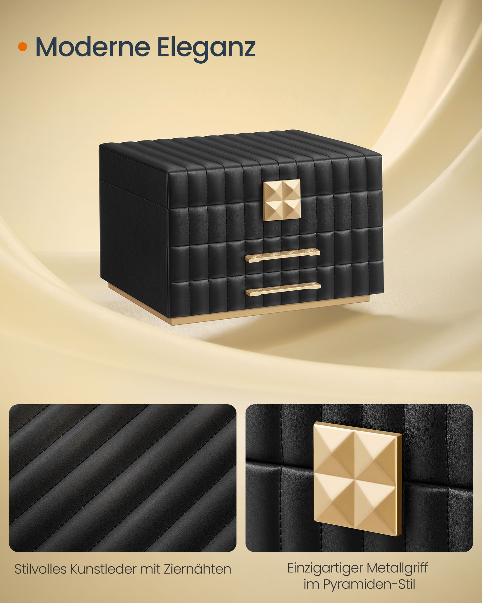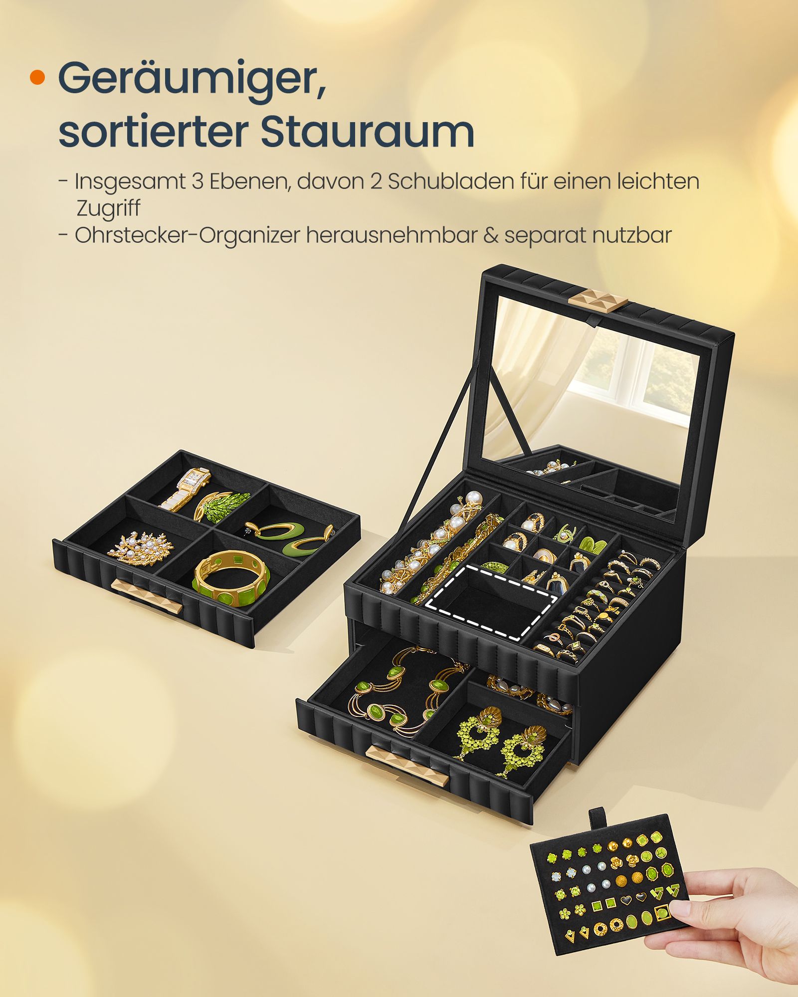 SONGMICS HOME ANAH -kokoelma – korurasia peilillä, 3 tasoa, korujen säilytys, 2 laatikkoa, PU-nahka ompeleilla, leijuva vaikutelma, 21,5 x 24 x 15,8 cm, lahjaidea, pilvinen valkoinen JBC183W01