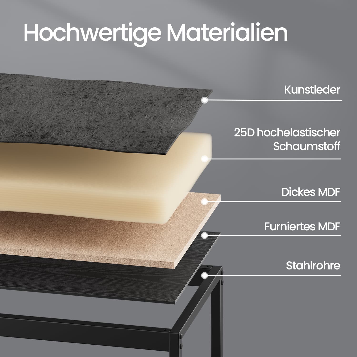 Materiaali: teräs, 25D erittäin joustava vaahtomuovi, PU-keinonahka (polyuretaani), MDF (keskitiheä kuitulevy)