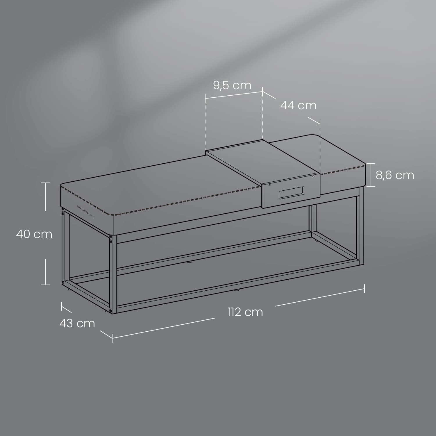Koko: 43 x 112 x 40 cm (S x L x K)