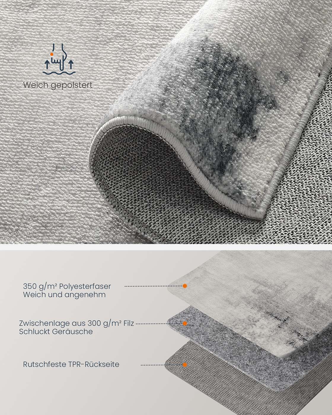 SONGMICS HOME matto, 92 x 153 cm, olohuoneen matto, luistamaton matto, moderni abstrakti tyyli, olohuoneeseen, keittiöön, eteiseen, ruokailuhuoneeseen, konepestävä, kyyhkynharmaa TAR072G01