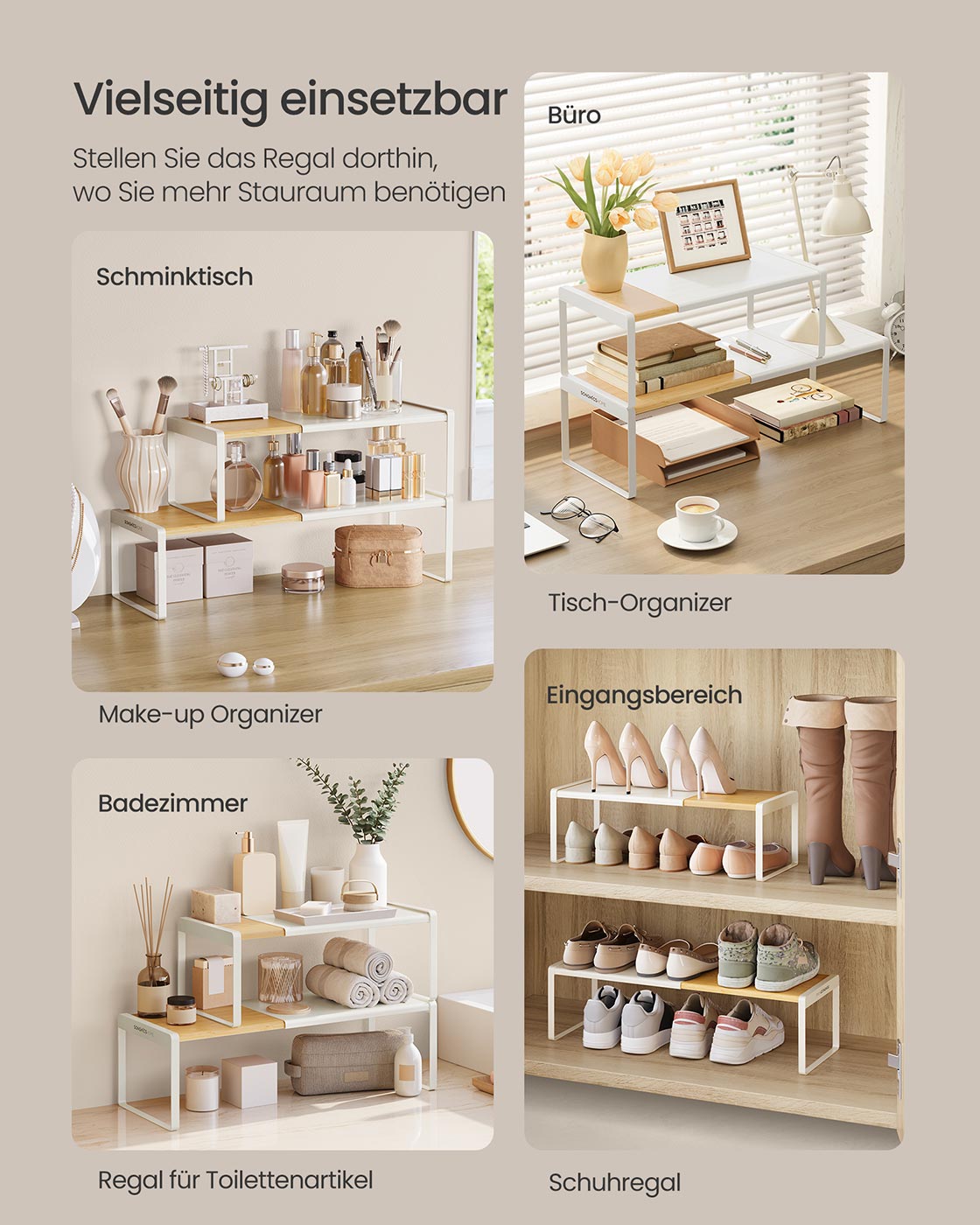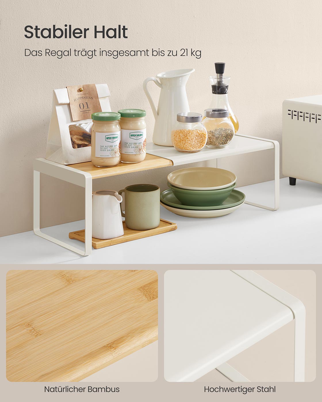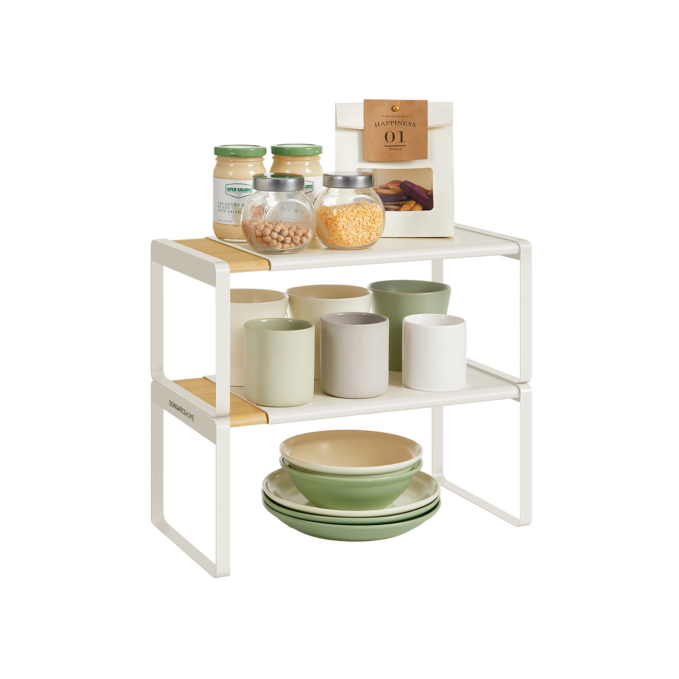 SONGMICS HOME maustehylly, 2 kpl, ulosvedettävä, keittiön järjestelijä, keittiöhylly, kaapin järjestelijä, maustepidike, keittiö, pieni hylly, pinottava, pöytäjärjestelijä, luonnonbeige-mustanmusta KCS051B01
