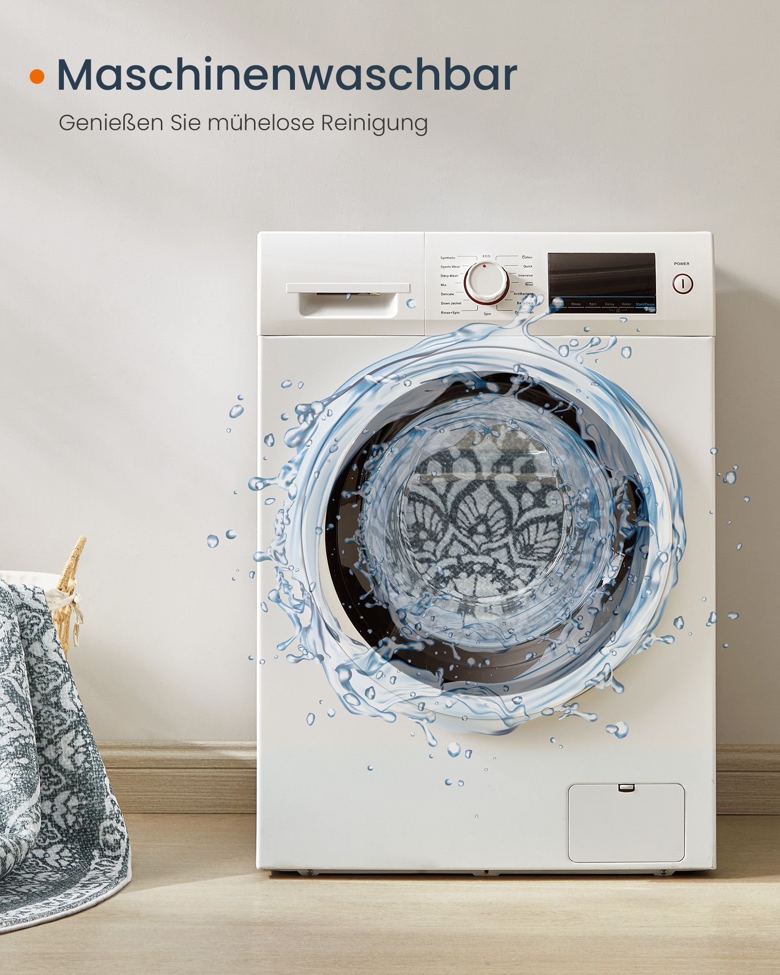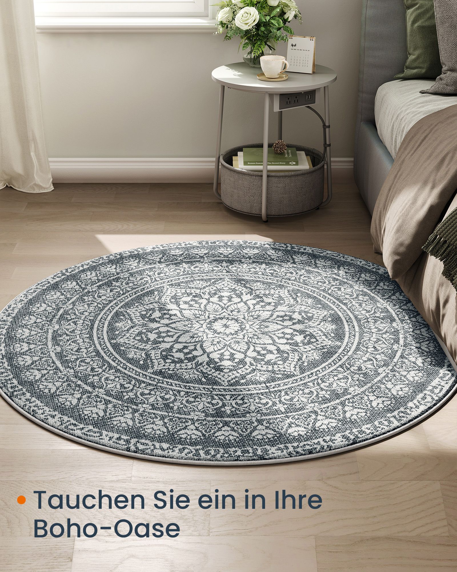 SONGMICS HOME Pyöreä matto, 120 cm, olohuoneen matto, luistamaton matto, pehmeä, koristeellinen, olohuoneeseen, makuuhuoneeseen, konepestävä, boho-tyyli, kyyhkynharmaa TAR051G01