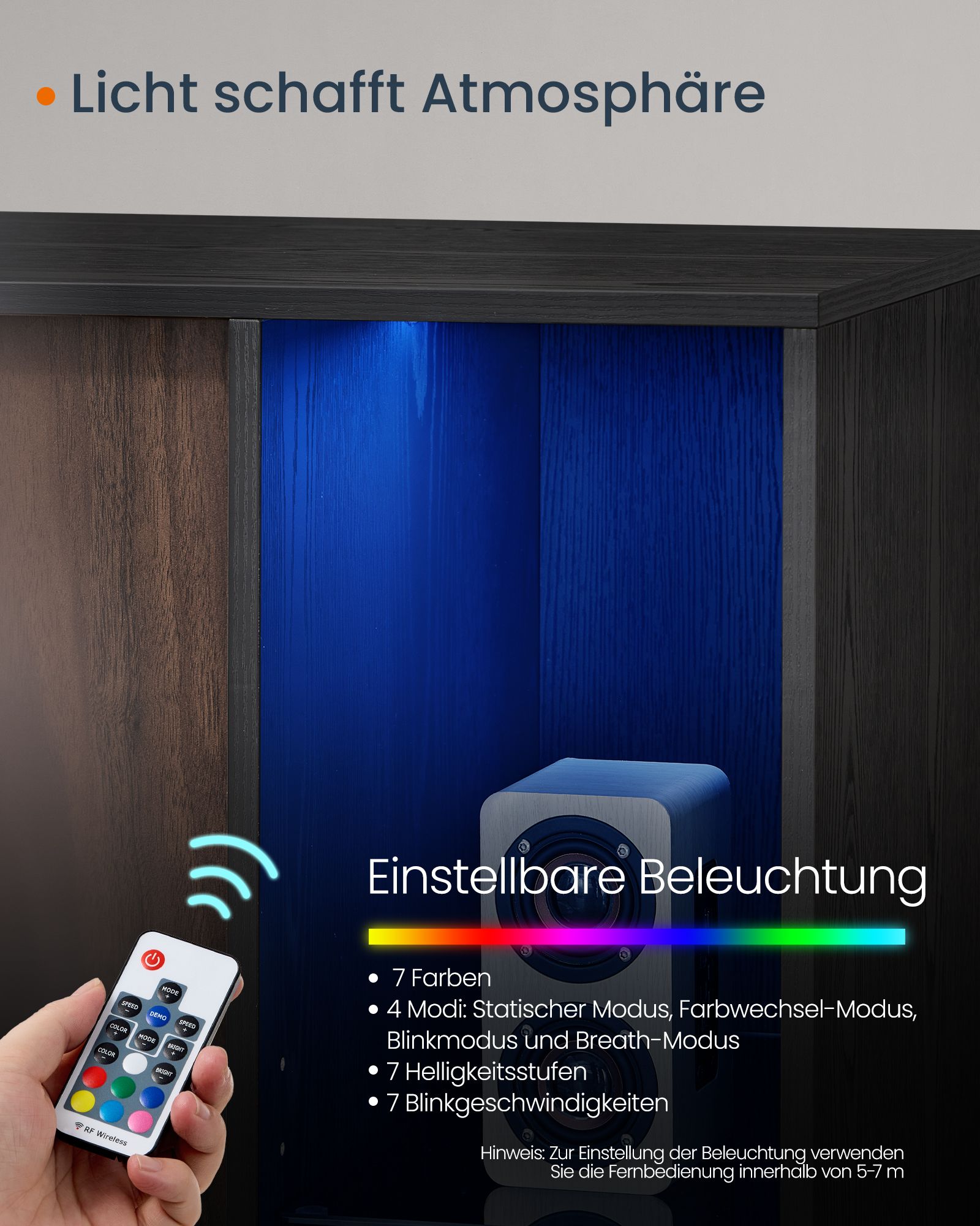 SONGMICS HOME Erittäin nopea työkaluton asennus, valaistu senkki, säilytyskaappi, TV-kaappi, lasihylly, työkaluton tekniikka, luonnollinen pähkinäpuun väri, eebenpuun musta BBK372B01