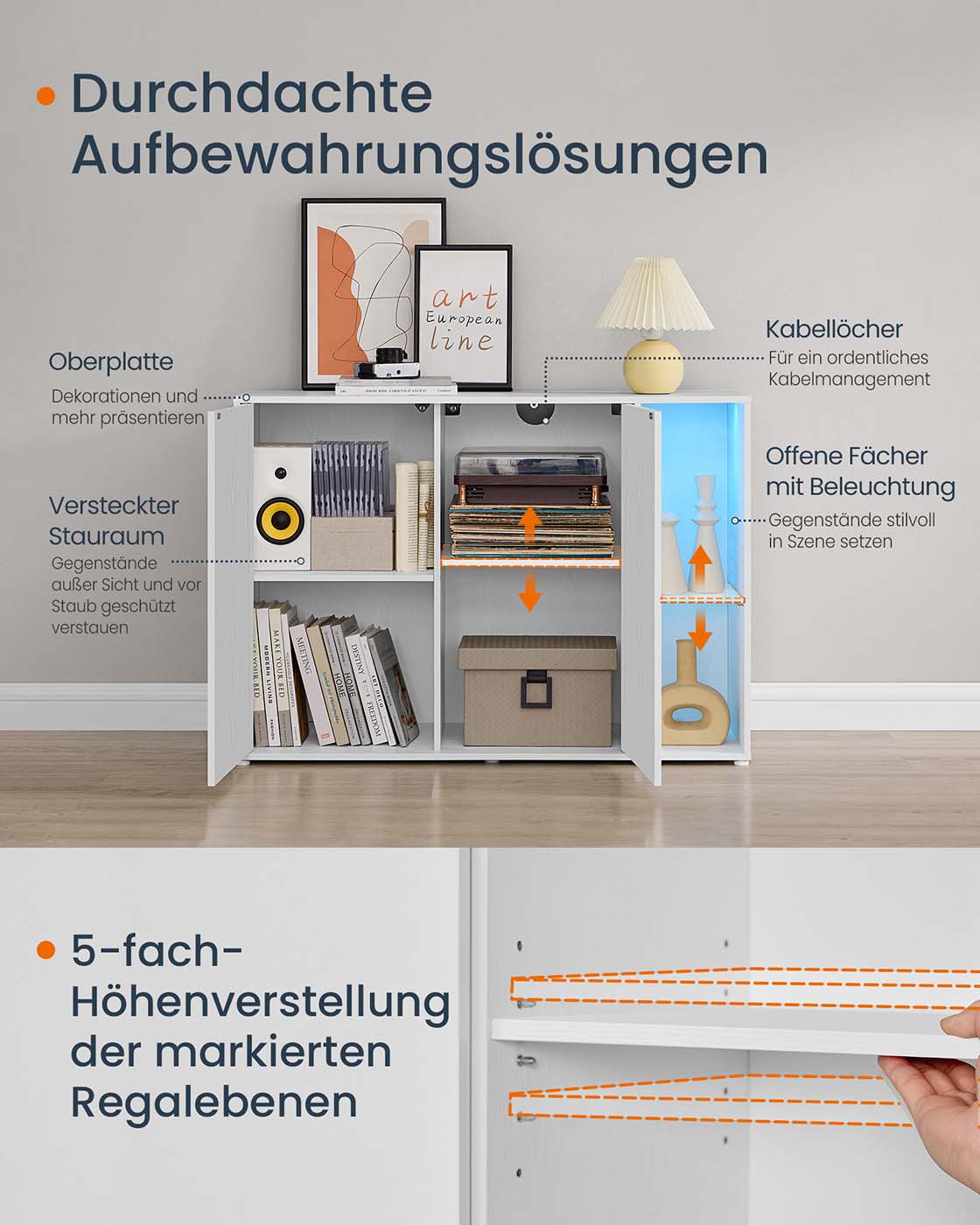 Keskimmäisten hyllyjen maks. staattinen kantavuus kaapin ovien takana: 18,1 kg