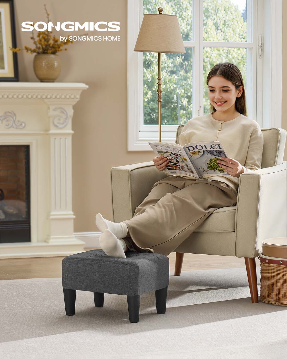 SONGMICS-rahi, jalkapuhdistin, sametti, paksu pehmuste, kantavuus 150 kg, olohuoneeseen, makuuhuoneeseen, eteiseen, pastellinpunainen-mustanmusta LOM501R01