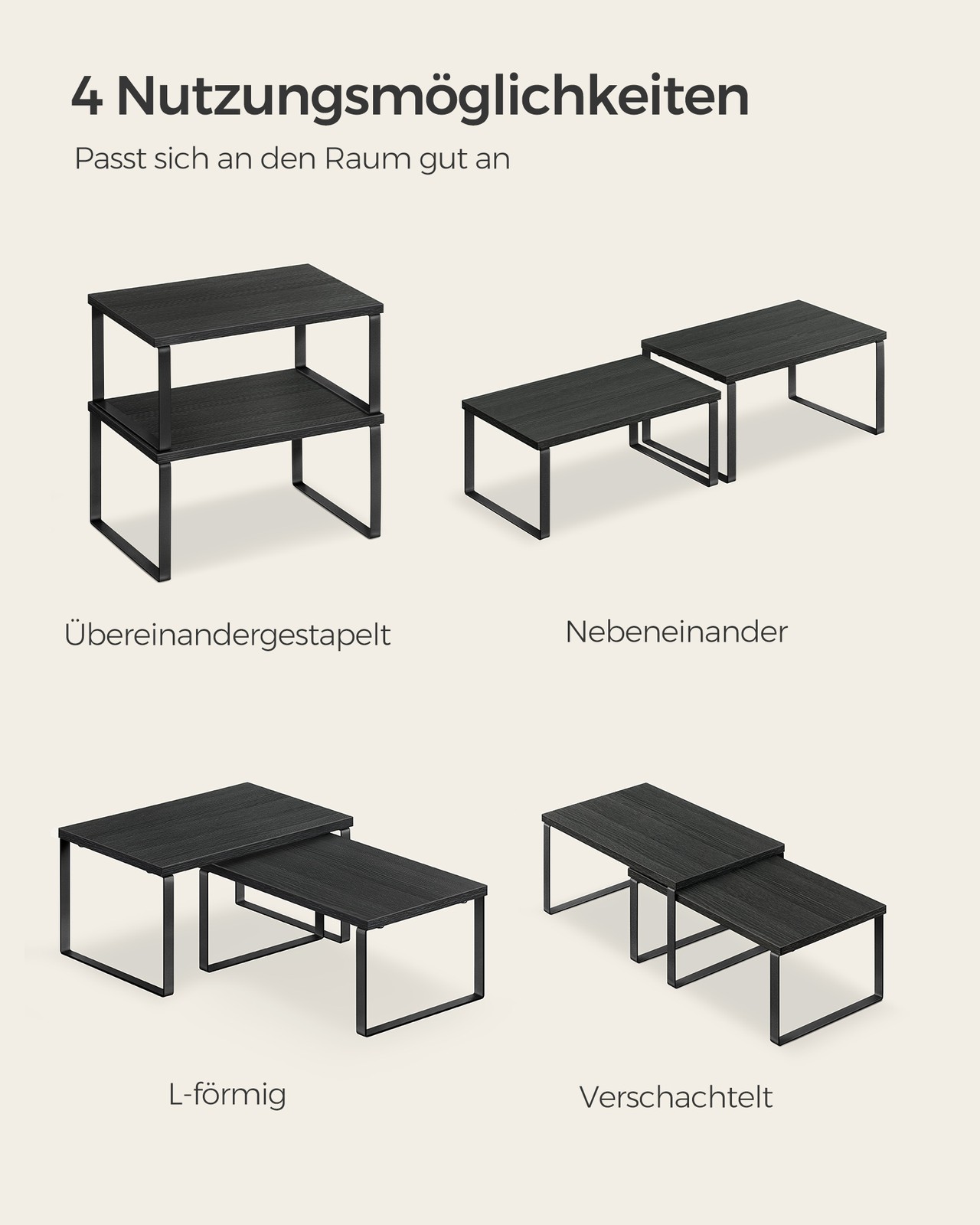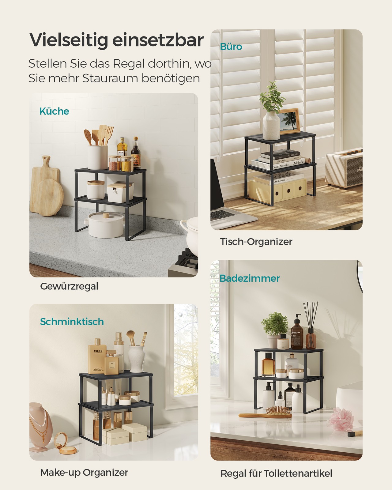 SONGMICS maustehylly, 2 kpl, keittiöhylly, keittiön järjestelijä, laajennettava, maustepidike, pinottava, metallia ja bambua, valkoinen-luonnonväri KCS02NW