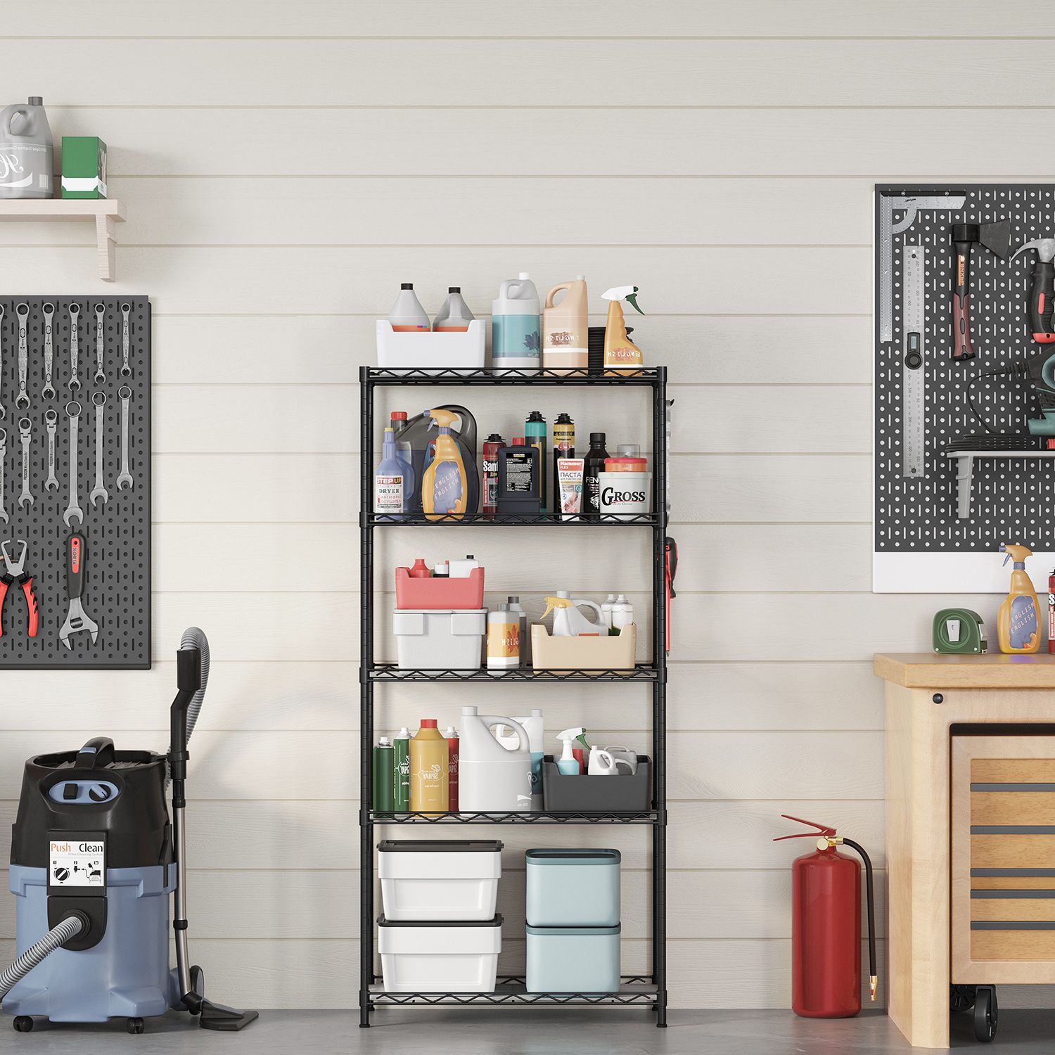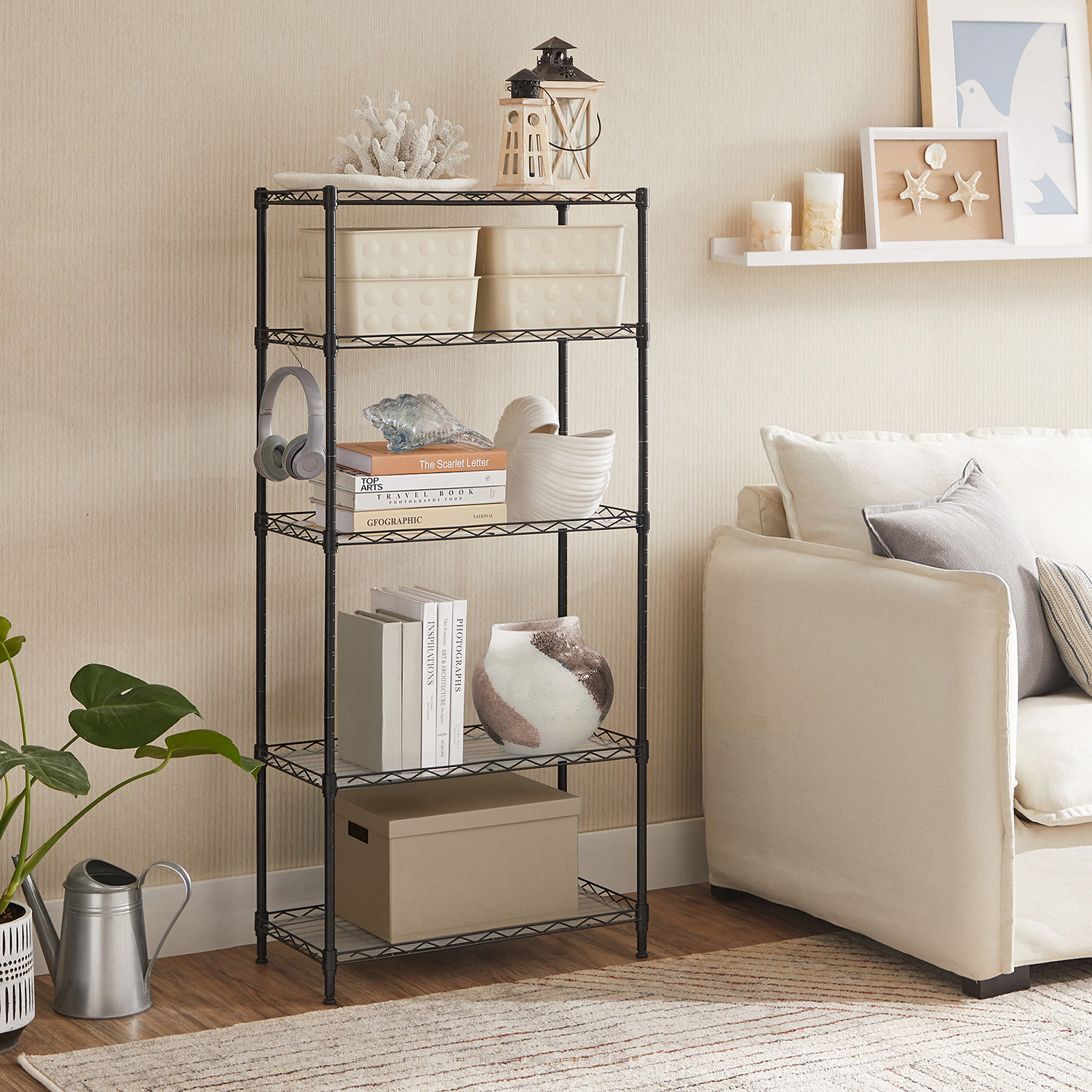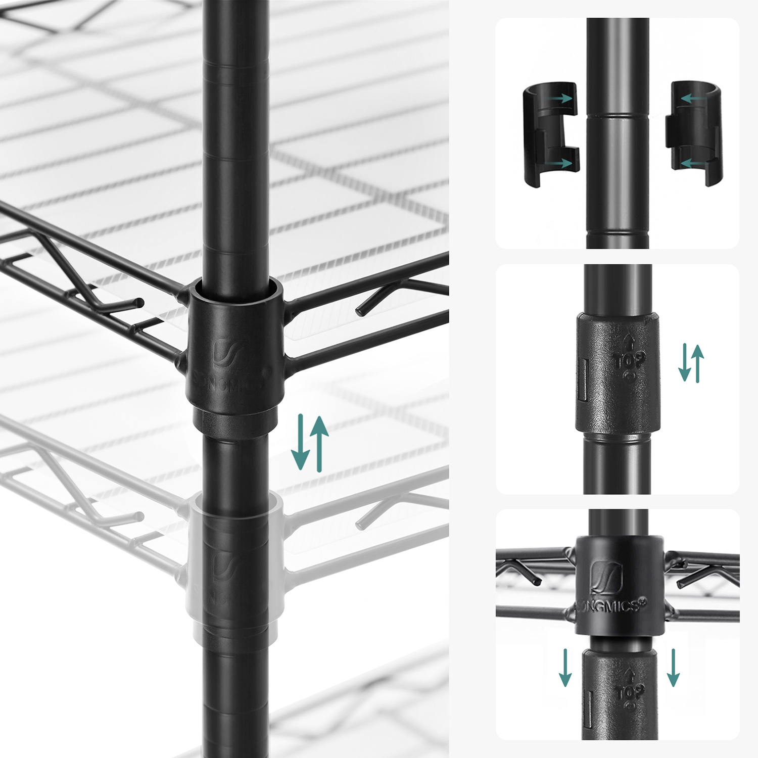 Tuotetiedot: – Väri: musta – Materiaali: teräs – Koko: 59 x 29 x 128 cm (P x L x K) – Paino: 5 kg – Maks. staattinen kantavuus hyllytasoa kohti: 20 kg – Maks. staattinen kantavuus yhteensä: 100 kg Toimitus sisältää:- 1 x keittiöhylly – 5 x PP-levy – 8 x S-koukku – 1 x kaatumissuoja – 1 x ohjeet SONGMICS Huomautukset: – Muovikiinnikkeitä asennettaessa TOP-nuolen tulee aina osoittaa ylöspäin. Tarkista asennuksen jälkeen kaikki kiinnikkeet varmistaaksesi, että ne eivät liiku. – Varmista, että kaikki kiinnikkeet ovat kunnolla lukittuneet pystytankojen syvennyksiin, jotta hyllyt ovat keittiön pöydän kanssa samansuuntaiset. – Kiinnitä tuote seinään kaatumissuojalla turvallisen käytön varmistamiseksi.