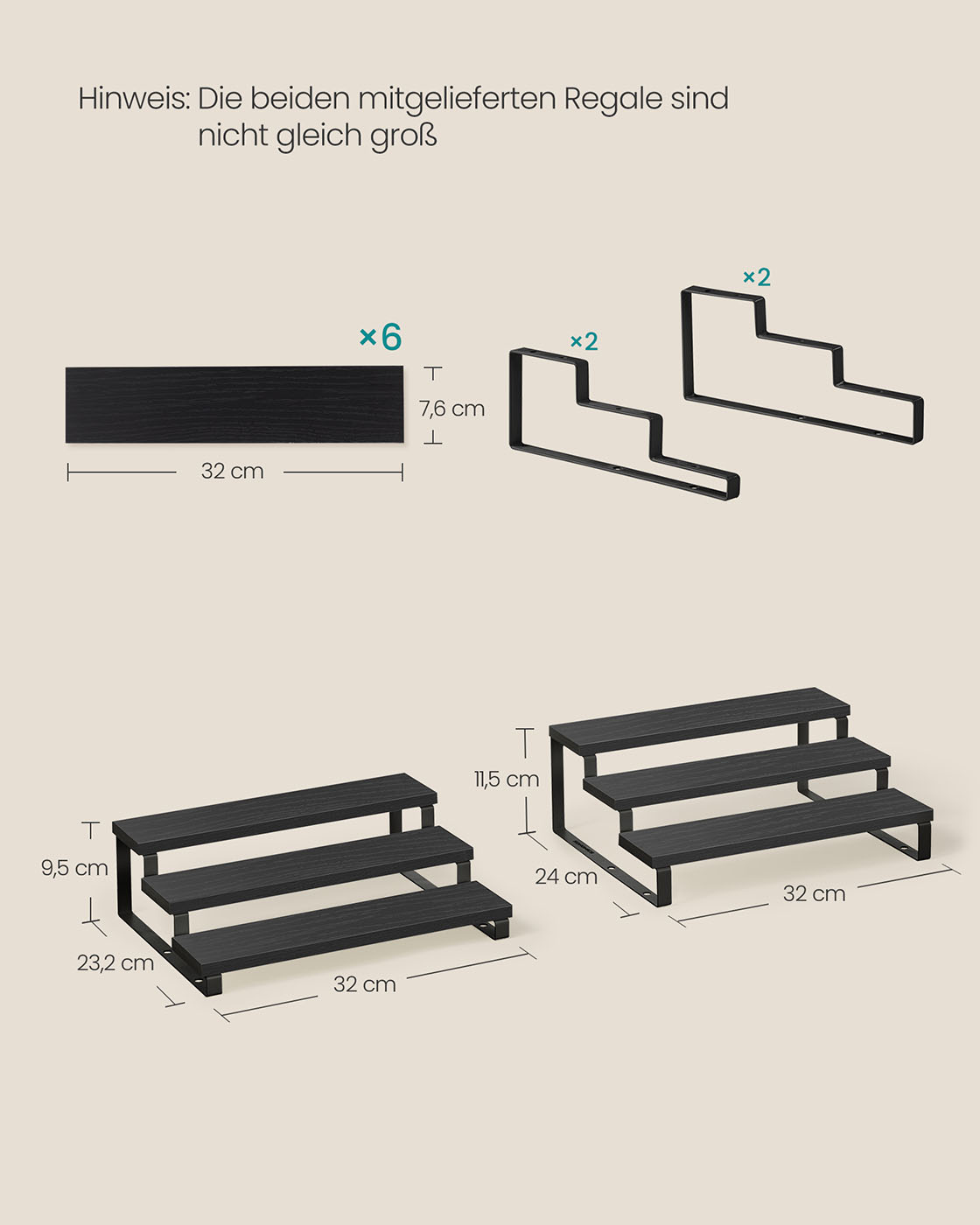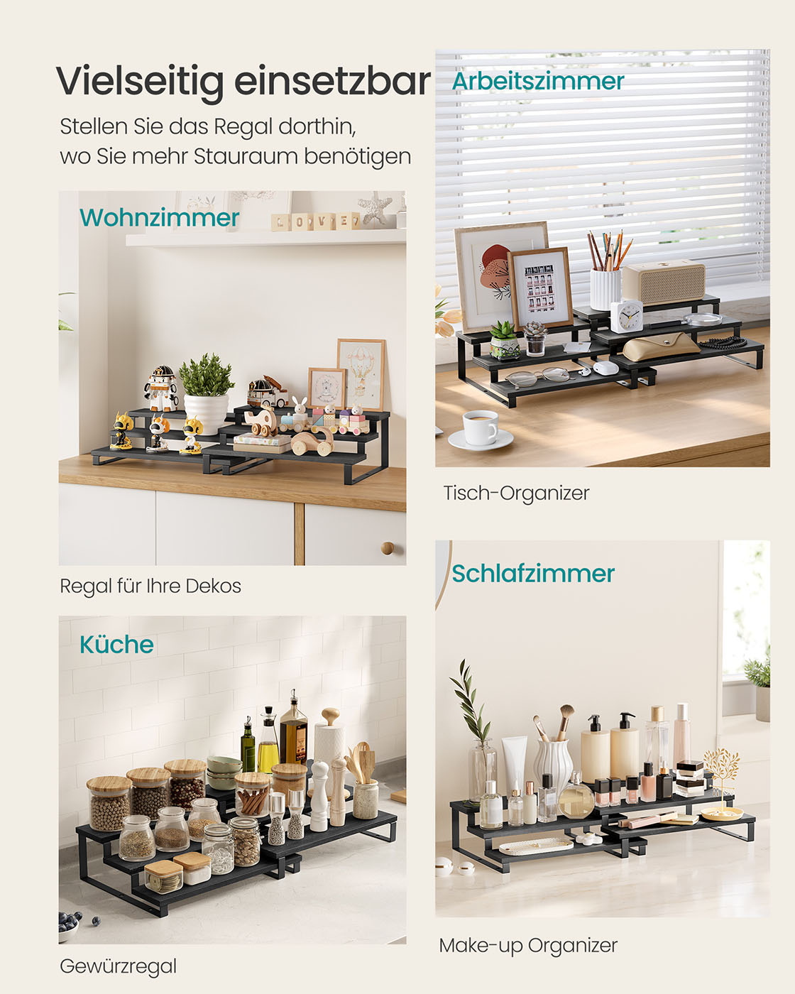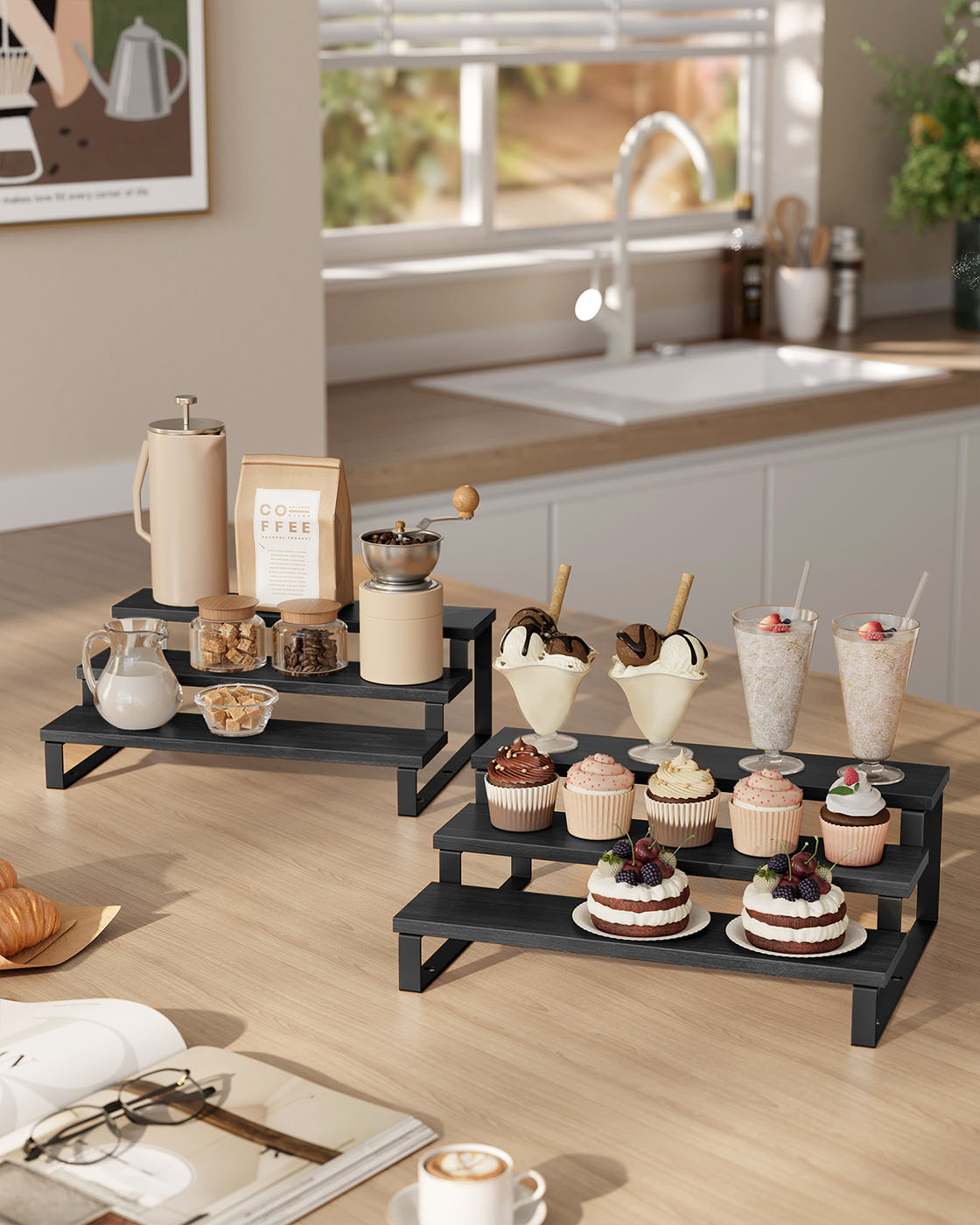 SONGMICS maustehyllyt, keittiöhyllyt, keittiön järjestelijät, 2 kpl, puumateriaali, 3 hyllyä kussakin, ulosvedettävät, pinottavat, ruokakomeroon, työtasolle, eebenpuunmusta-mustanmusta KCS116B01