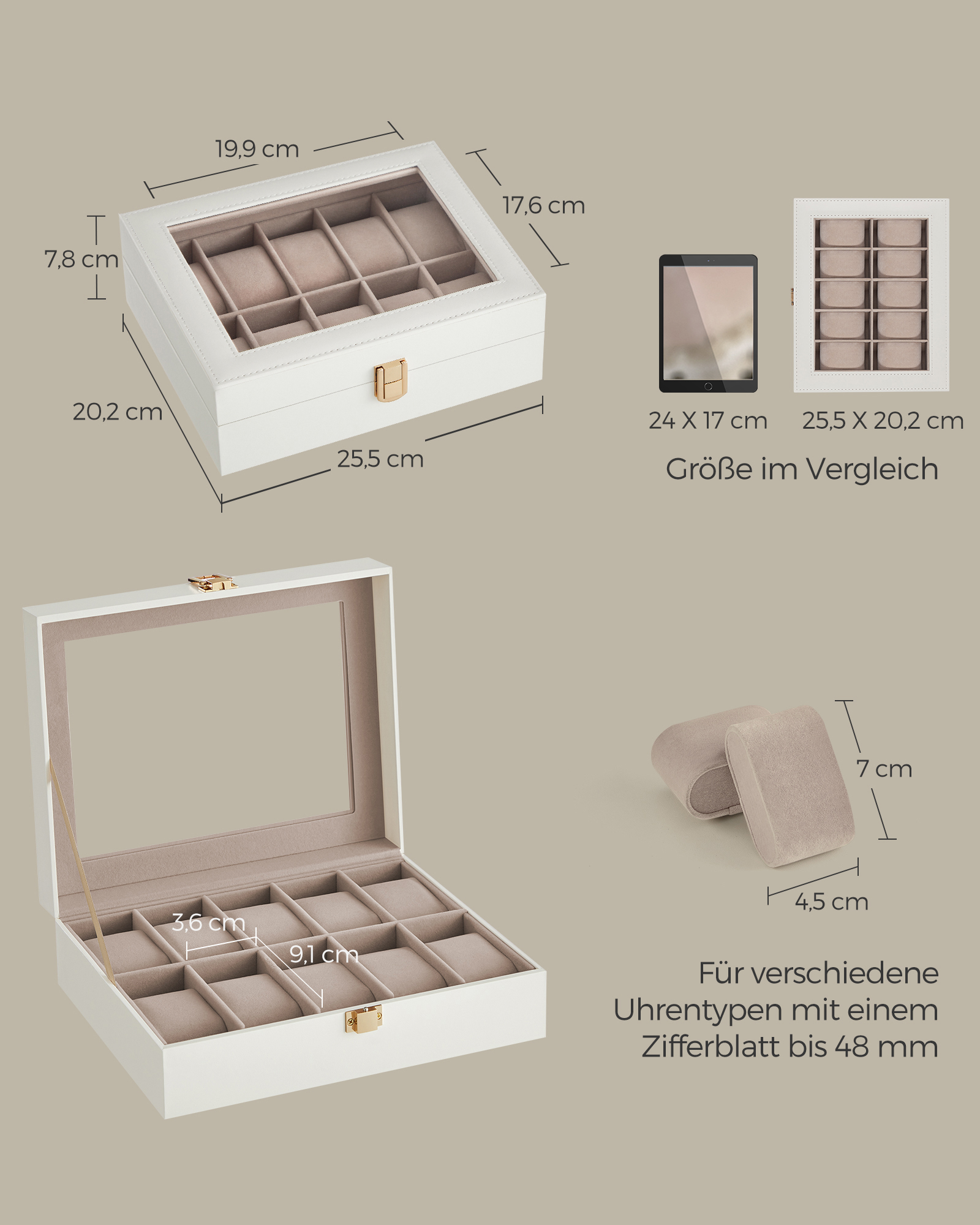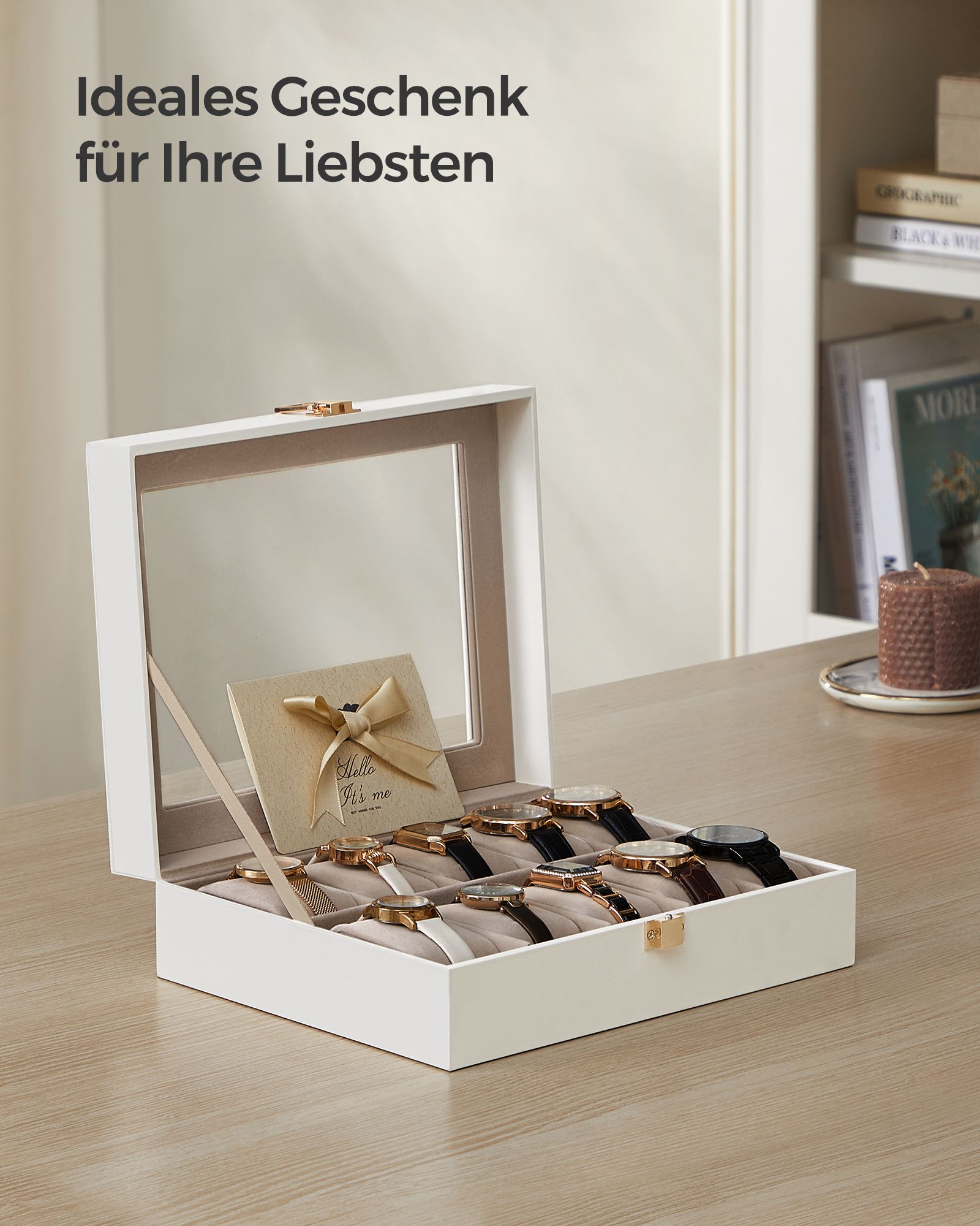 SONGMICS kellolaatikko 10 kellolle, lasi-ikkuna, musta JWB010