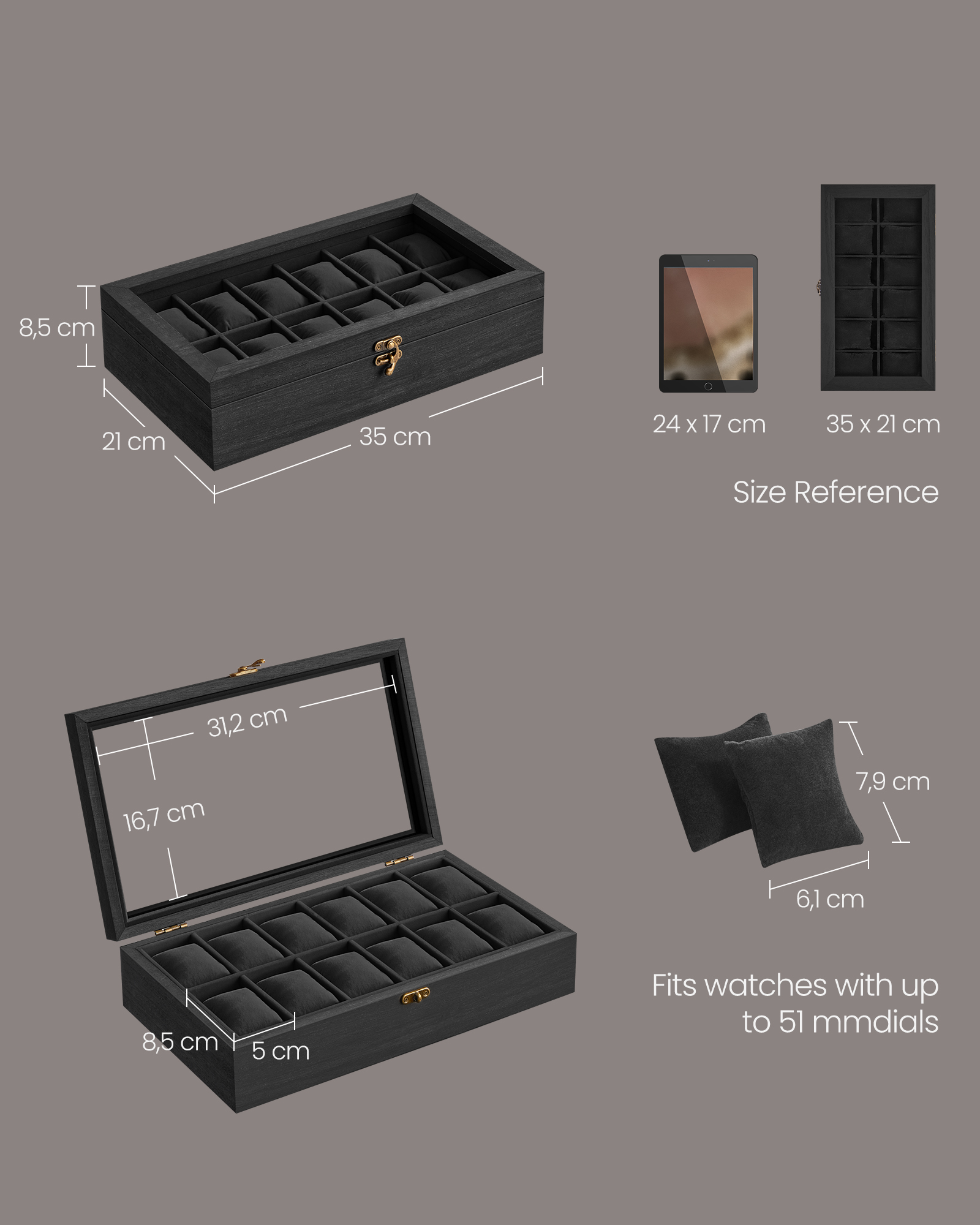 Koko: 21 x 35 x 8,5 cm (S x L x K)