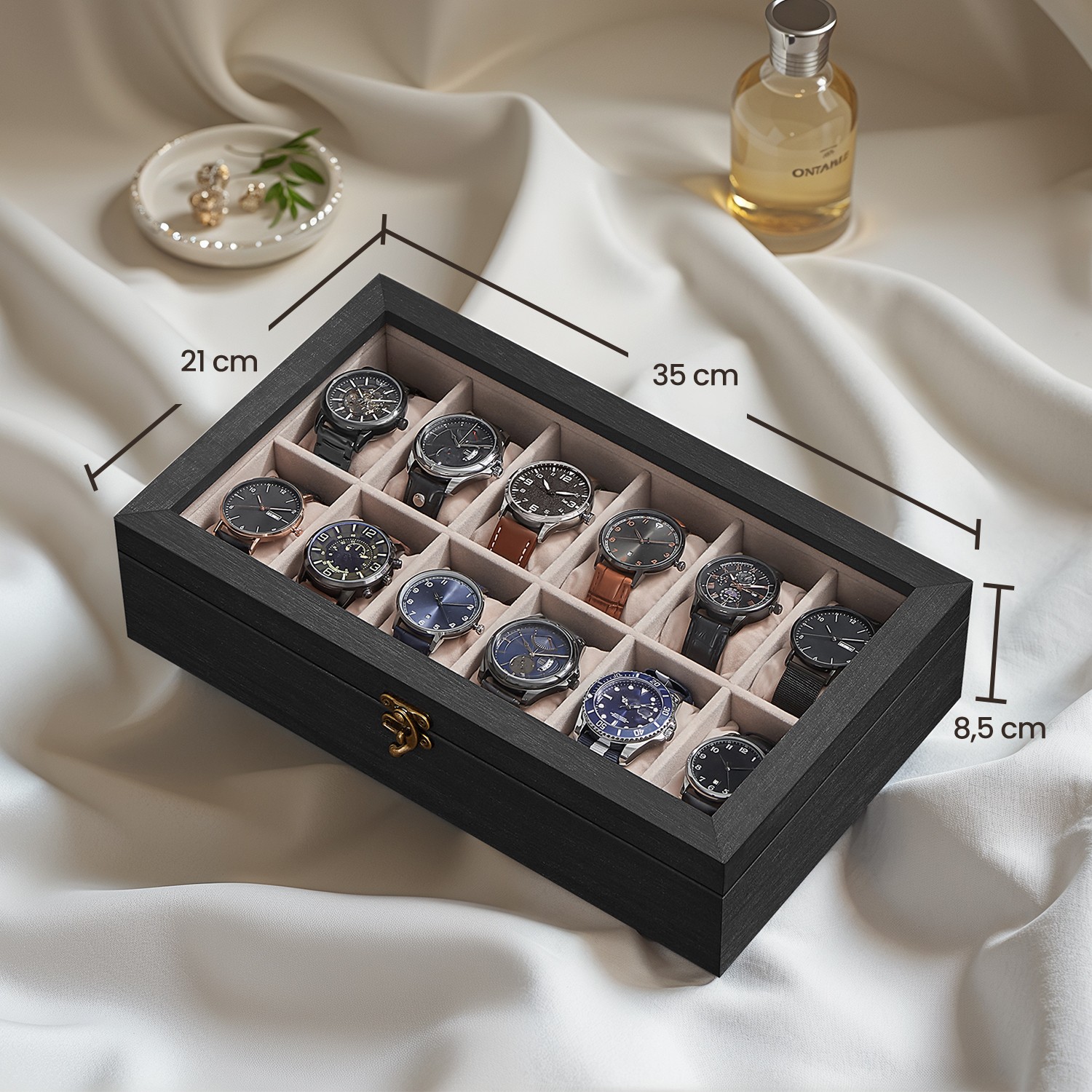 – Materiaali: paulownia-puu, sametti, lasi