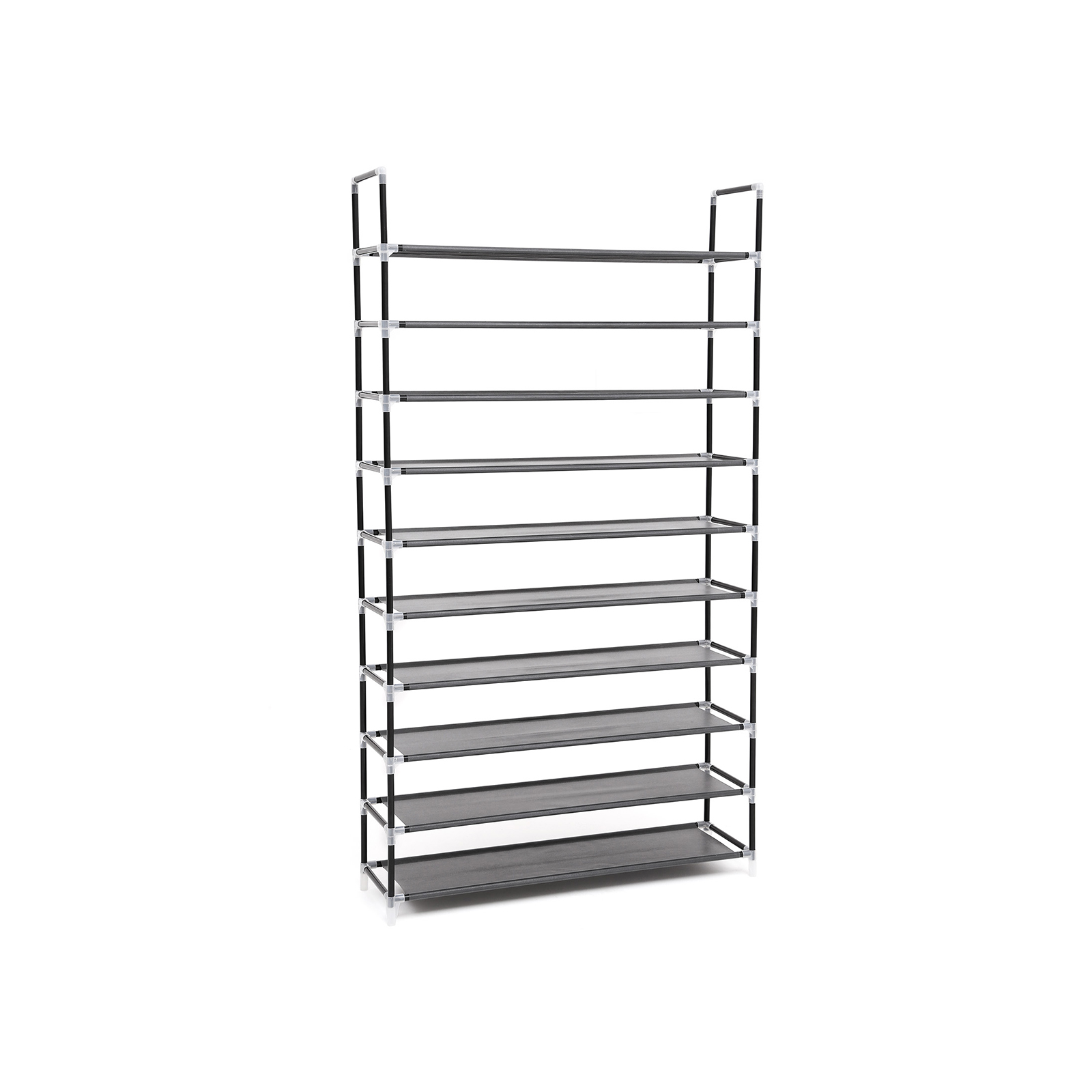 Käytännöllisen tyylikäs kenkähylly on kevyt mutta silti vakaa. Songmicsin hylly sopii minimalistisen kauneutensa ansiosta mihin tahansa sisustukseen! 10 tasolla se sopii hyvin kellariin, lastenhuoneeseen, eteiseen tai jopa ullakolle, ja siihen mahtuu 60 paria kenkiä, jotka voidaan säilyttää siististi. Hylly on helppo koota ja purkaa. On huolehdittava siitä, että välitasojen päällystetty puoli on ylöspäin. Hyllytasot voidaan puhdistaa helposti kostealla liinalla. Tuotetiedot: – Väri: musta – Mitat: 100 x 175 x 29 cm (L x K x S) – Jokaisen tason korkeus: 17 cm – Materiaali: kuitukangas (100 g/m²), rautaputki (Φ16 mm) – Pakkauksen mitat: 98 x 15 x 12 cm – Paino: 4,8 kg Toimitus sisältää: – 1 x kenkähylly