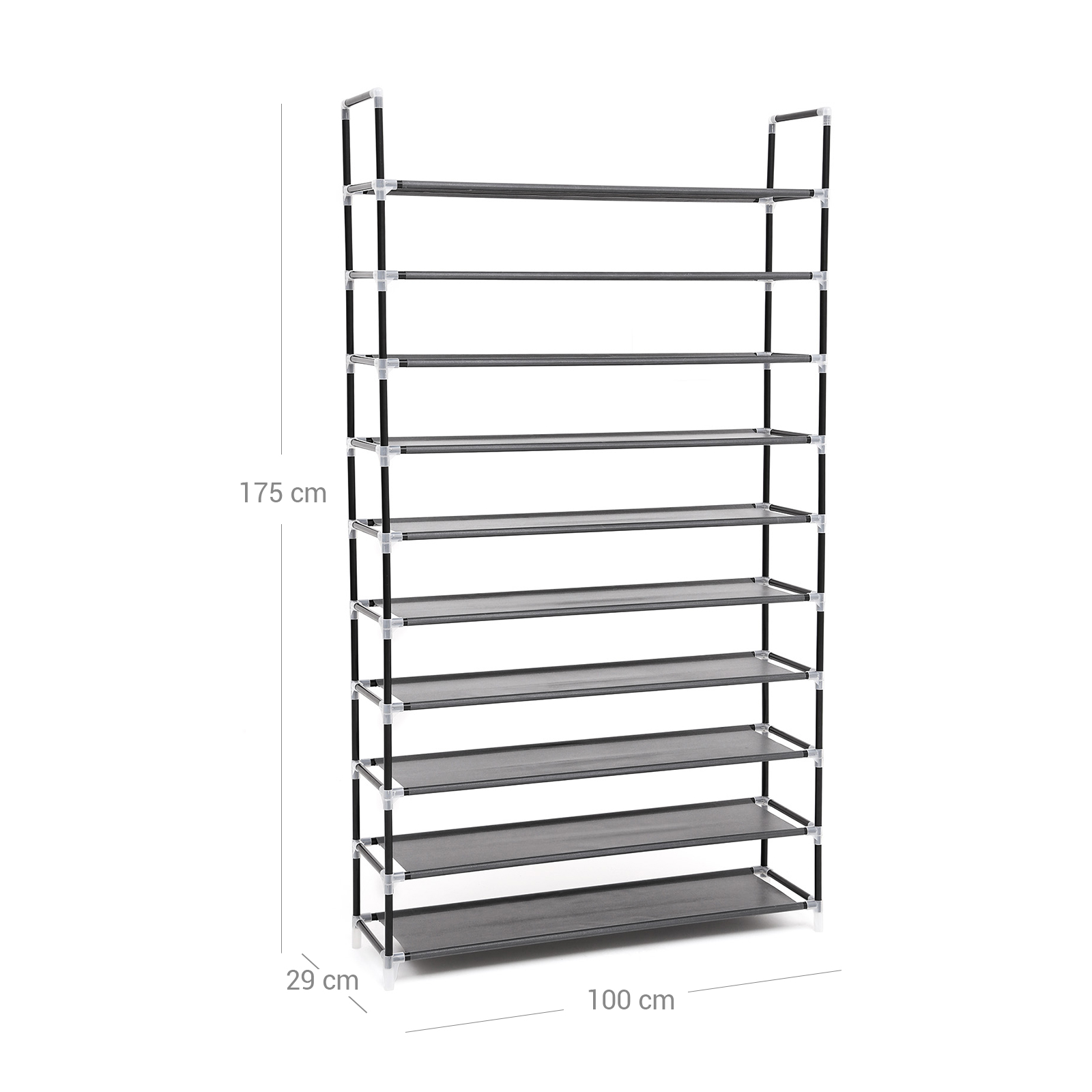 SONGMICS kenkähylly, 10 tasoa, kenkien säilytys, järjestelijä, jopa 50 parille kenkiä, olohuoneeseen, pukeutumishuoneeseen ja eteiseen, kuitukangas, 100 x 29 x 175 cm, musta LSR10H