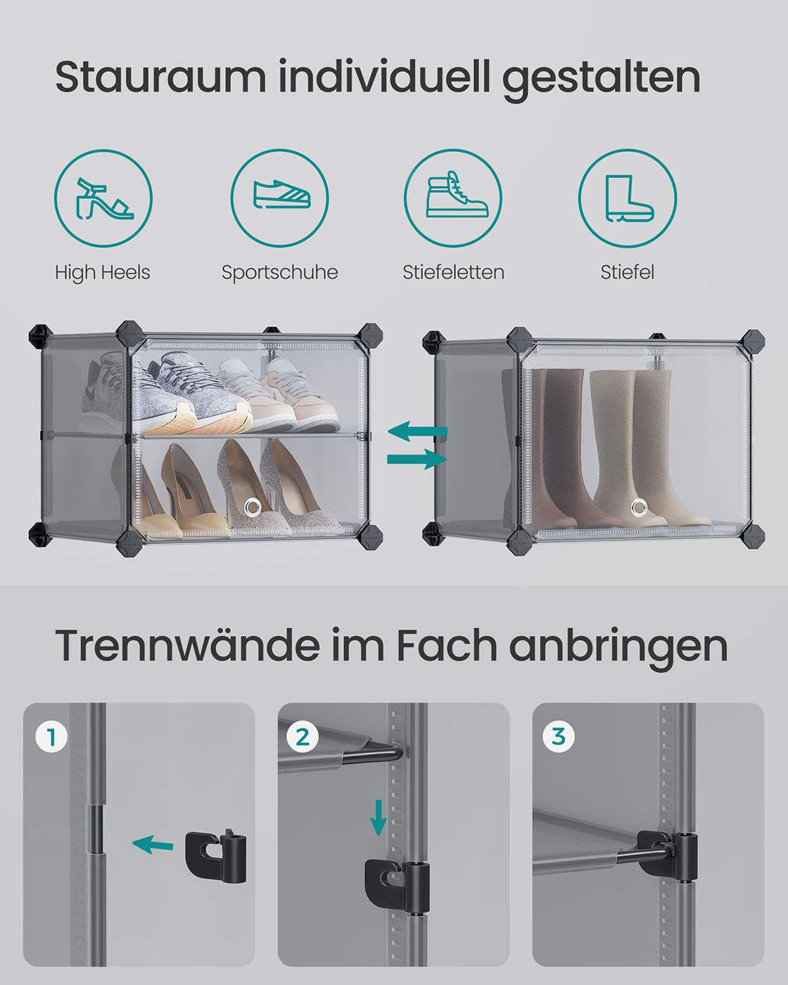 SONGMICS kenkähylly 10 lokerolla, kenkäkaappi, 30 x 40 x 30 cm per lokero, kapea, ovilla, teräsrunko, muovi, eteiseen, makuuhuoneeseen, sisäänkäyntialueelle, musta LPC035B01