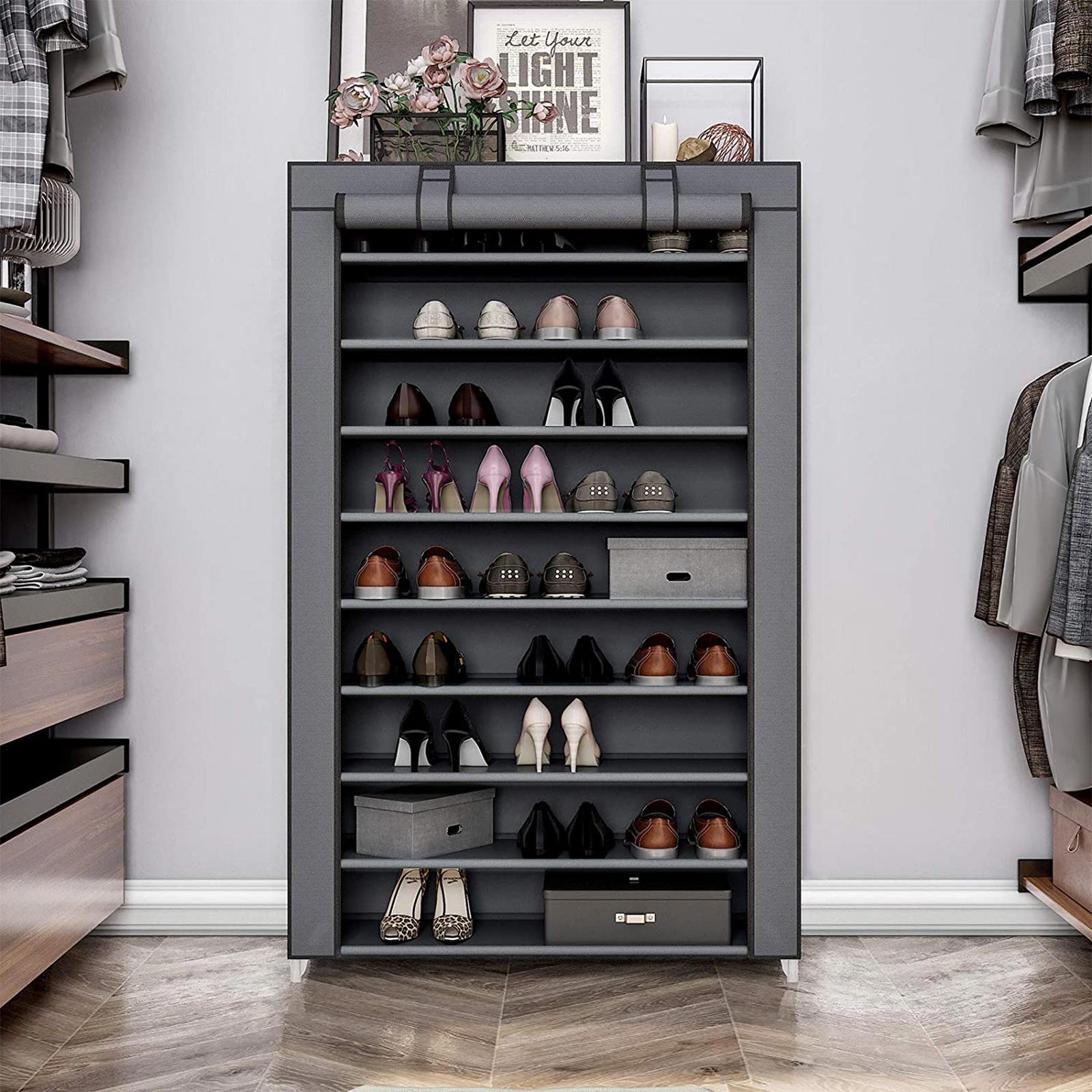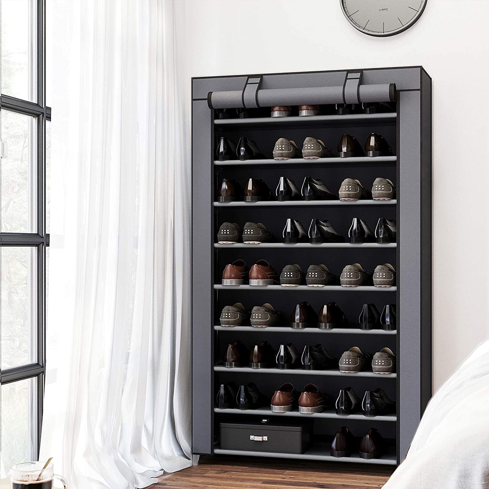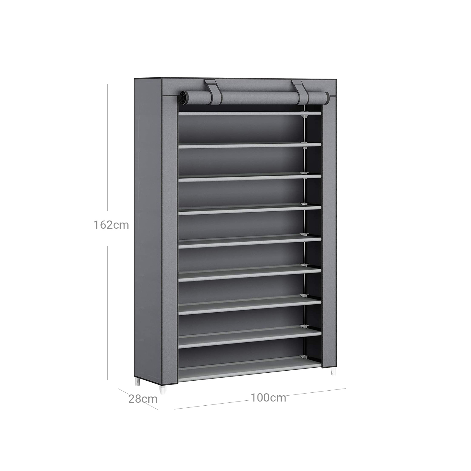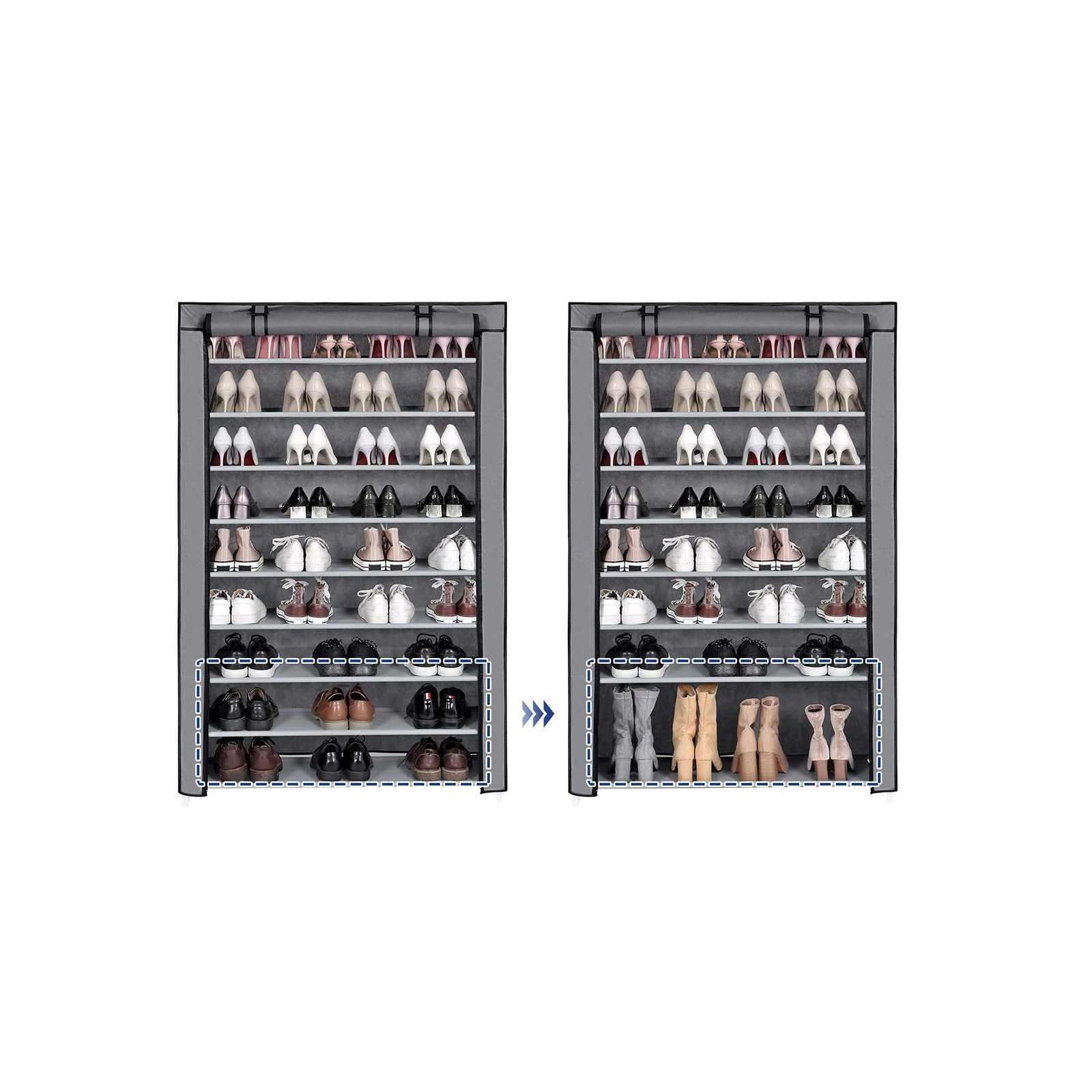 Hanki tämä kenkähylly kotiisi ja siisti asuntosi. SONGMICS ei koskaan petä sinua! Pelasta kotisi kenkäkaoselta: ovatko korkokengät, kumppanisi saappaat ja lastesi kengät hajallaan lattialla, joten sinulla on vaikeuksia löytää sopivaa paria, kun lähdet aamulla kotoa? Tästä päivästä lähtien etsiminen on ohi! Tämä kenkäteline auttaa sinua säilyttämään kaikki kenkäsi selkeästi. Vihdoin kengät, jotka ovat olleet pitkään piilossa kenkäkasojen alla, saavat taas mahdollisuuden tulla käytetyiksi! Mitä sinun pitäisi tehdä, jos kangasteline likaantuu? Älä huoli! Kuitukangas on helppohoitoinen ja vettä hylkivä, joten sen puhdistamiseen riittää kostealla liinalla pyyhkiminen. Tuotetiedot: Väri: harmaa Materiaali: kuitukangas, metalliputket, muoviset liitoskappaleet Hyllyjen välinen etäisyys: 17 cm Koko: 100 x 28 x 162 cm (P x L x K) Paino: 4,4 kg Hyllyn maks. staattinen kantavuus: 3 kg Hyllyn maks. staattinen kantavuus: 27 kg Toimitus sisältää: 1 x kenkähylly 1 x ohjeet (DE, EN, FR, ES, IT) SONGMICS-huomautukset: Älä käytä tuotetta ulkona.