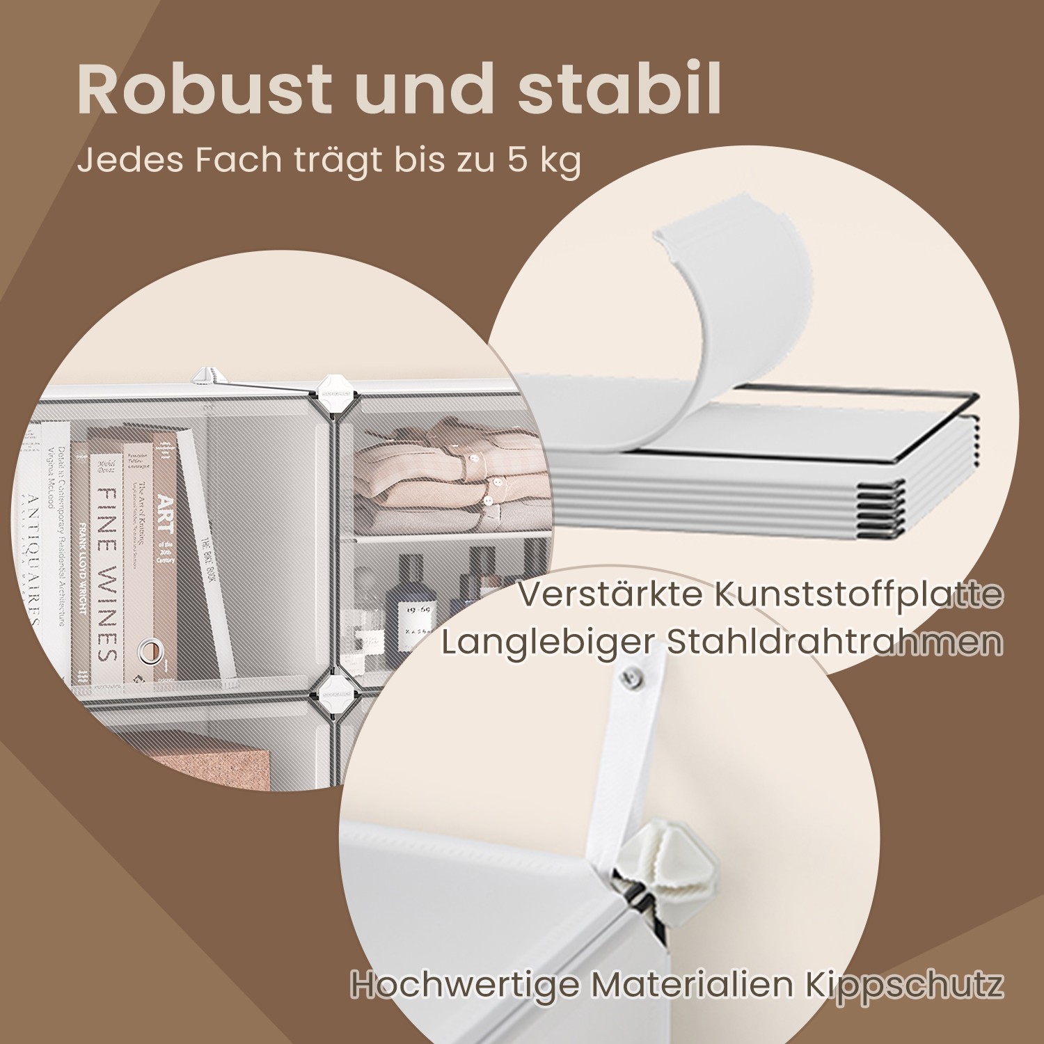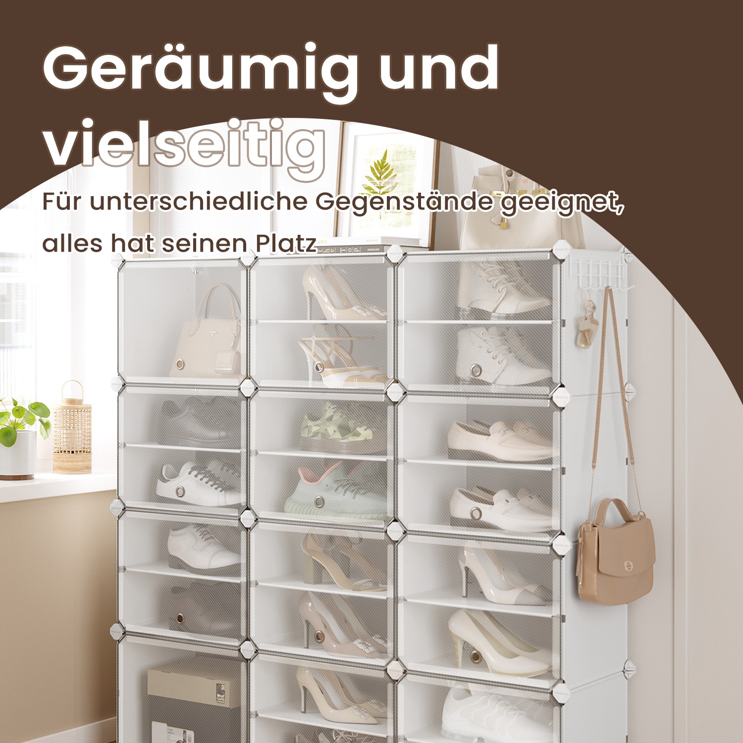 Kenkähylly 12 lokerolla, kenkäkaappi, 30 x 40 x 30 cm per lokero, kapea, ovet, teräsrunko, muovi, valkoinen